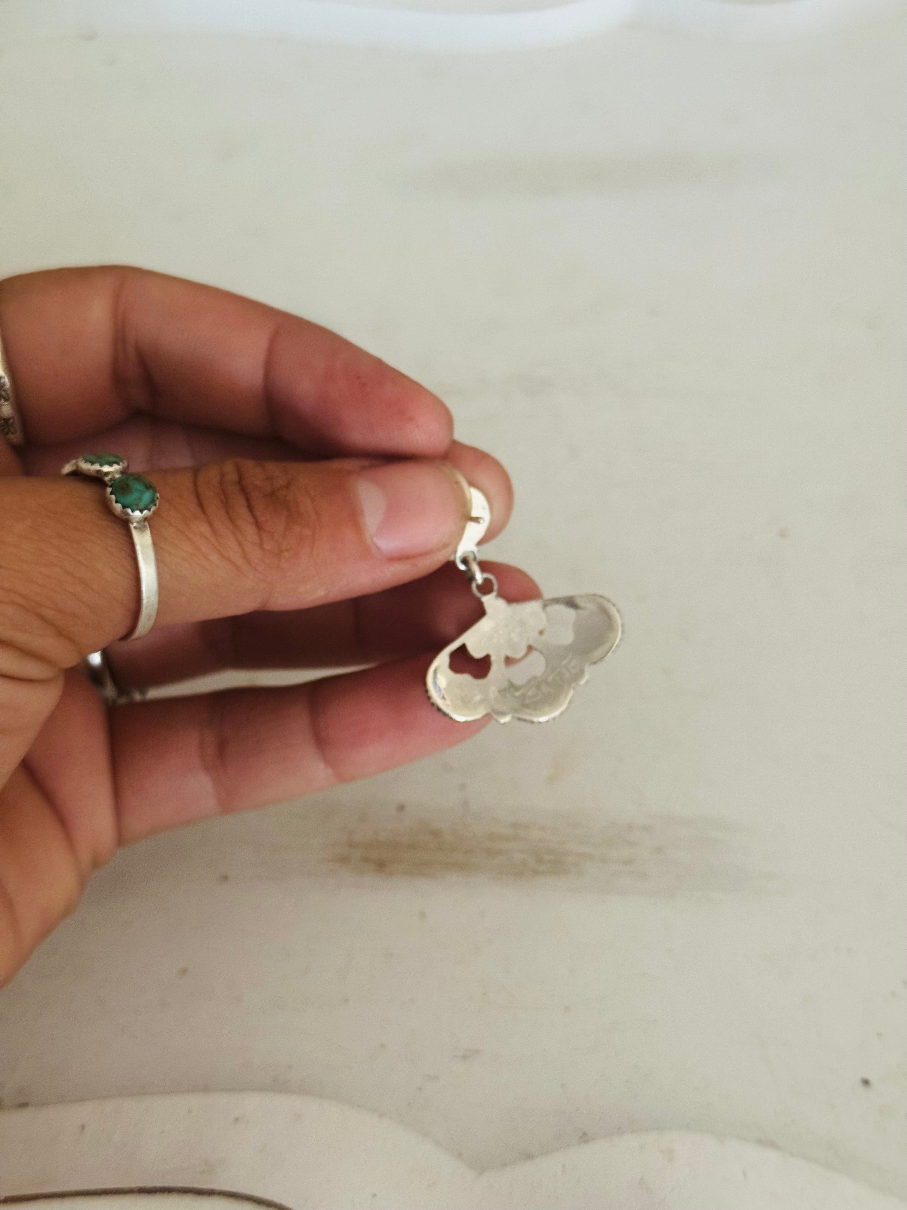 Have a spice of red in your everyday. Zuni Made Red Coral & Sterling Silver Post Dangle Earrings. It measures 1 1/4 inches long and 1 inch wide. Stamped sterling silver and signed by artist.