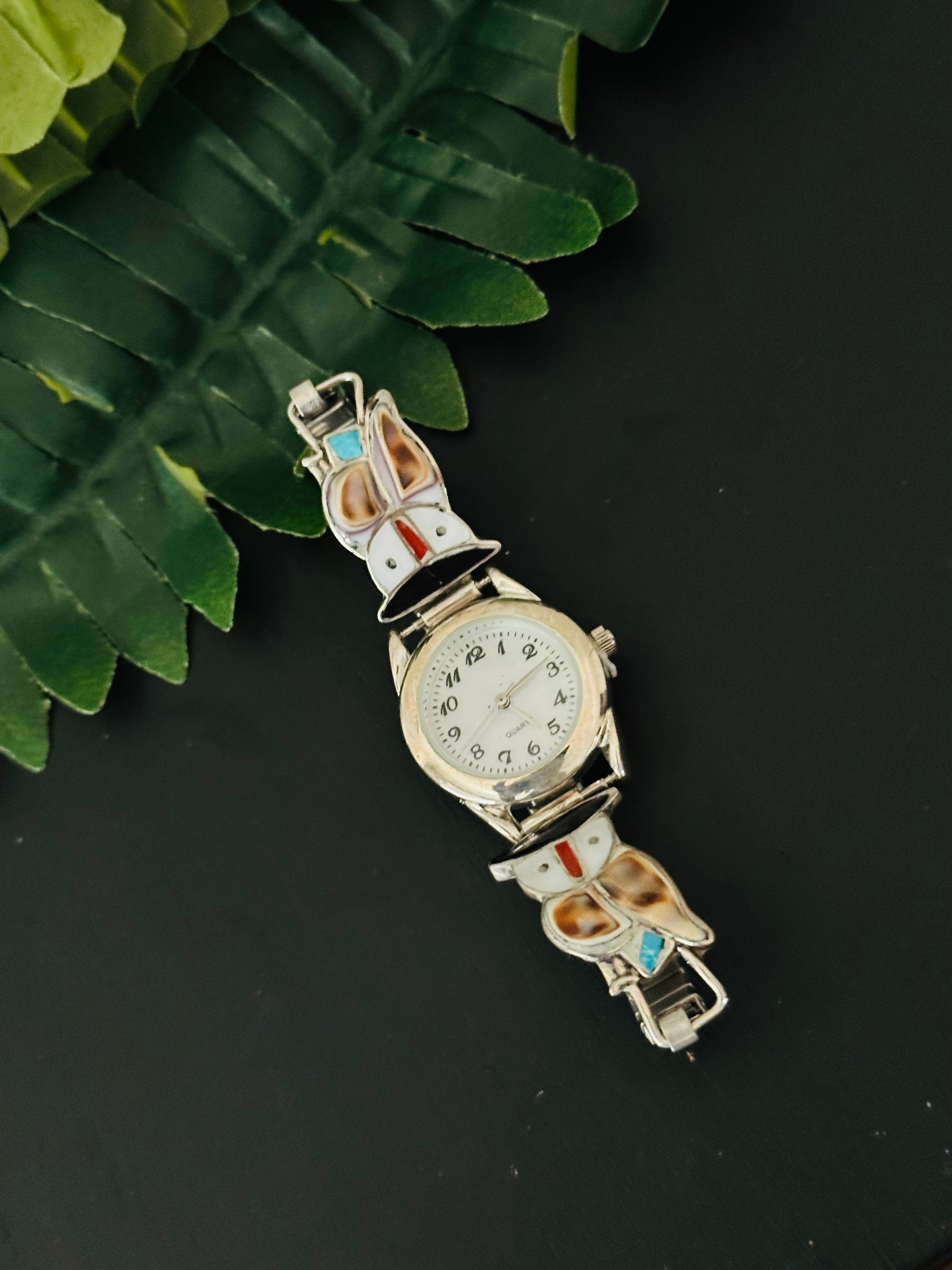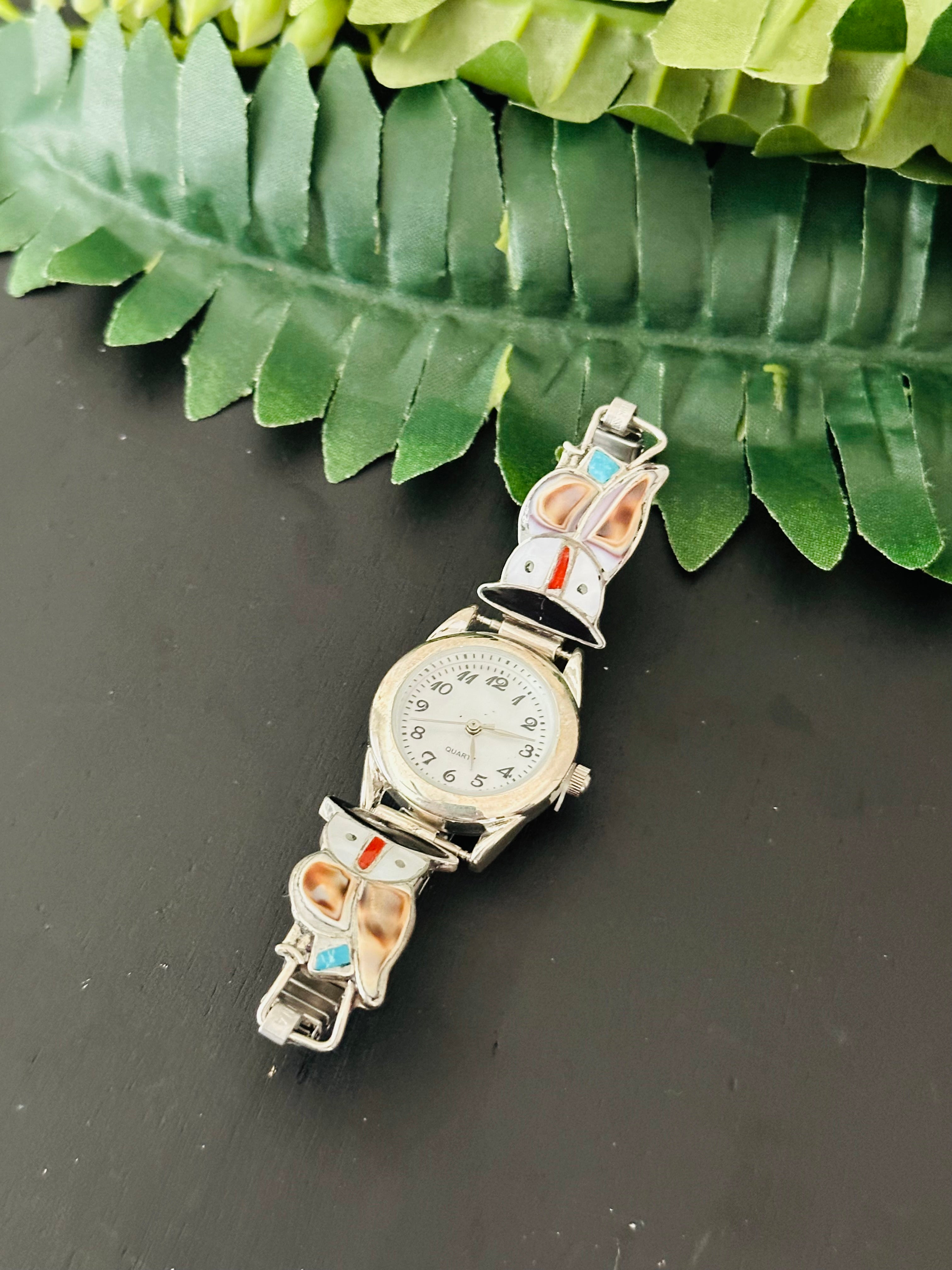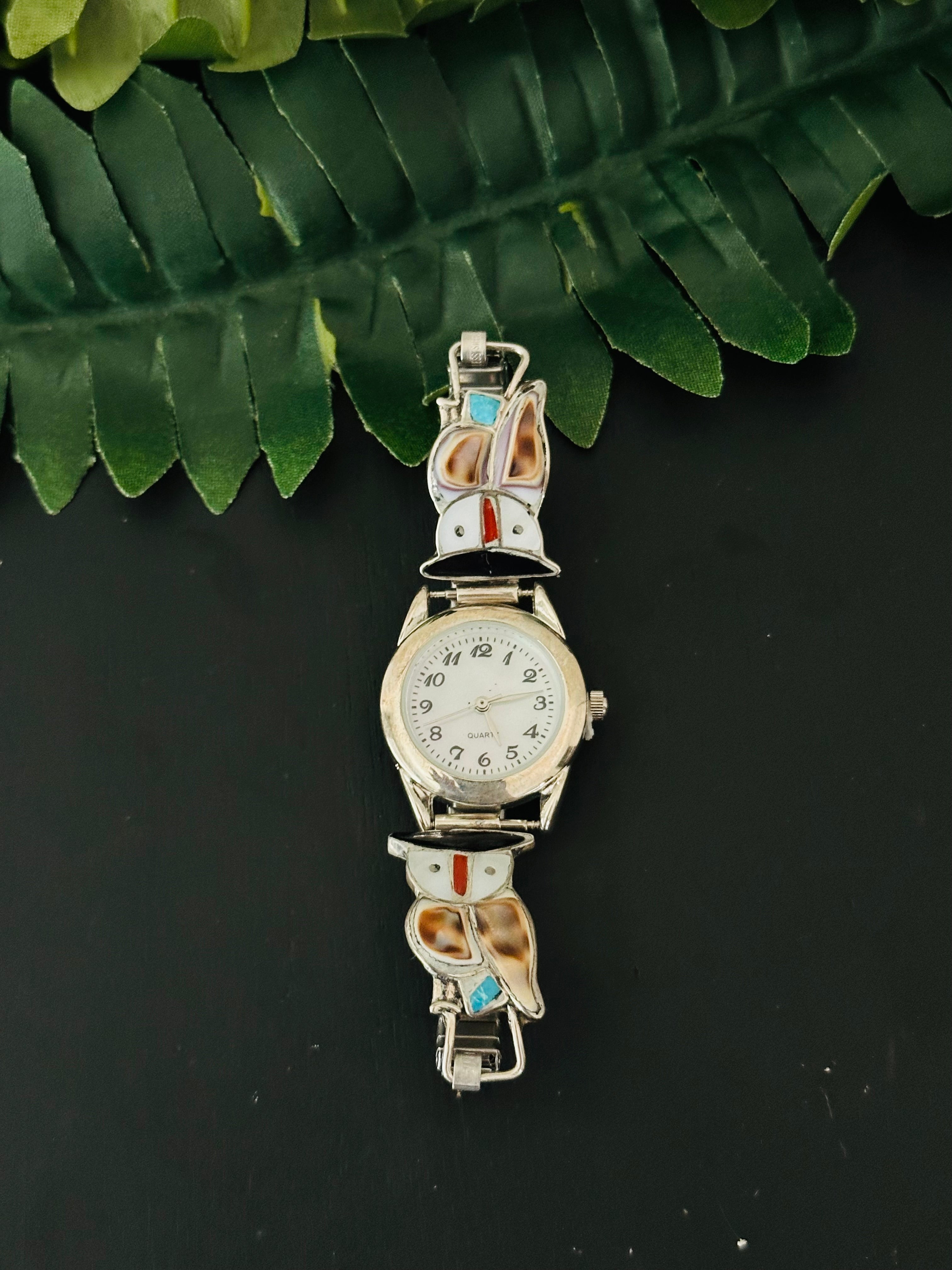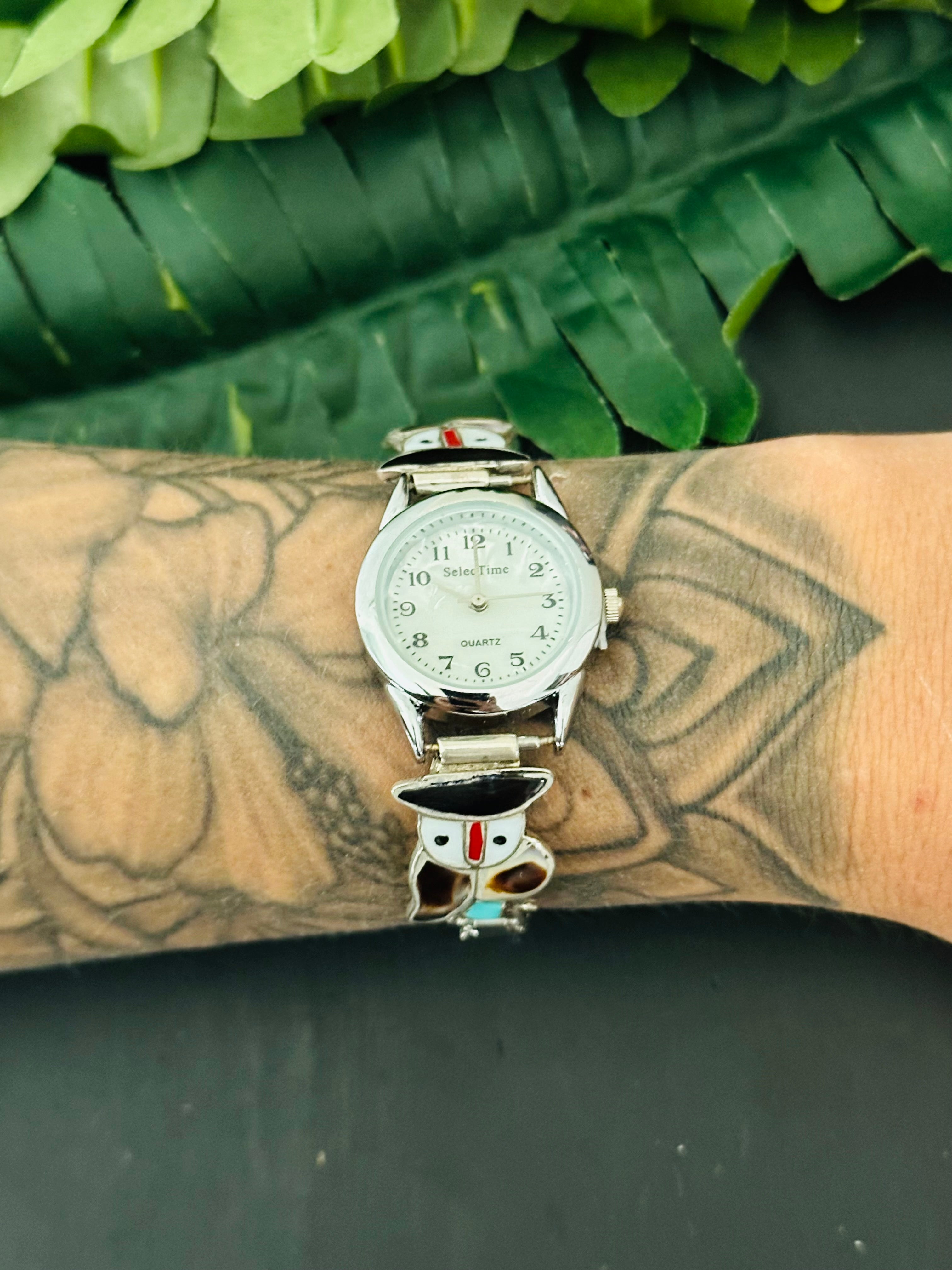 Zuni Made Multi Stone & Sterling Silver Inlay Adjustable Watch