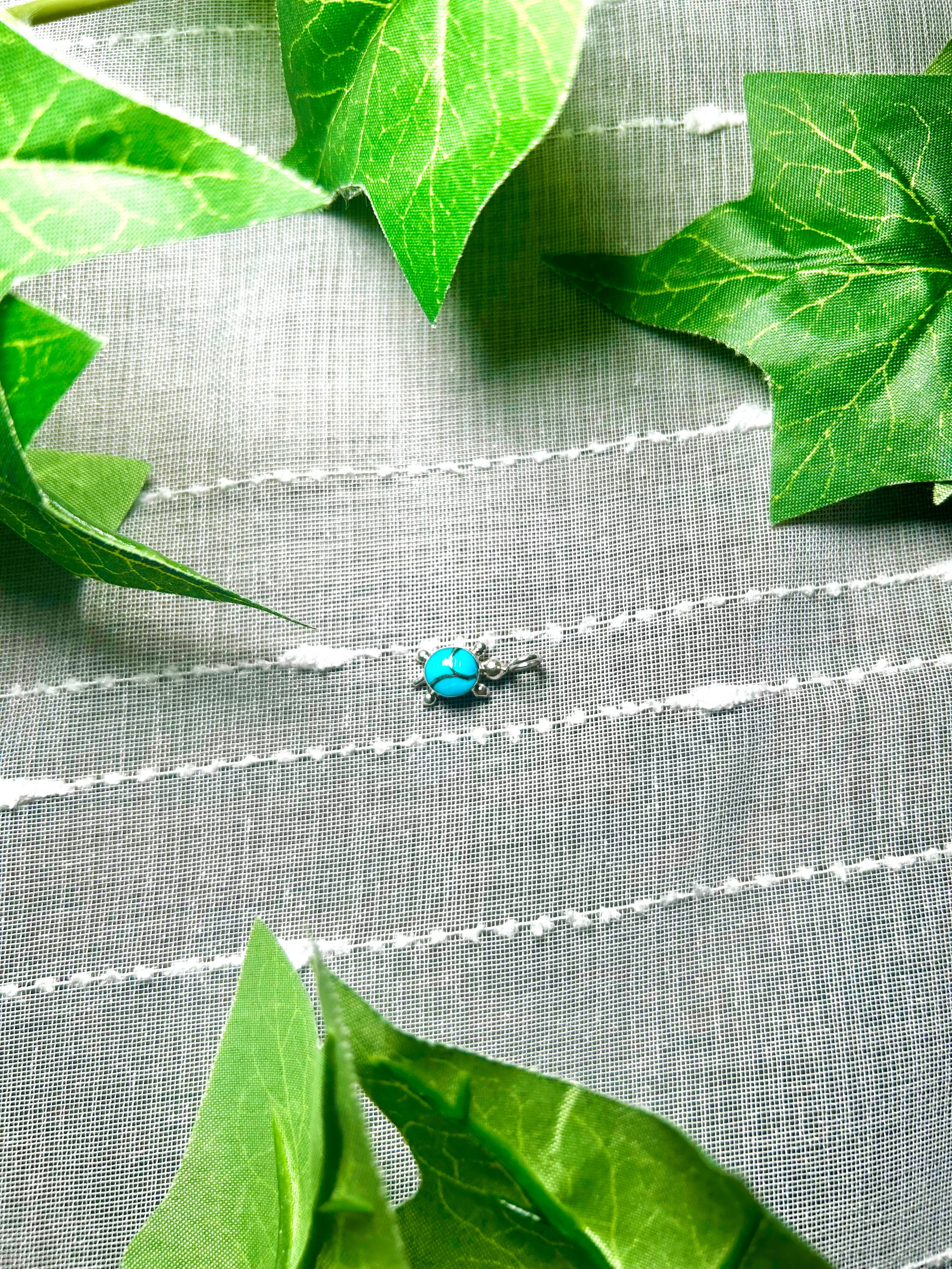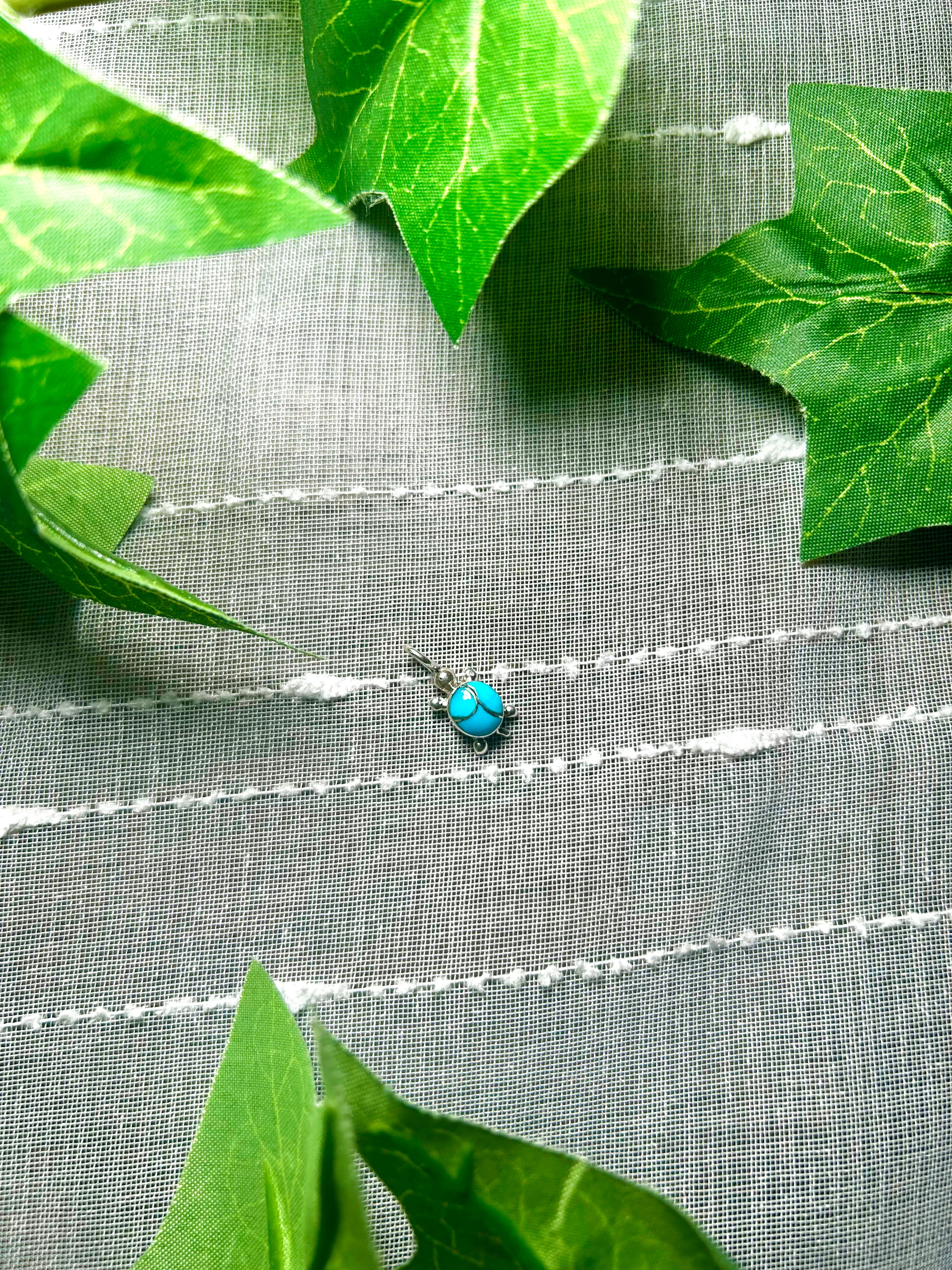 Zuni Kingman Turquoise & Sterling Silver Pendant. It measures 5/8 of an inch long and 3/8 of an inch wide. Pendant Only! Signed by the artist and stamped sterling silver.