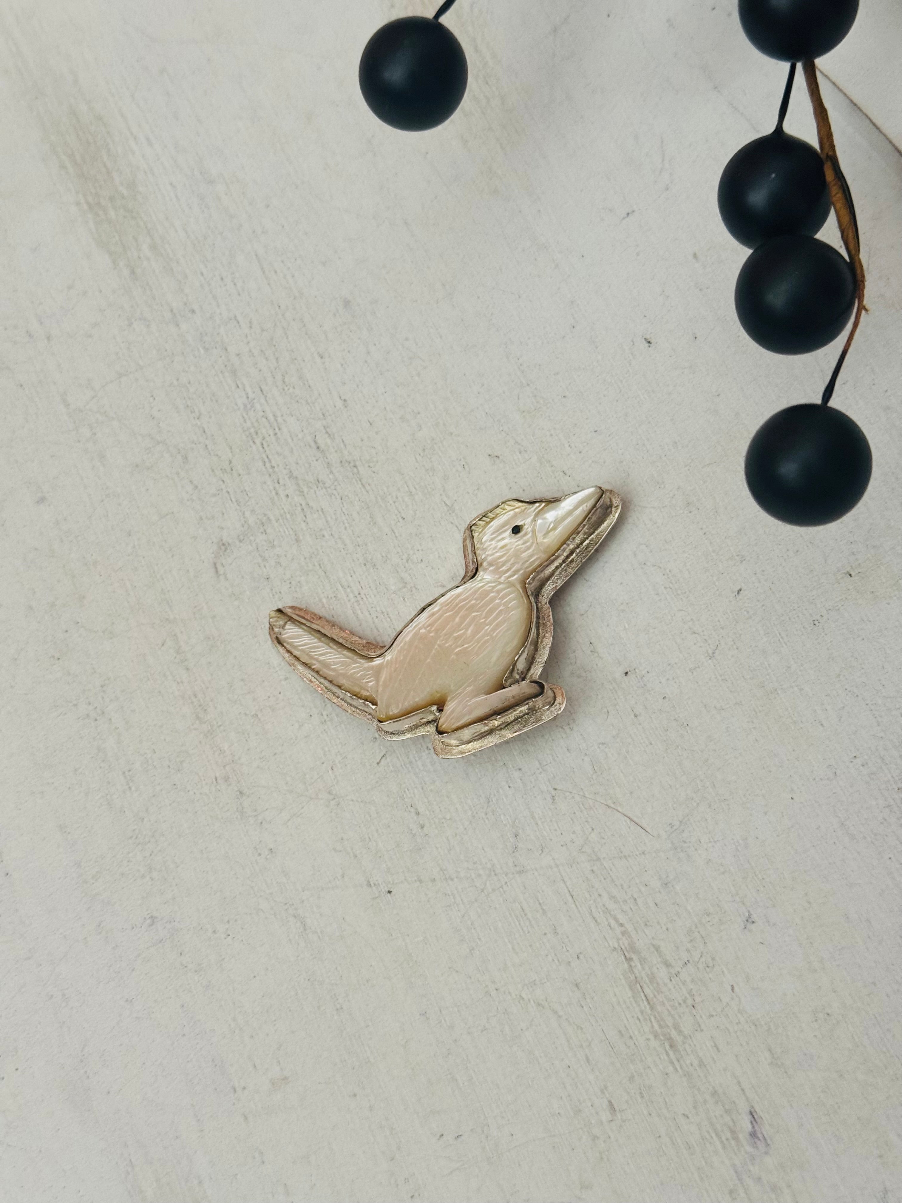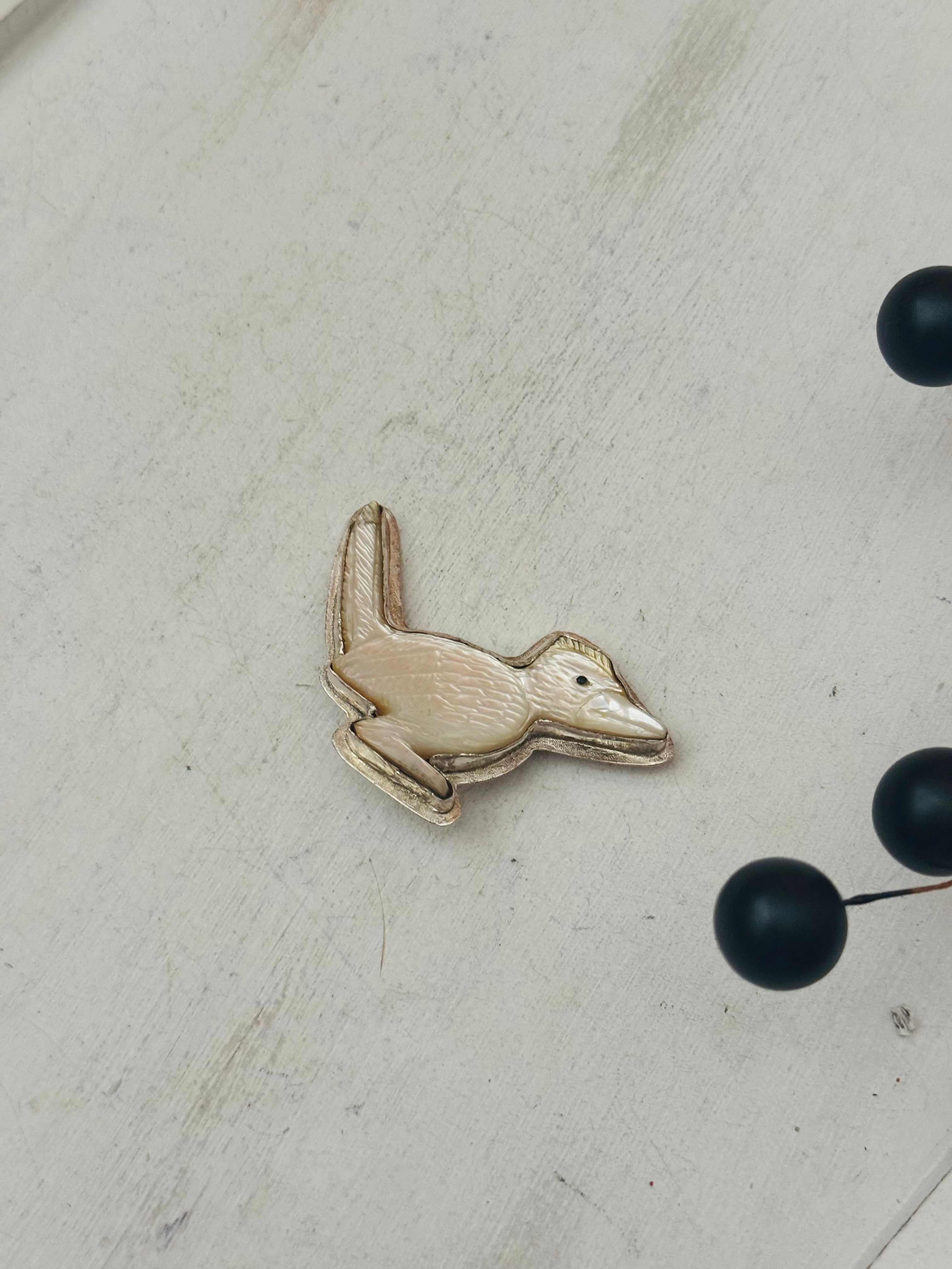 Zuni Made Mother of Pearl & Sterling Silver Roadrunner Pin