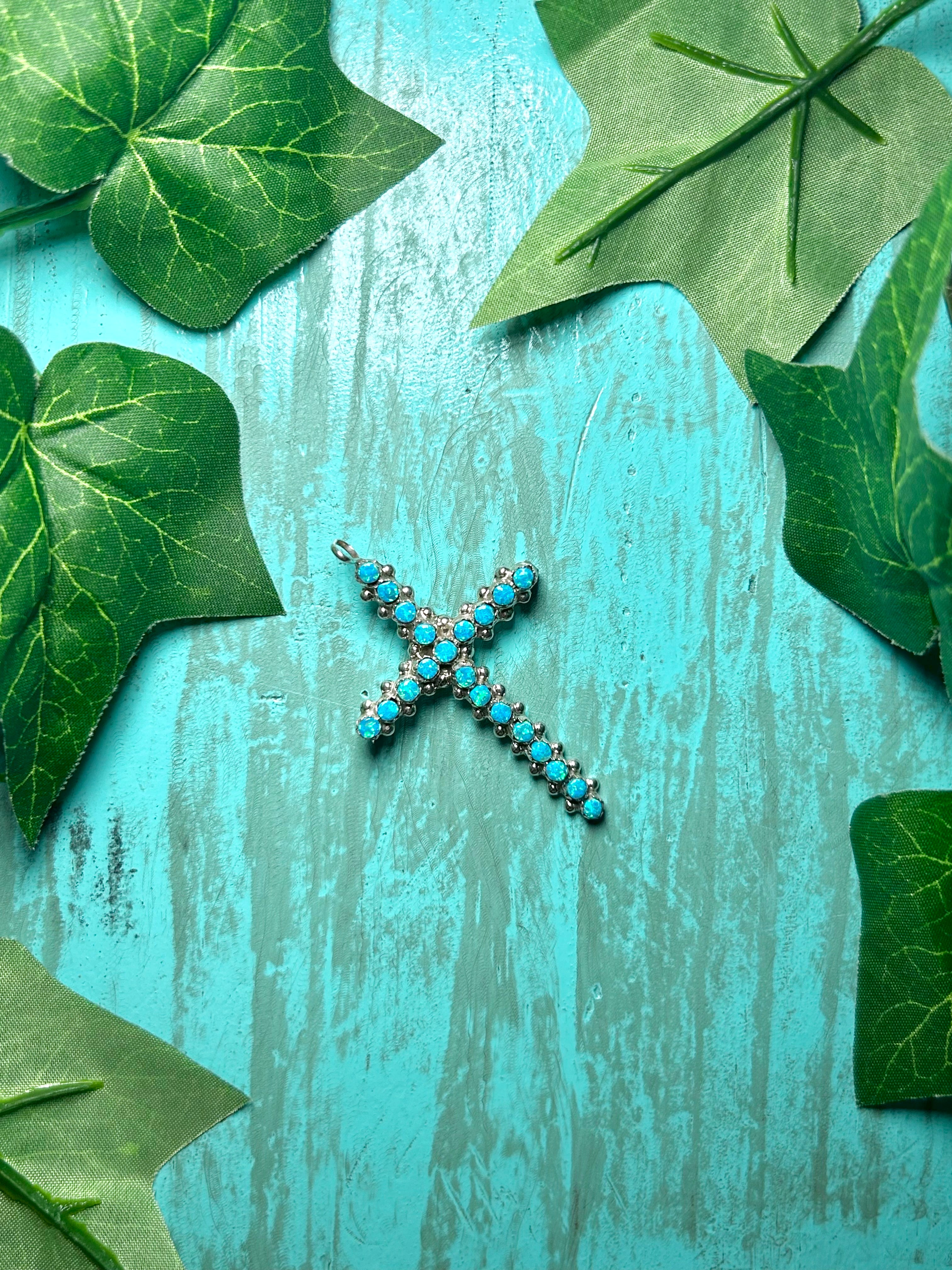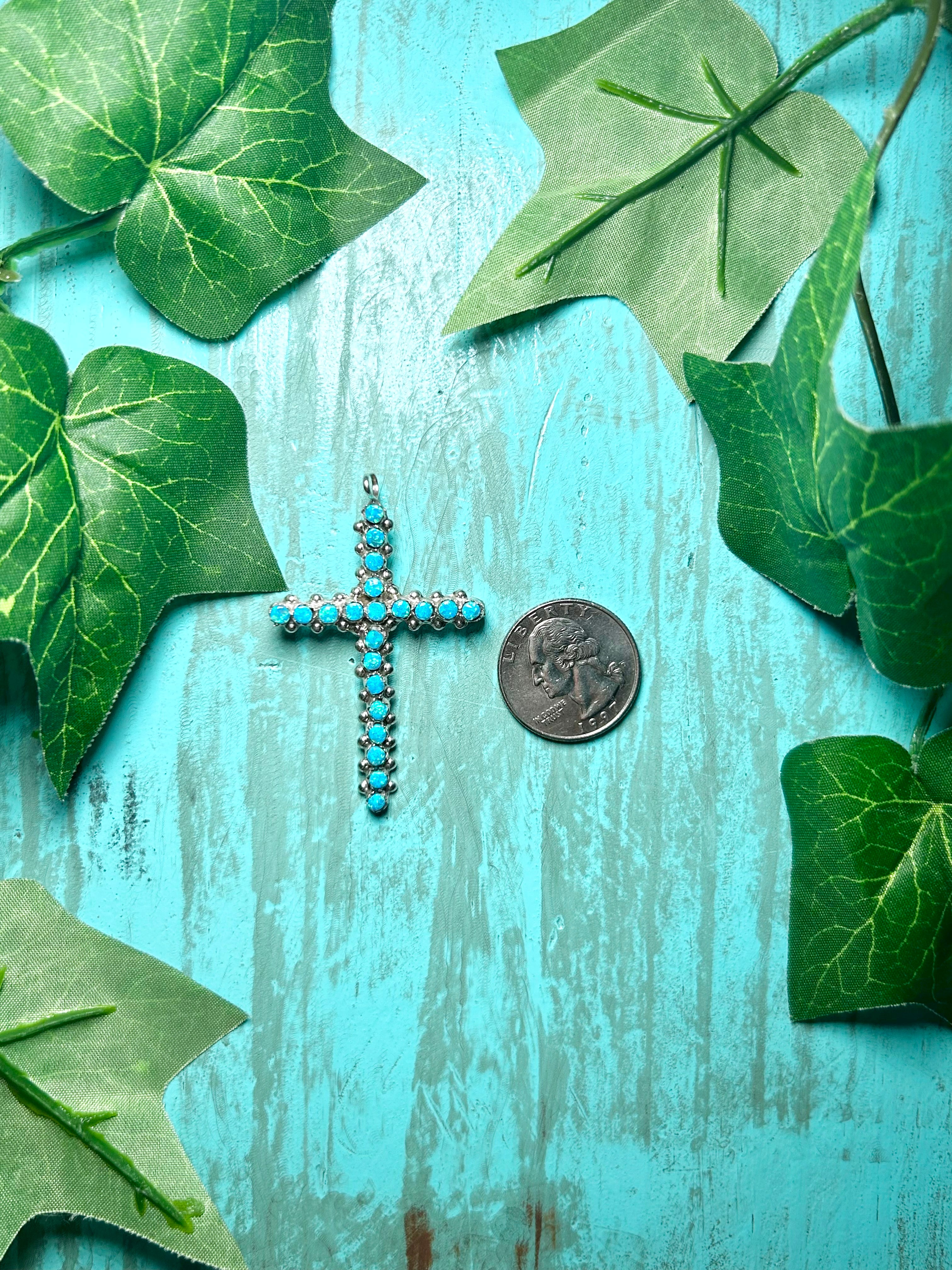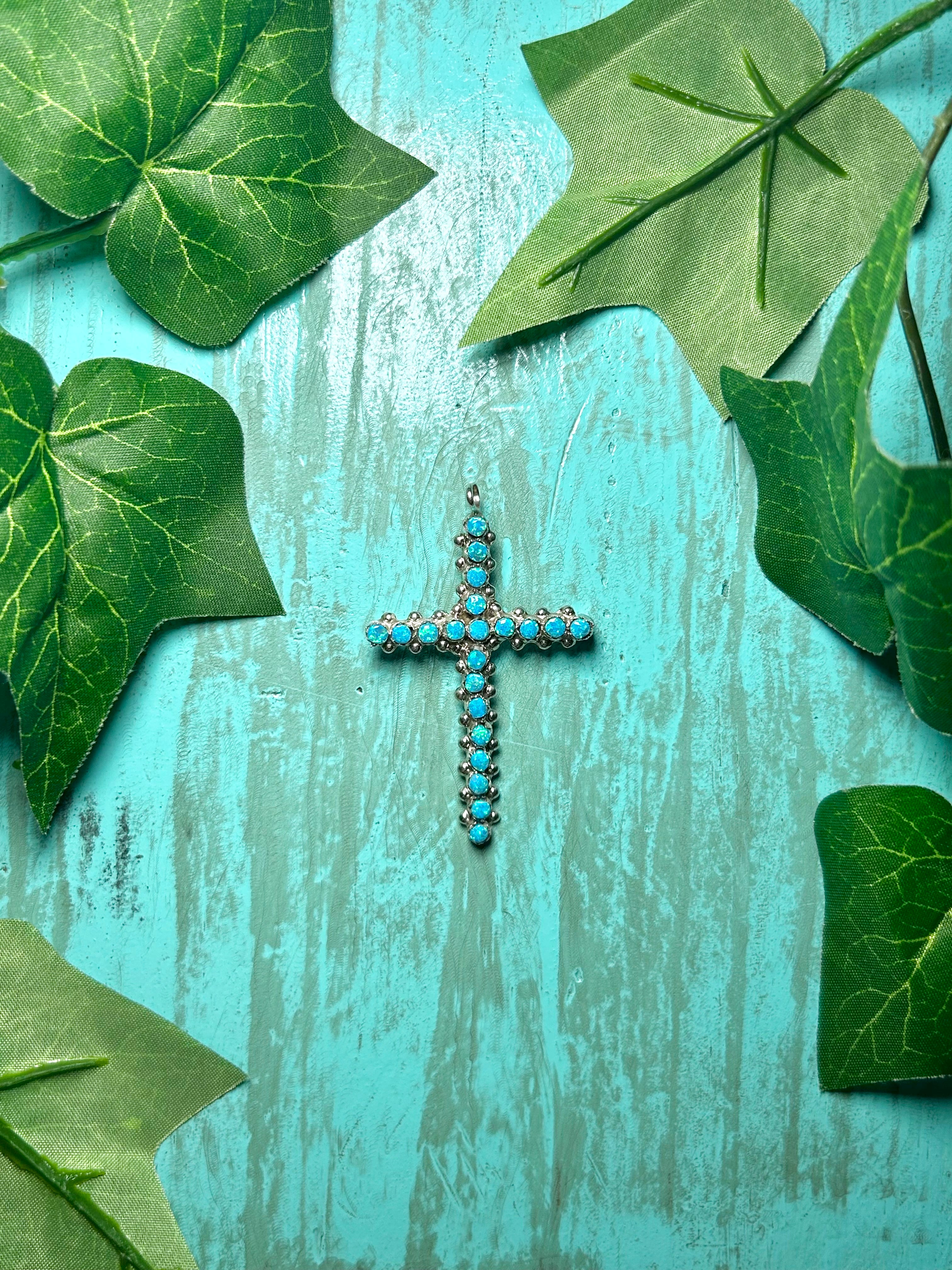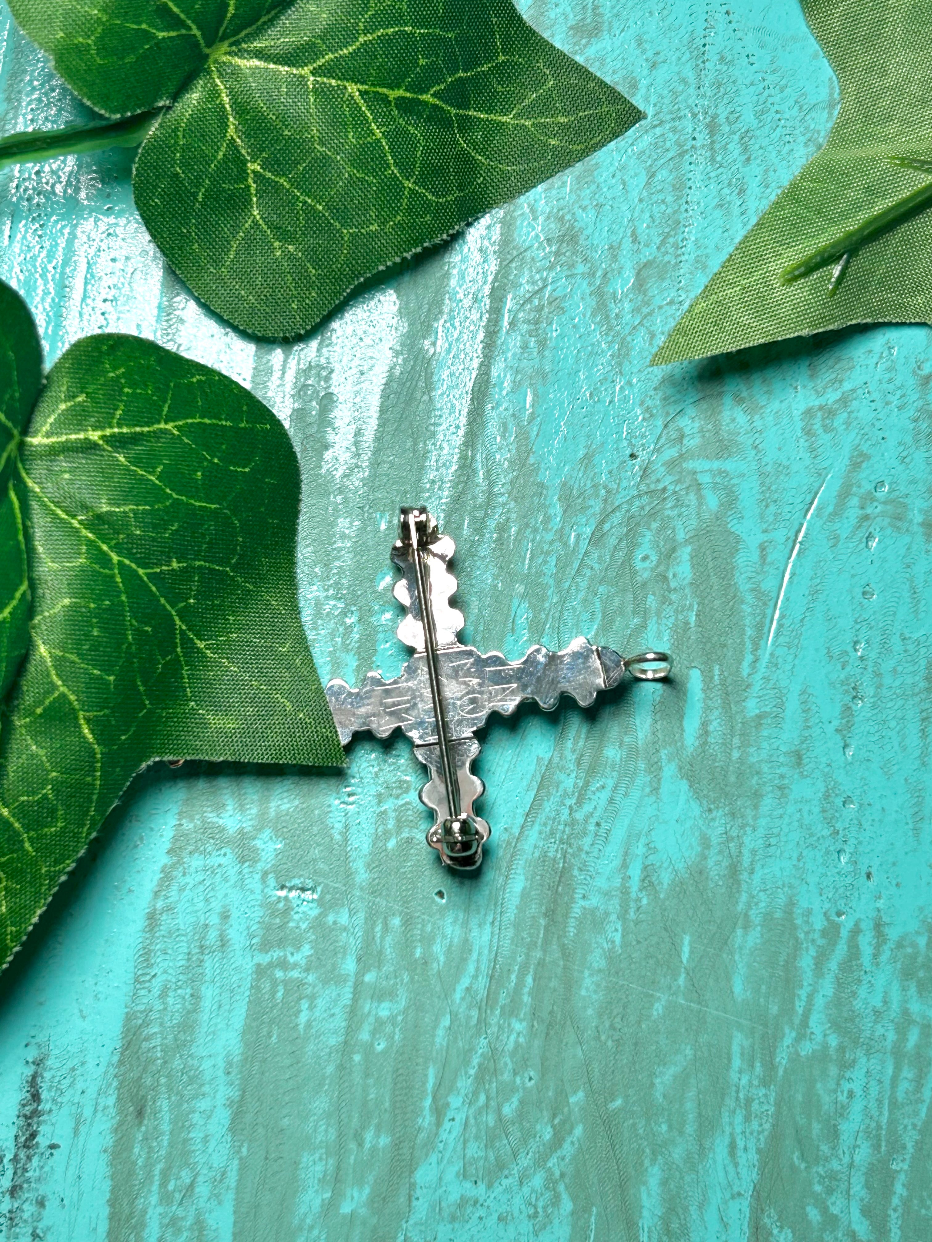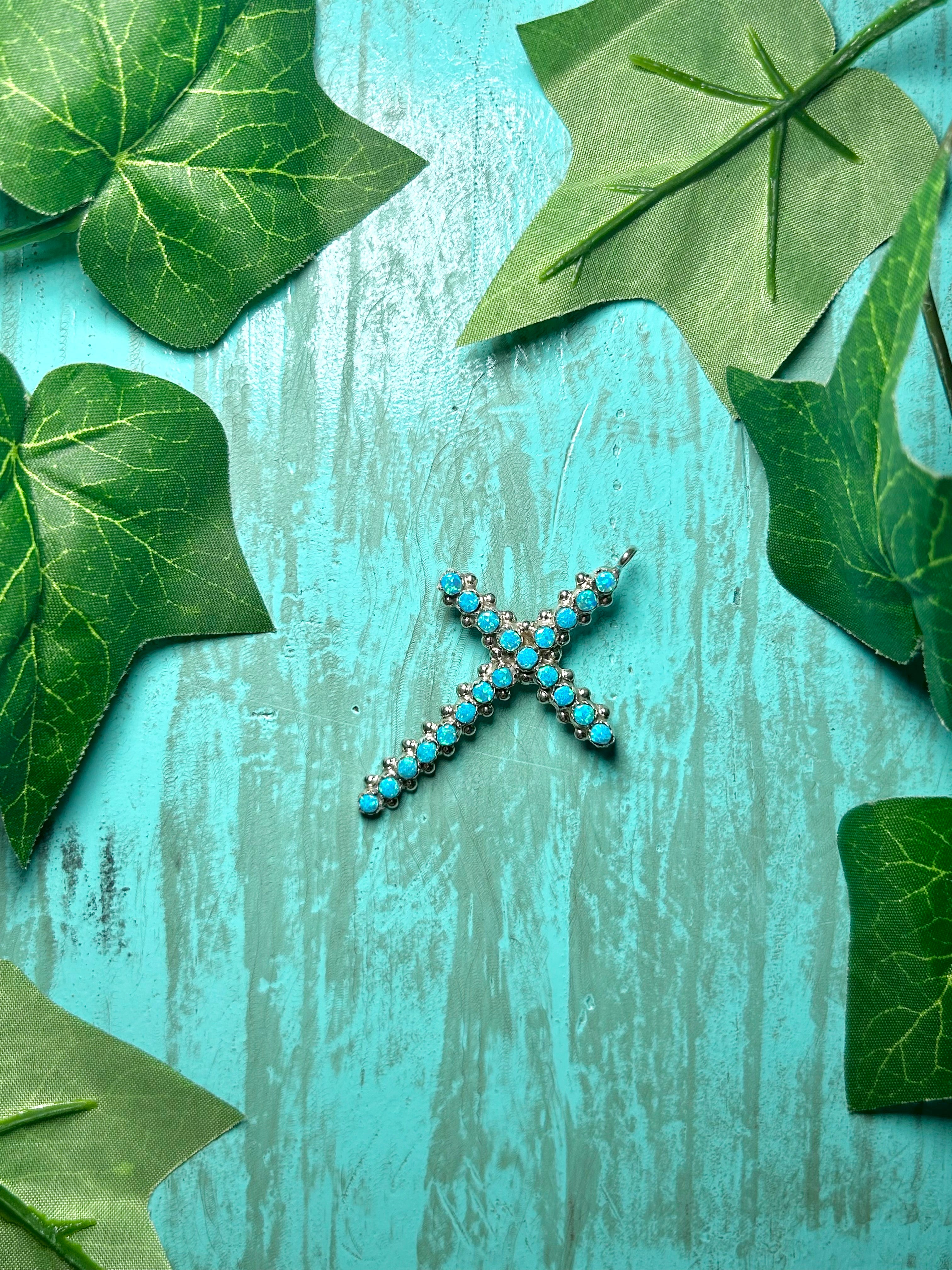 Zuni Man-Made Opal & Sterling Silver Pendant. It measures 2 1/4 inches long and 1 3/8 inches wide. Signed by artist and stamped sterling silver. Pendant/Pin Only!!!