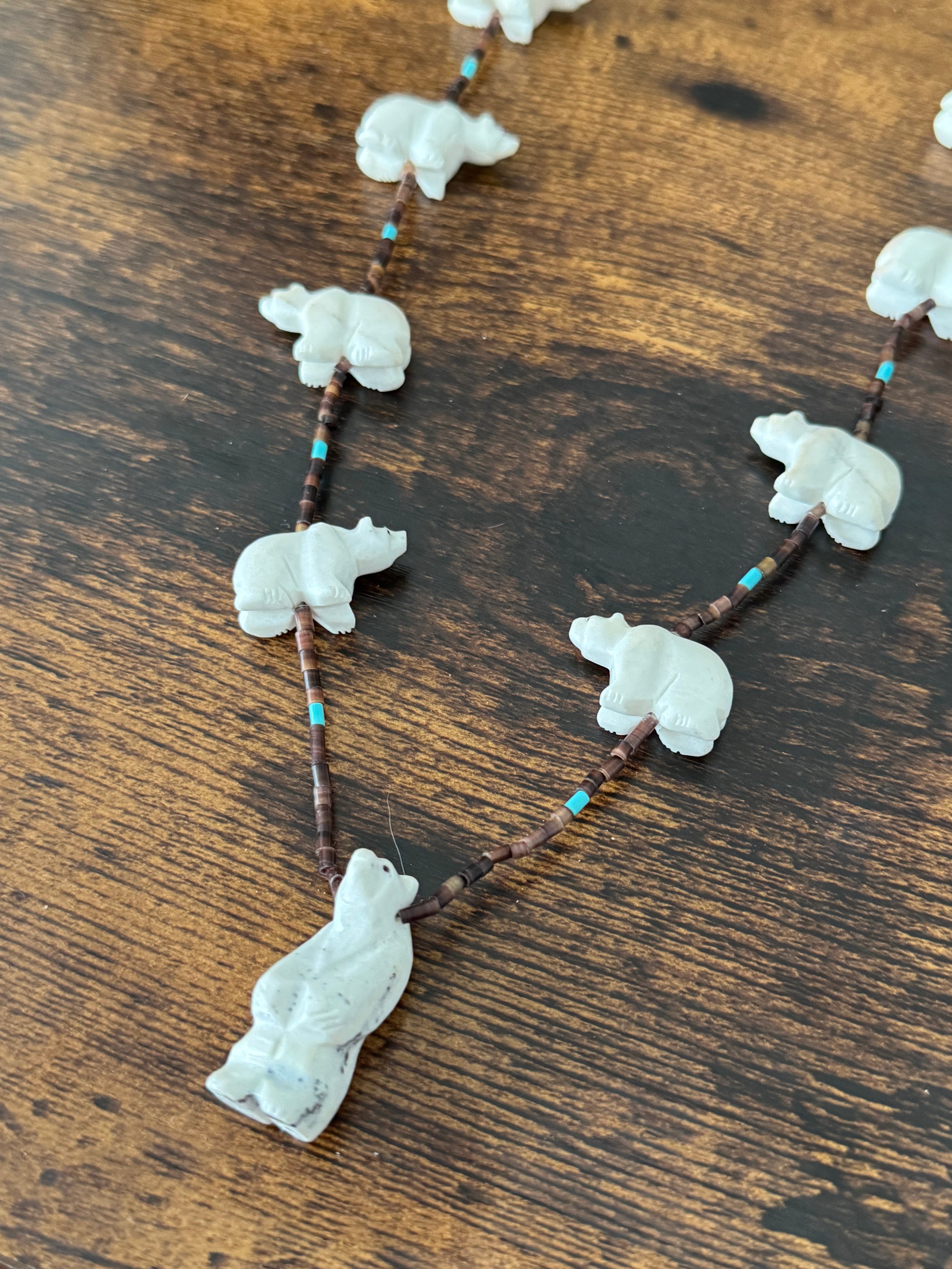 Zuni Strung Multi Stone & Sterling Silver Beaded Fetish Necklace