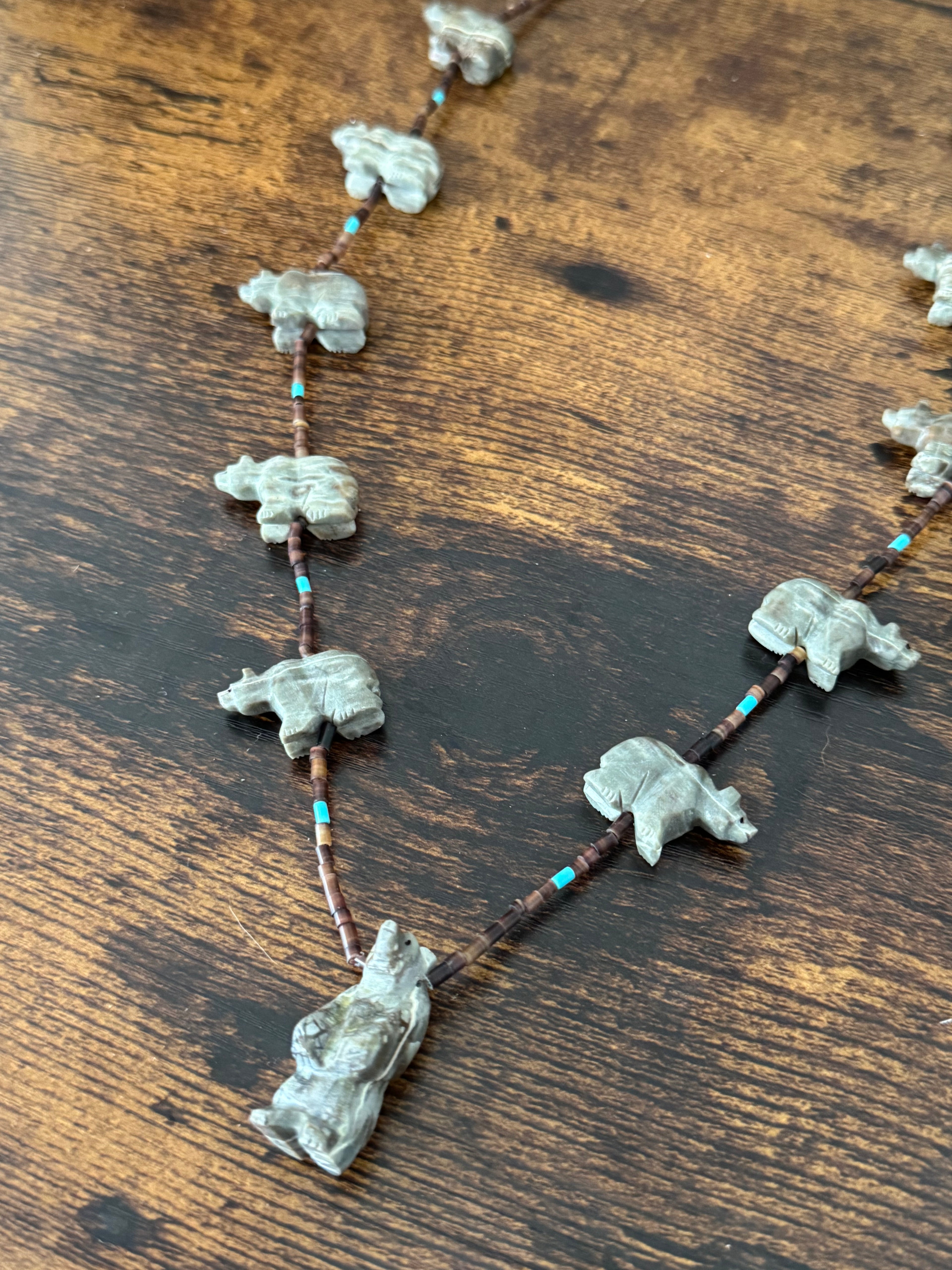 Zuni Strung Multi Stone & Sterling Silver Beaded Fetish Necklace