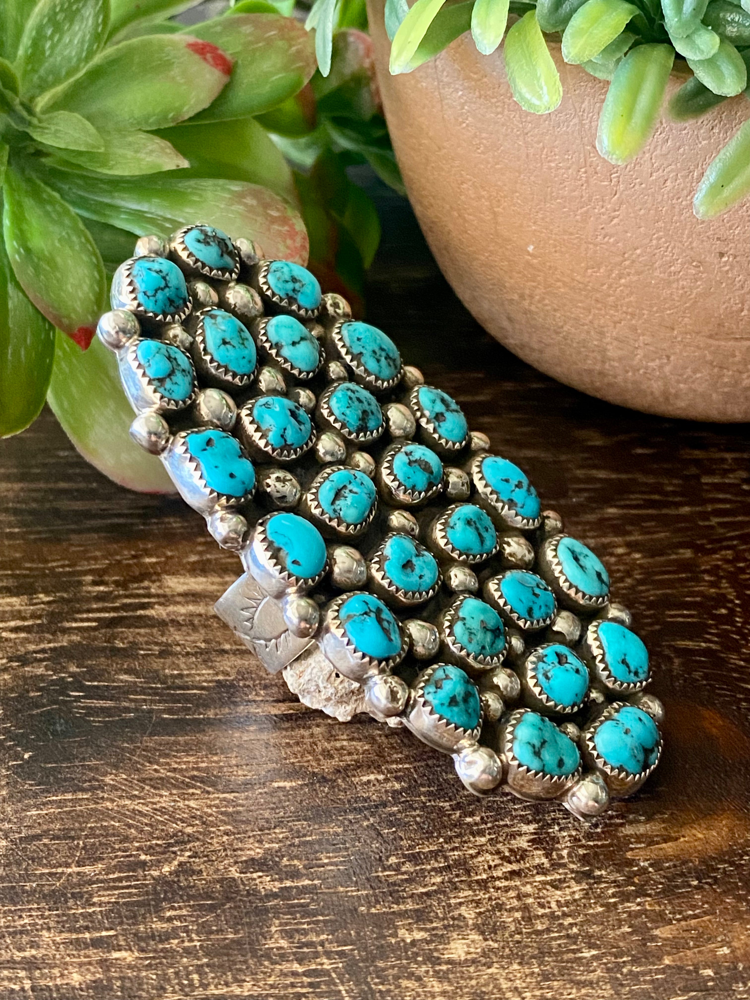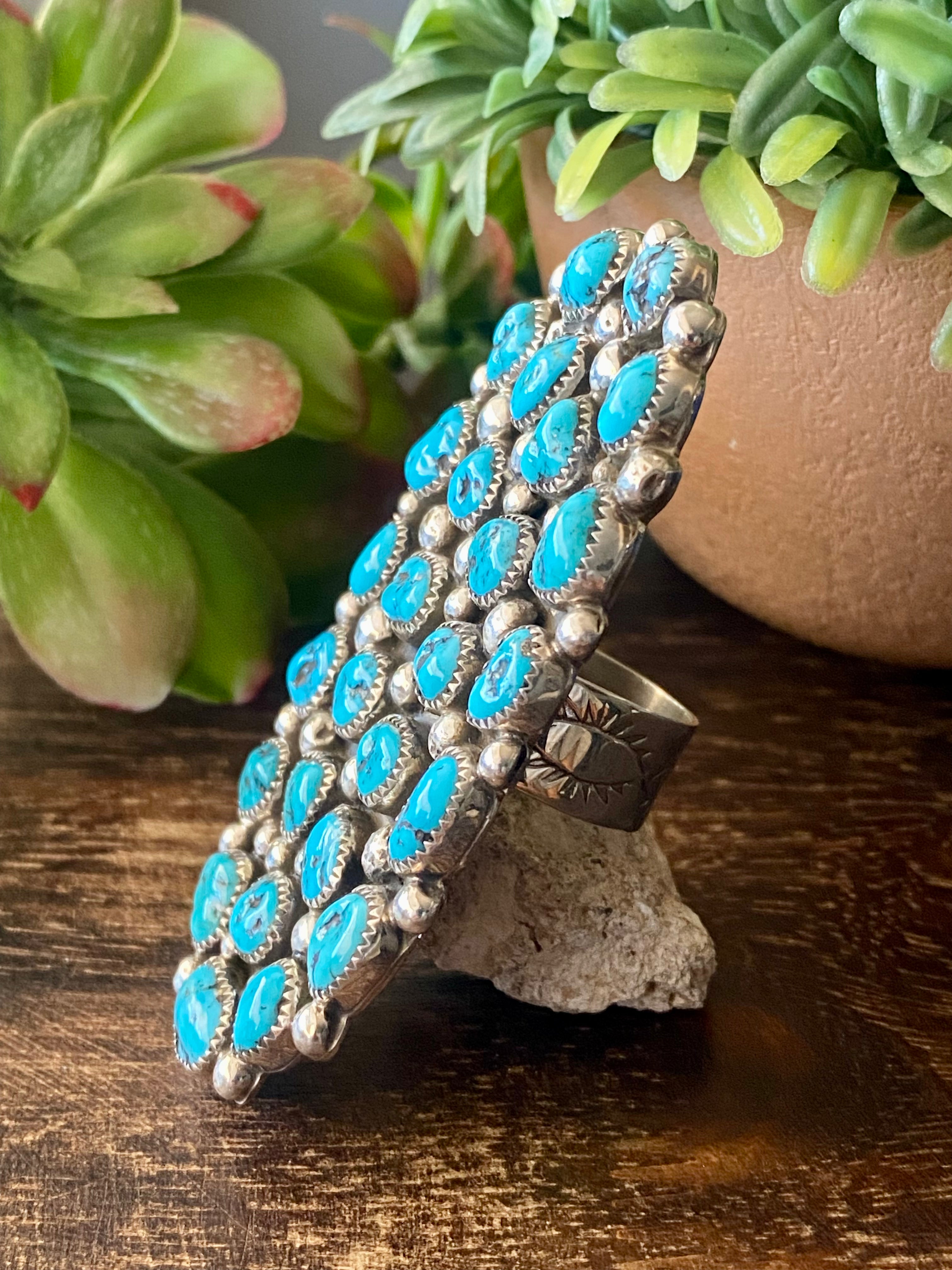 Darlene Begay Kingman Turquoise & Sterling Silver Ring Size 11