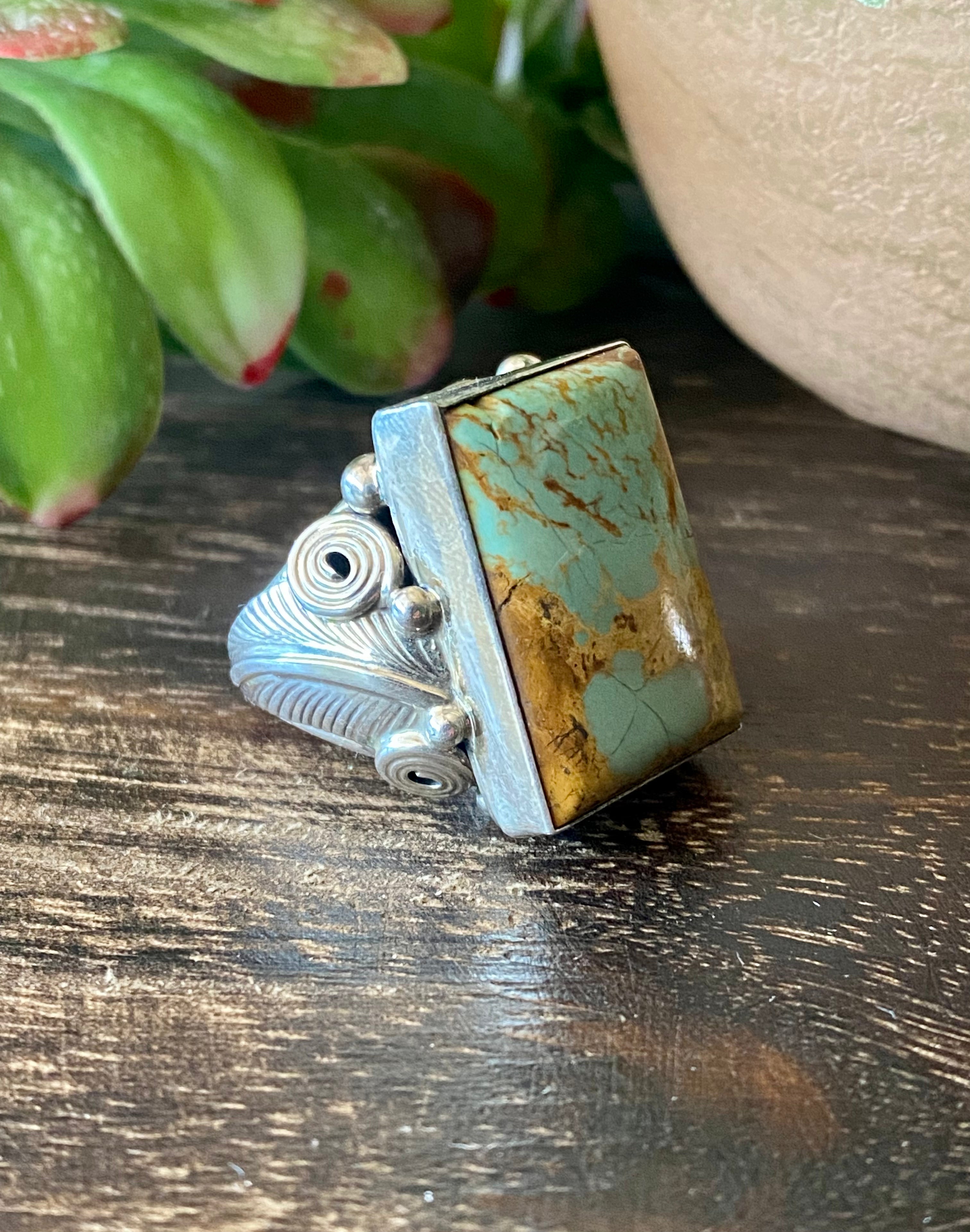 Darrell Morgan Kingman Turquoise & Sterling Silver Ring Size 10.5