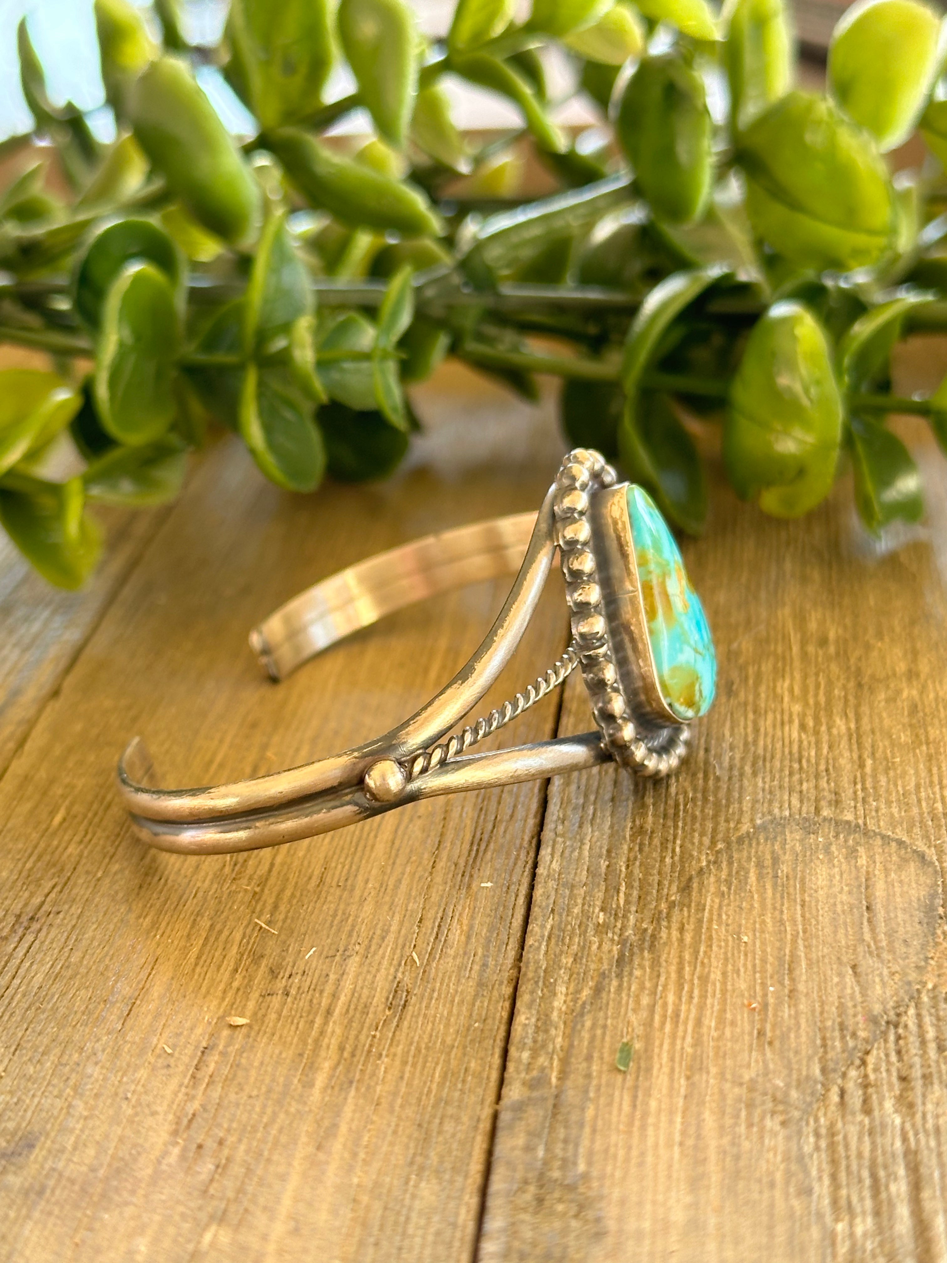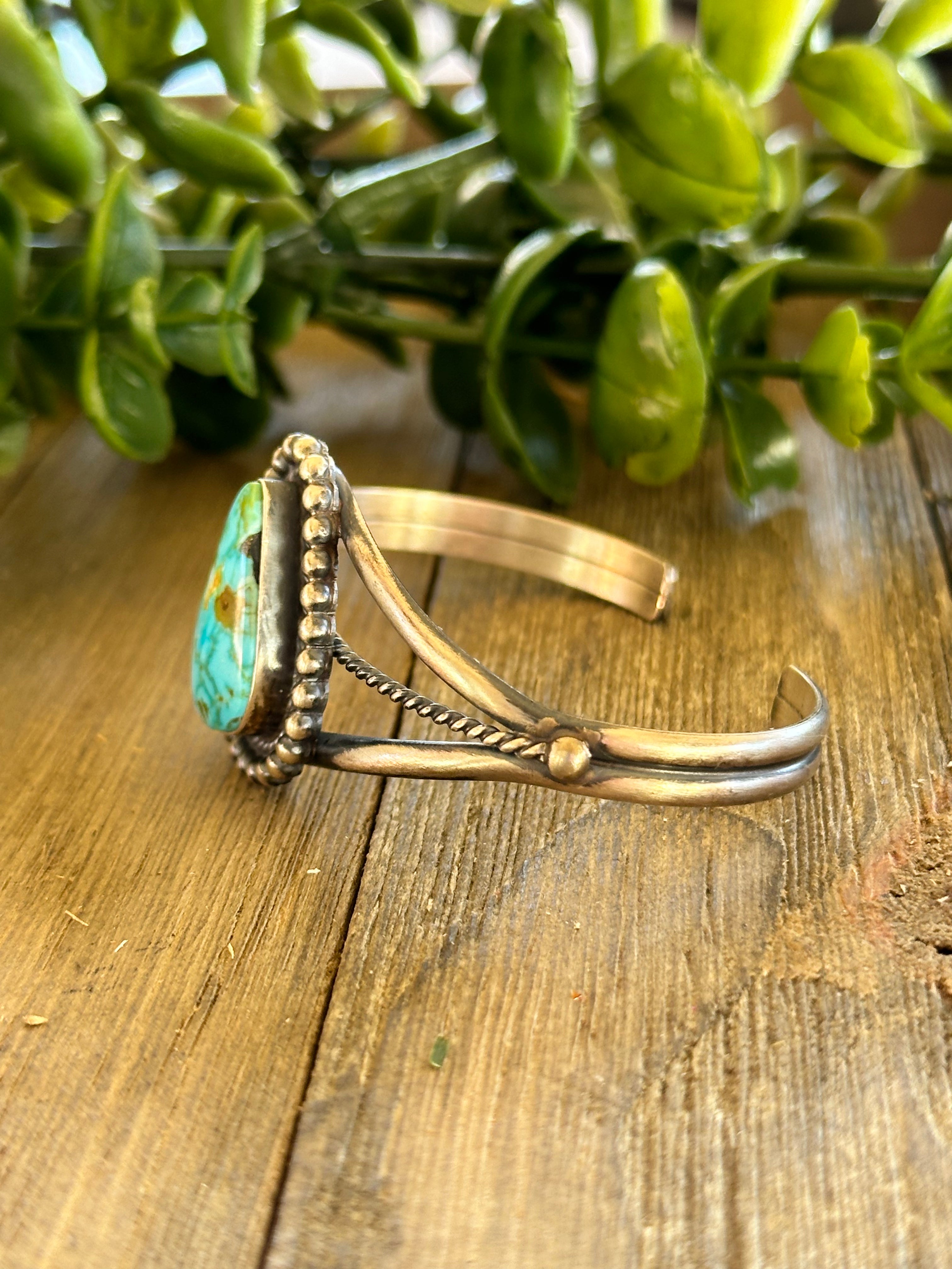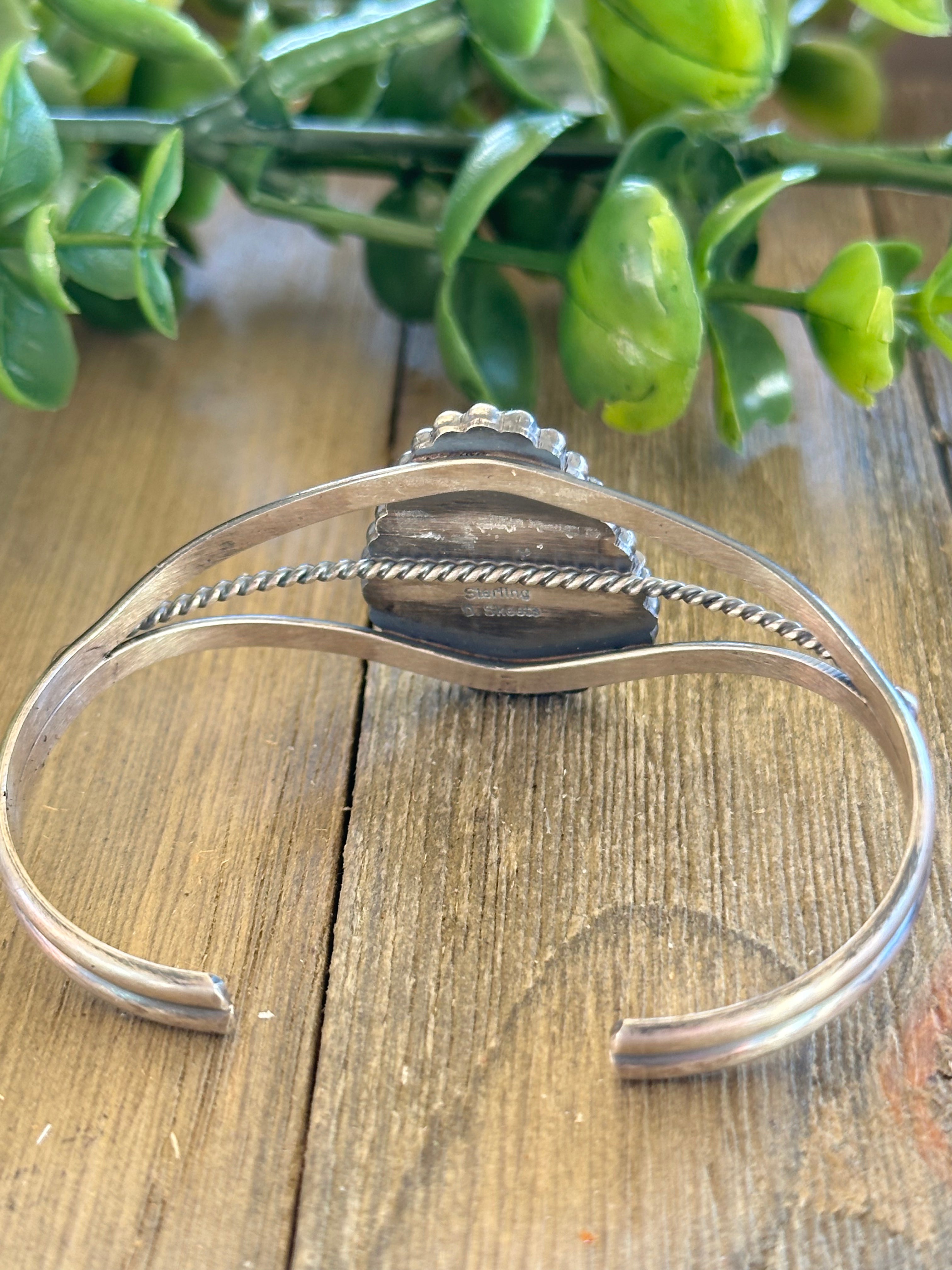 Dave Skeets Natural Birds Eye Kingman Turquoise & Sterling Silver Cuff Bracelet