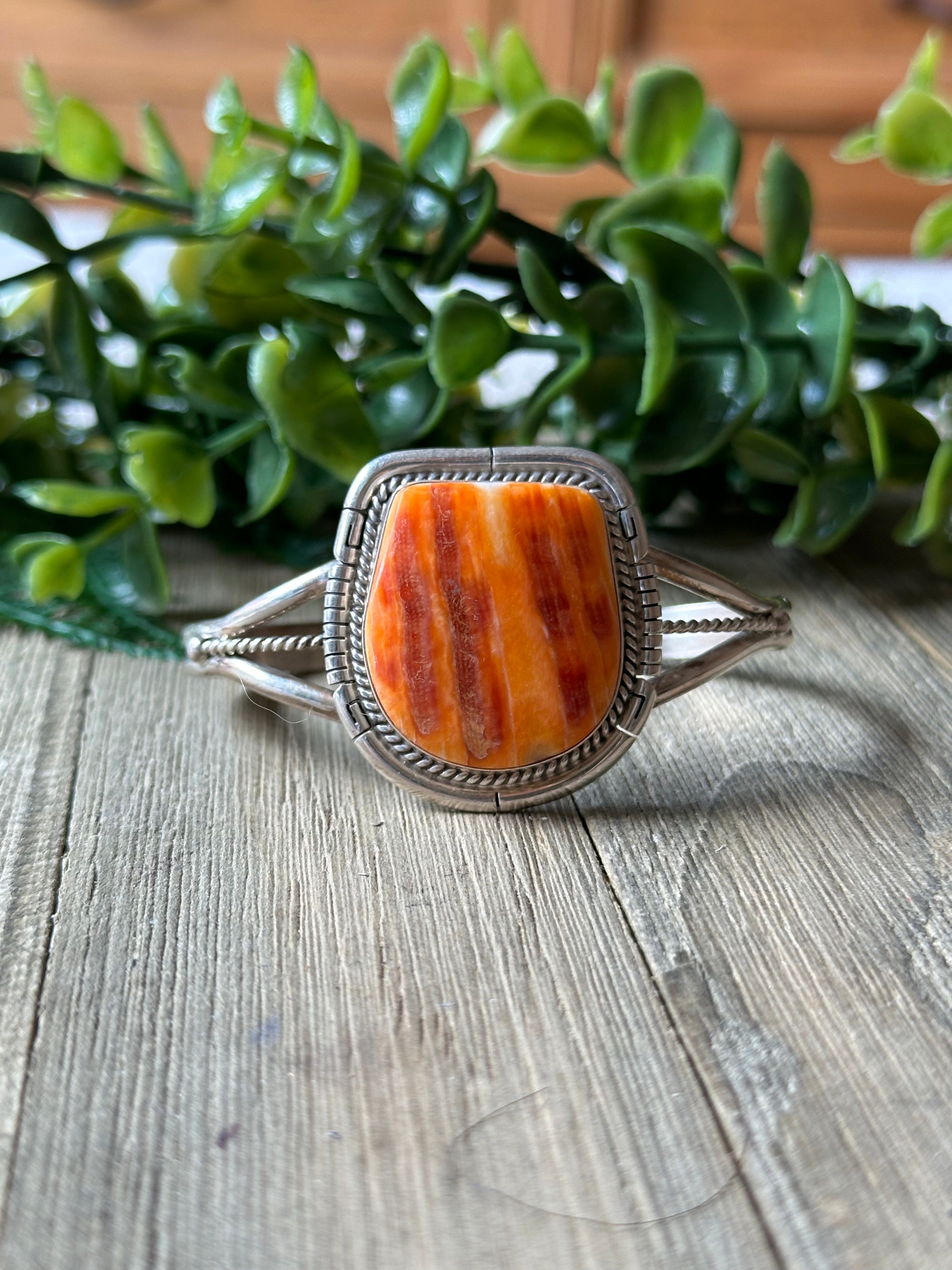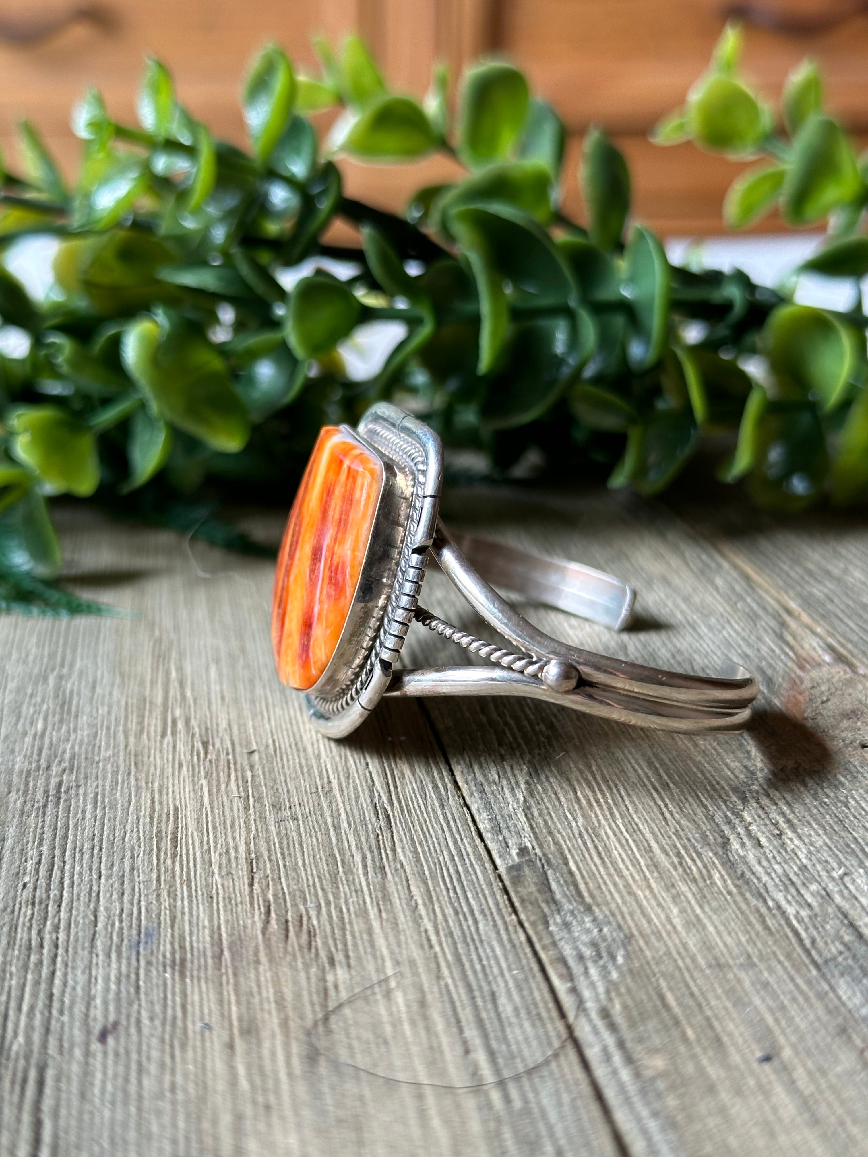 Dave Skeets Spiny Oyster & Sterling Silver Cuff Bracelet