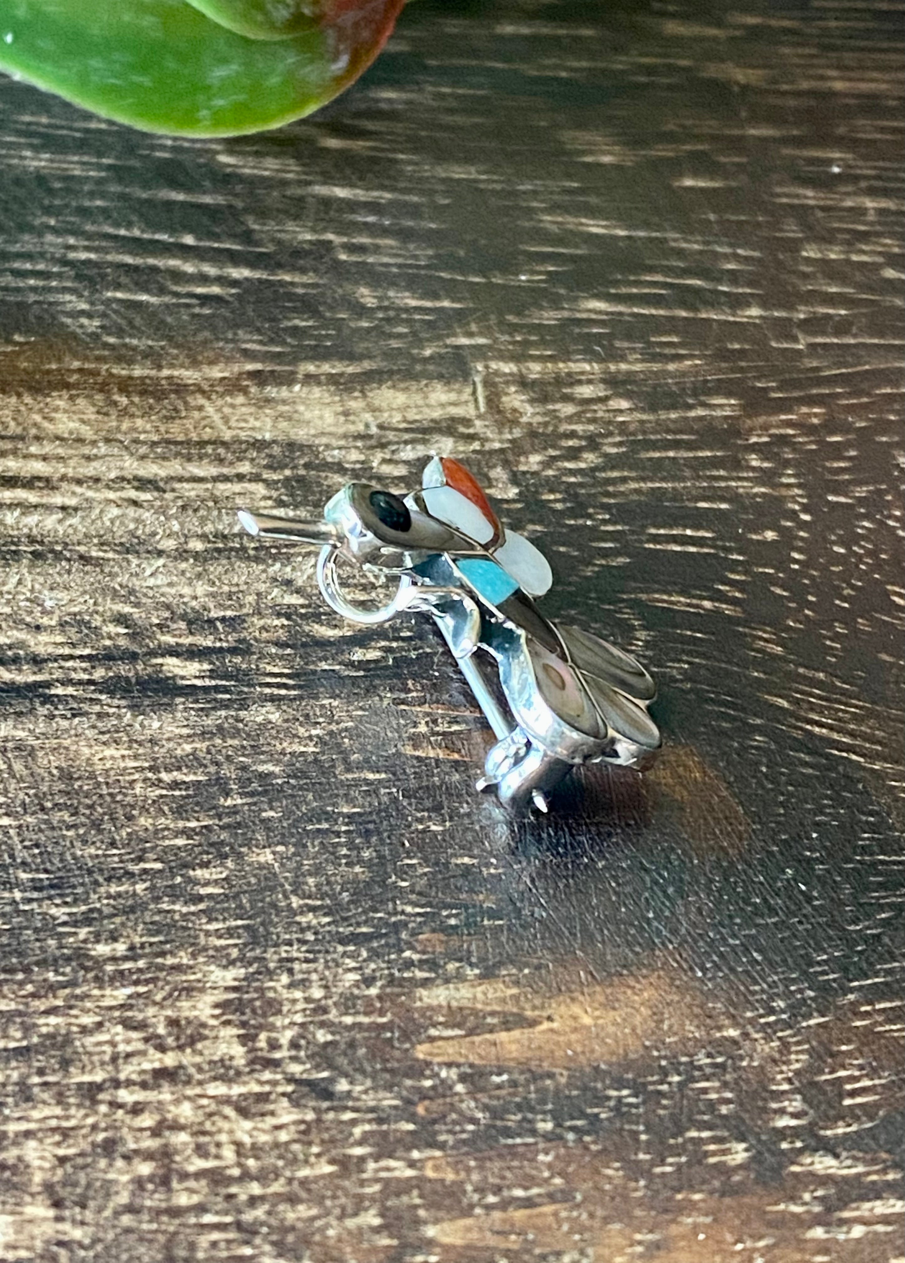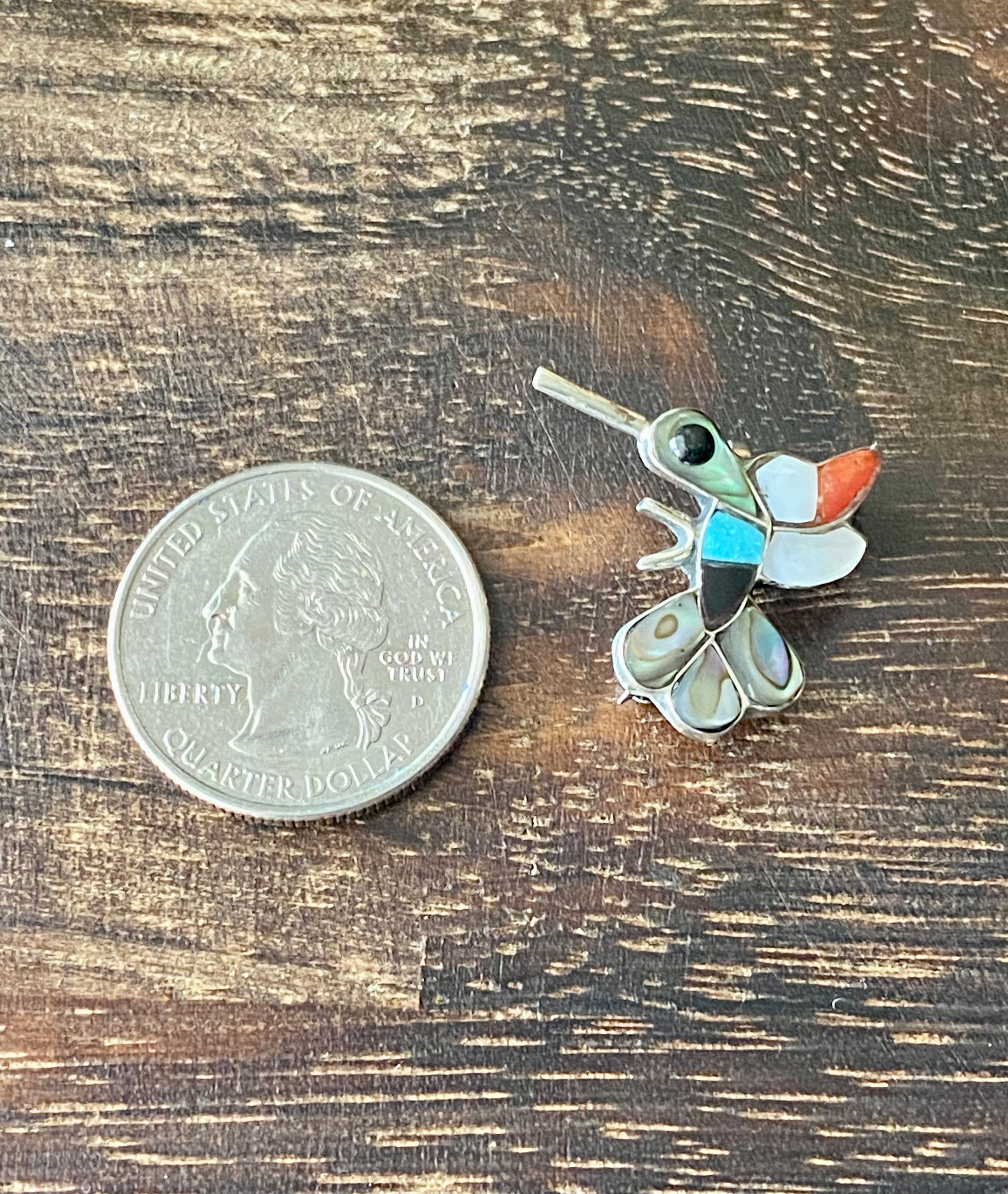 Deanna Edaakie Multi Stone & Sterling Silver Hummingbird Pin/Pendant. It measures 7/8 of an inch long and 1 inch wide. Pendant Only!! Signed by the artist.