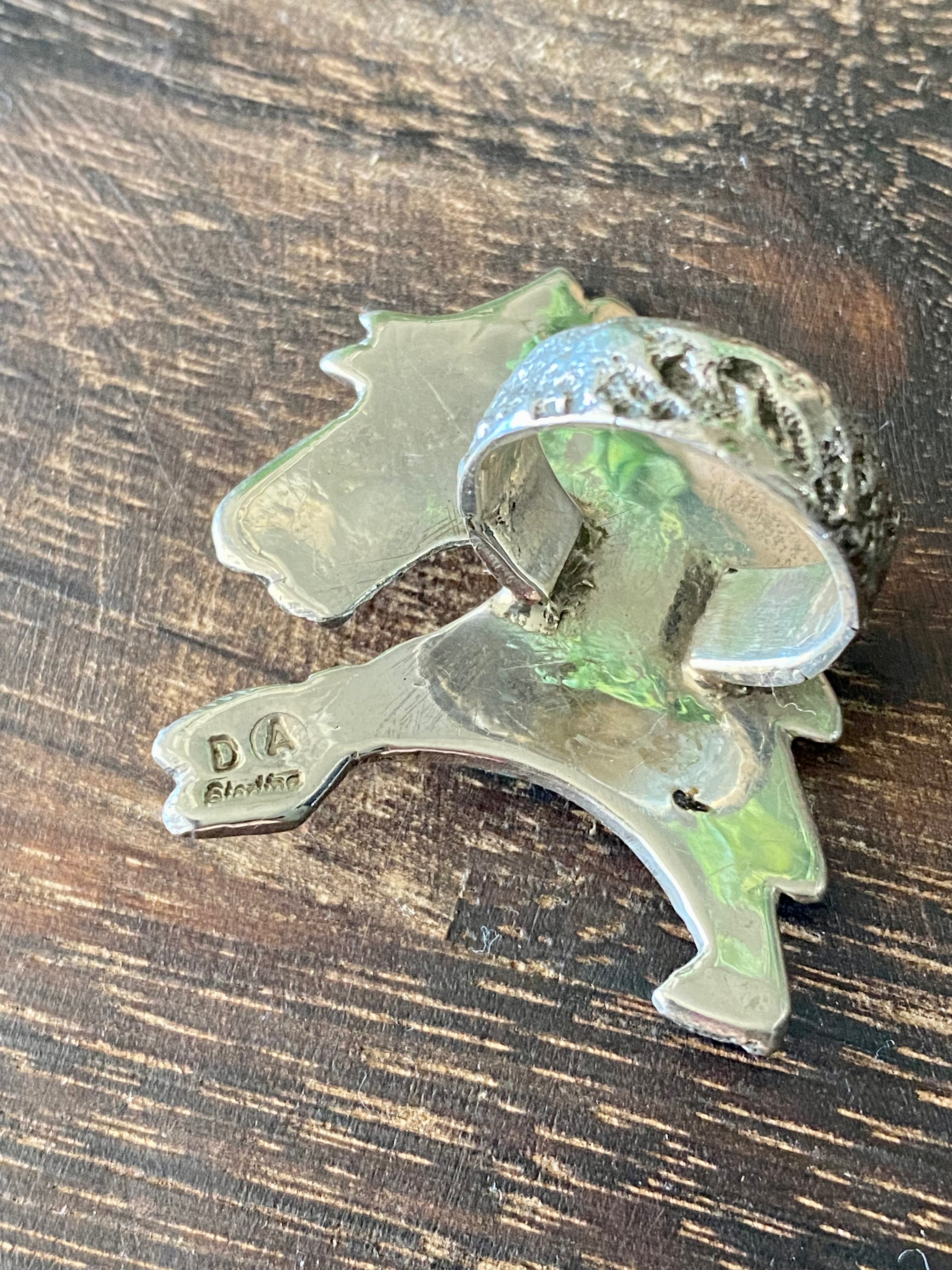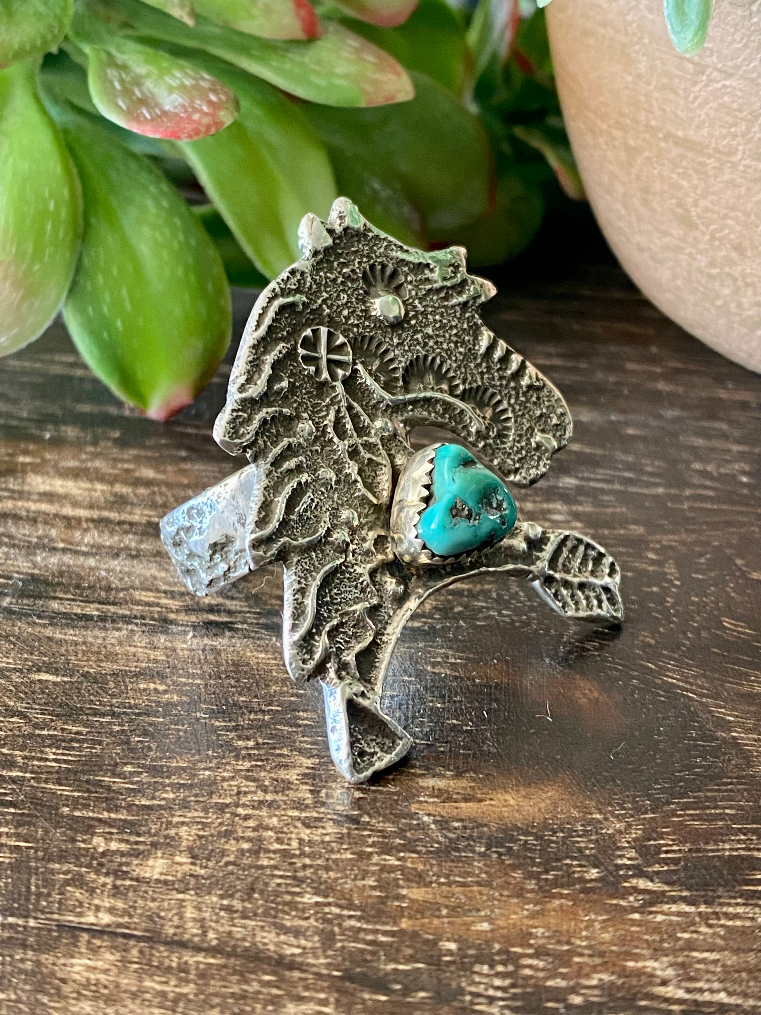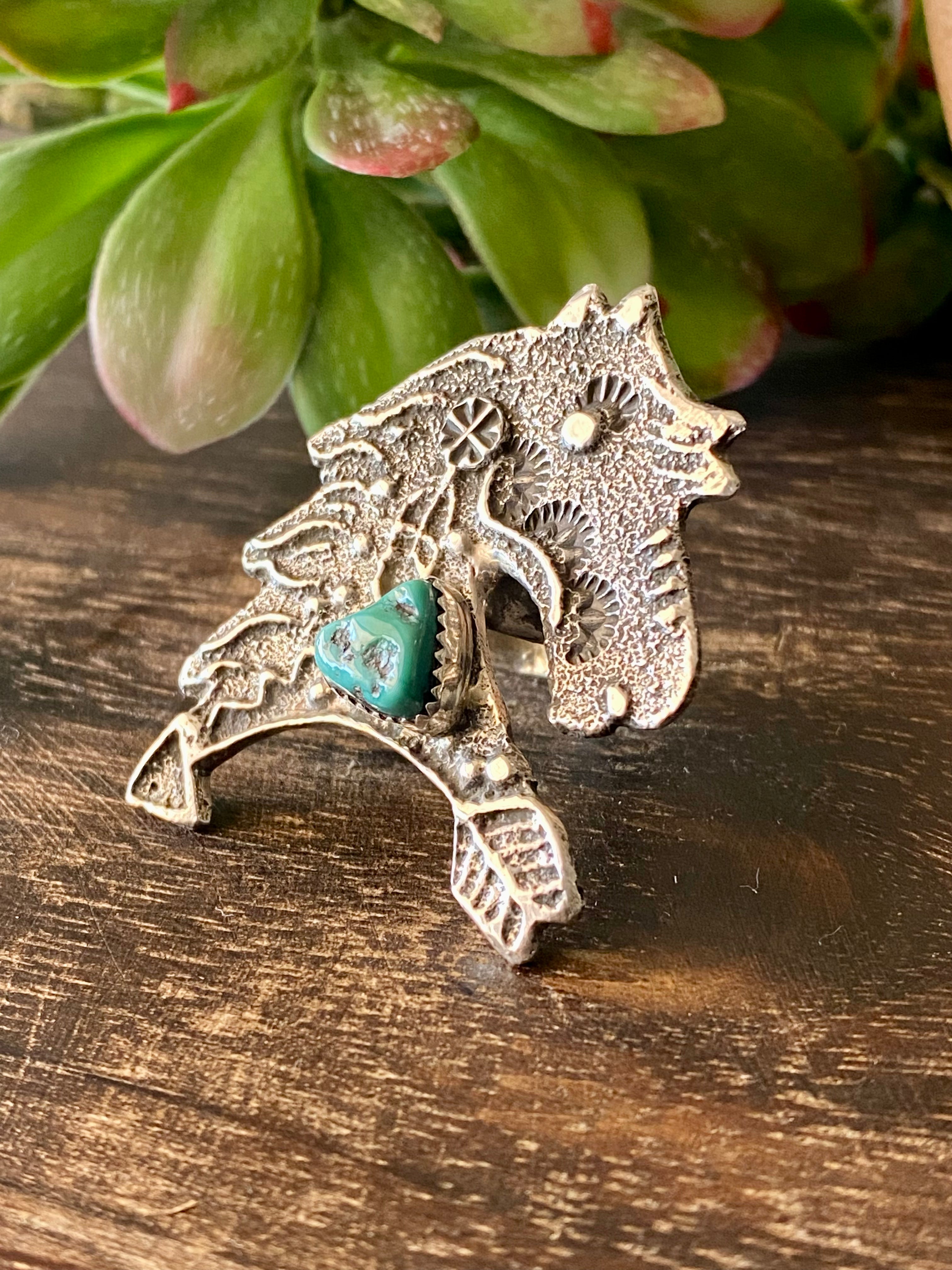 Delbert Arviso Kingman Turquoise & Sterling Silver Tufa Cast Horse Ring Size 9.75