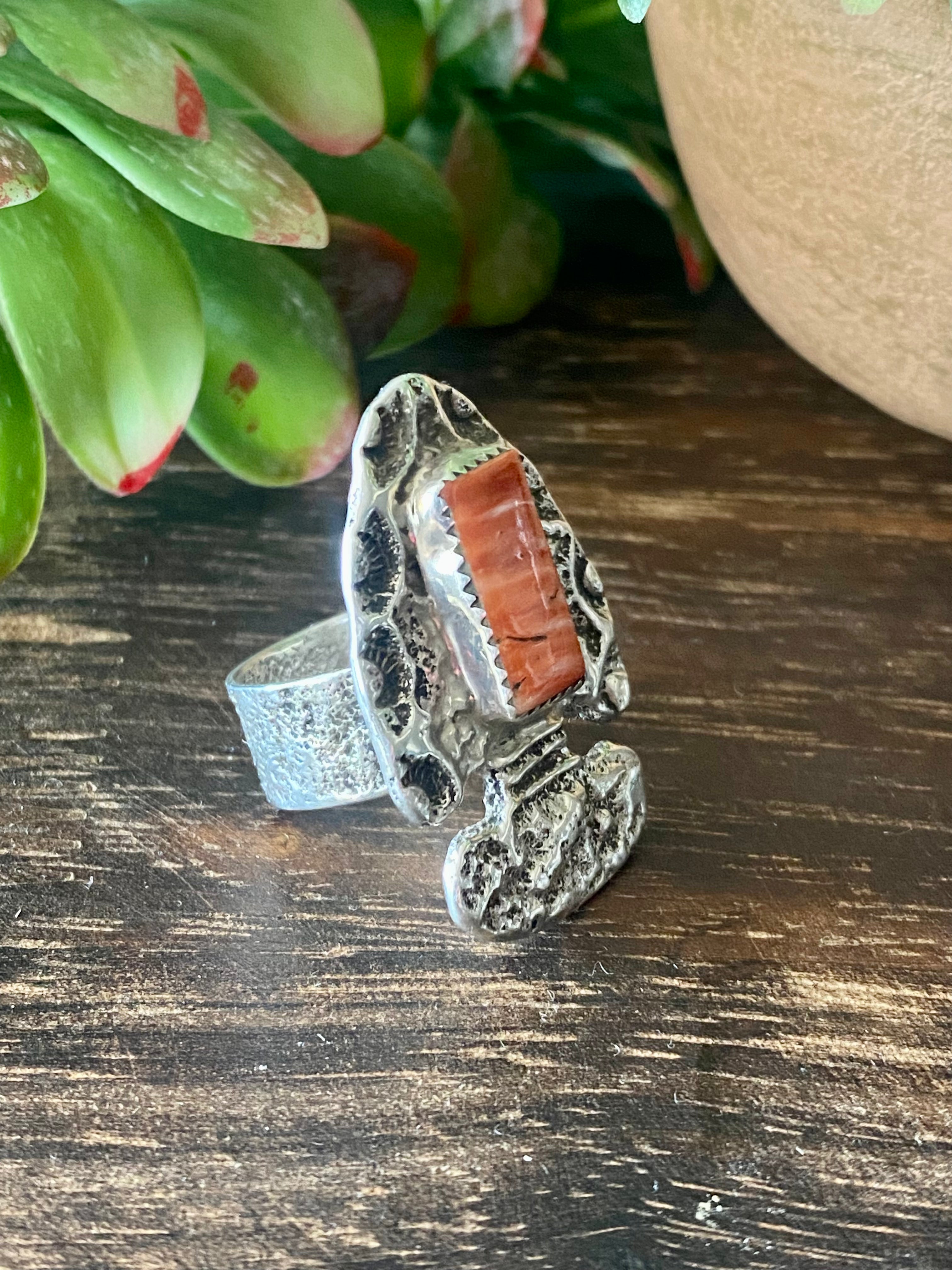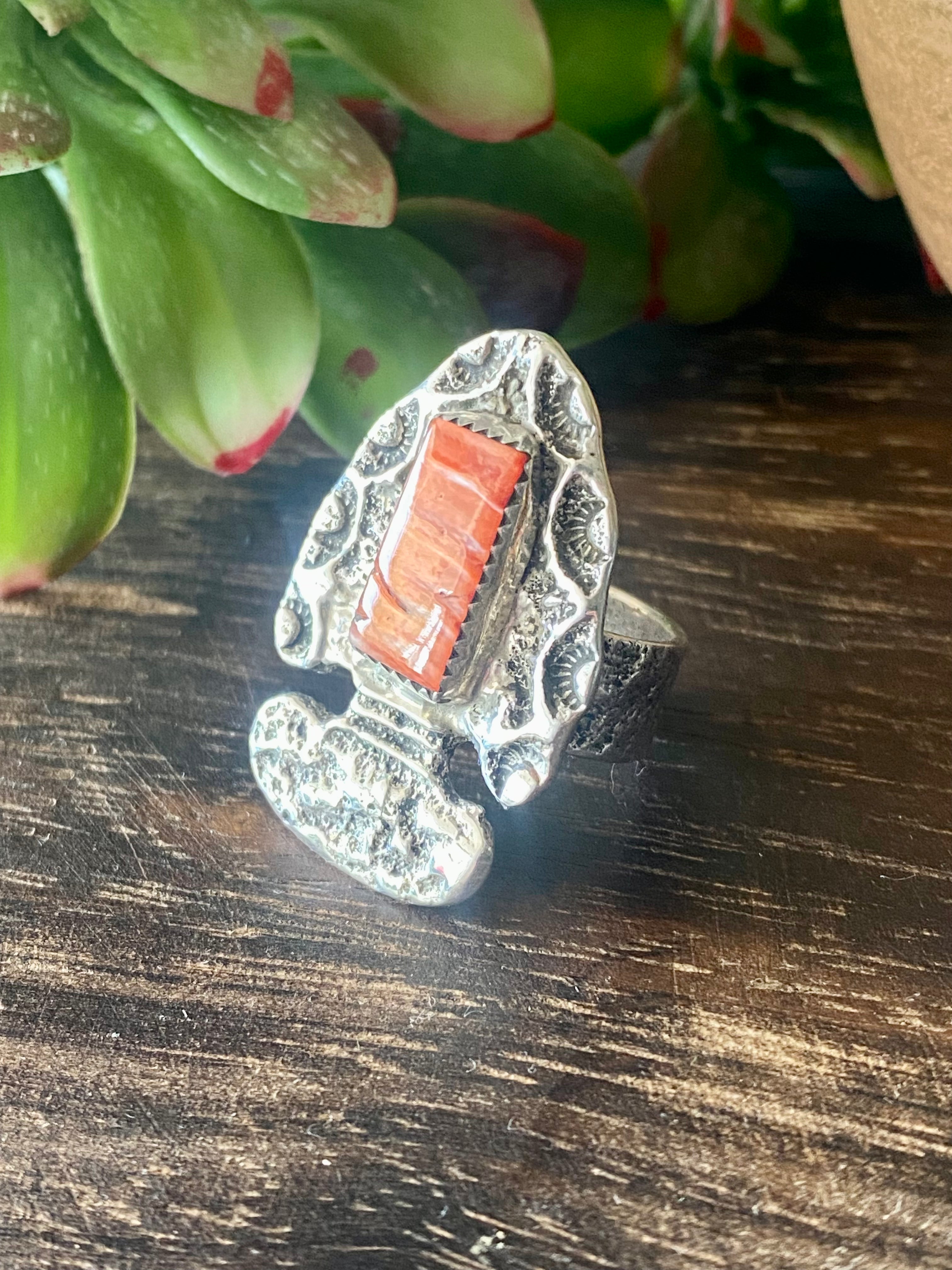 Delbert Arviso Spiny Oyster & Sterling Silver Ring Size 8.25