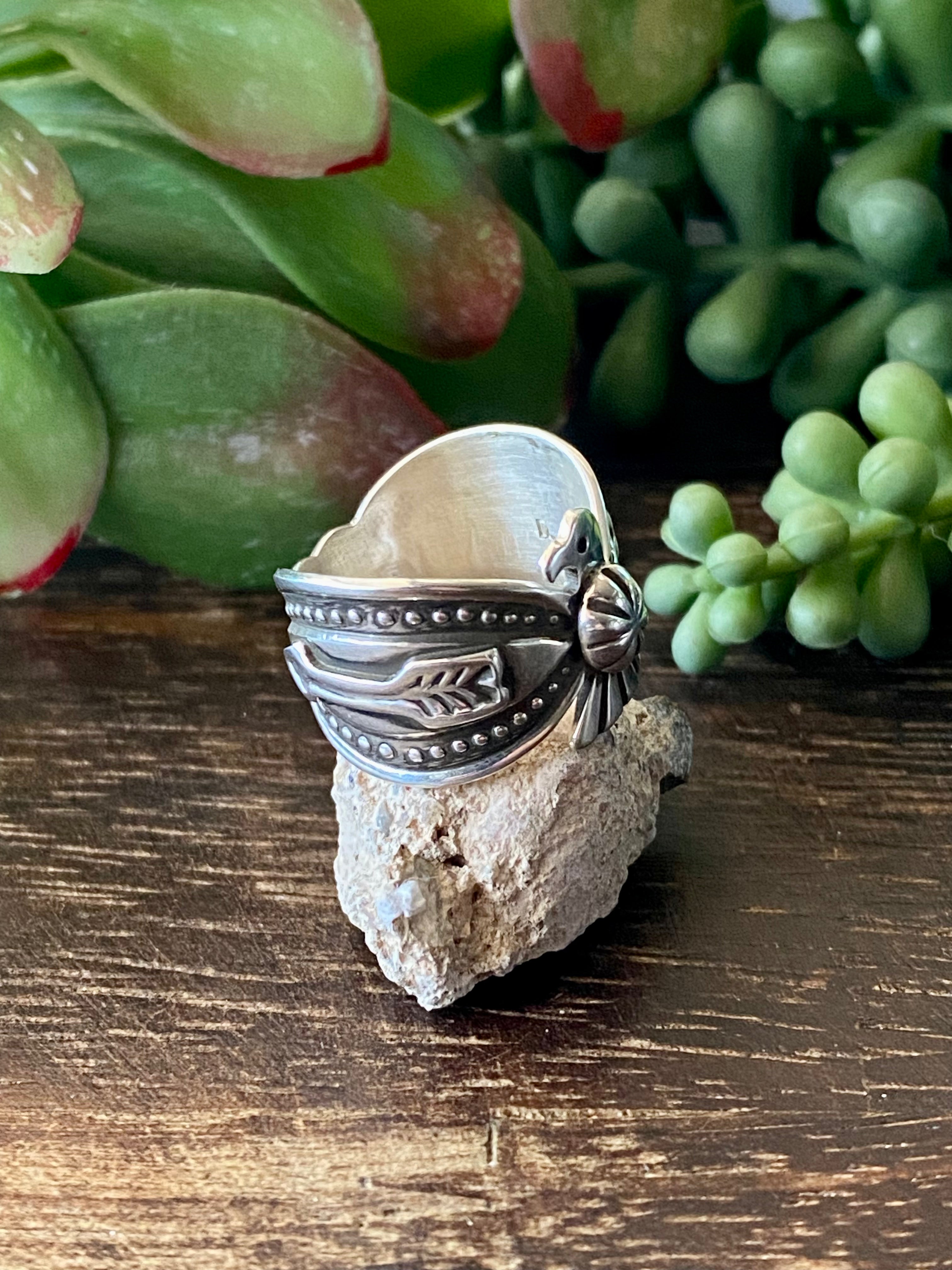 Derick Cadman Sterling Silver Thunderbird Rings. They measure 1/2 of an inch long and just under 3/4 of an inch wide. Signed by the artist and stamped sterling silver.