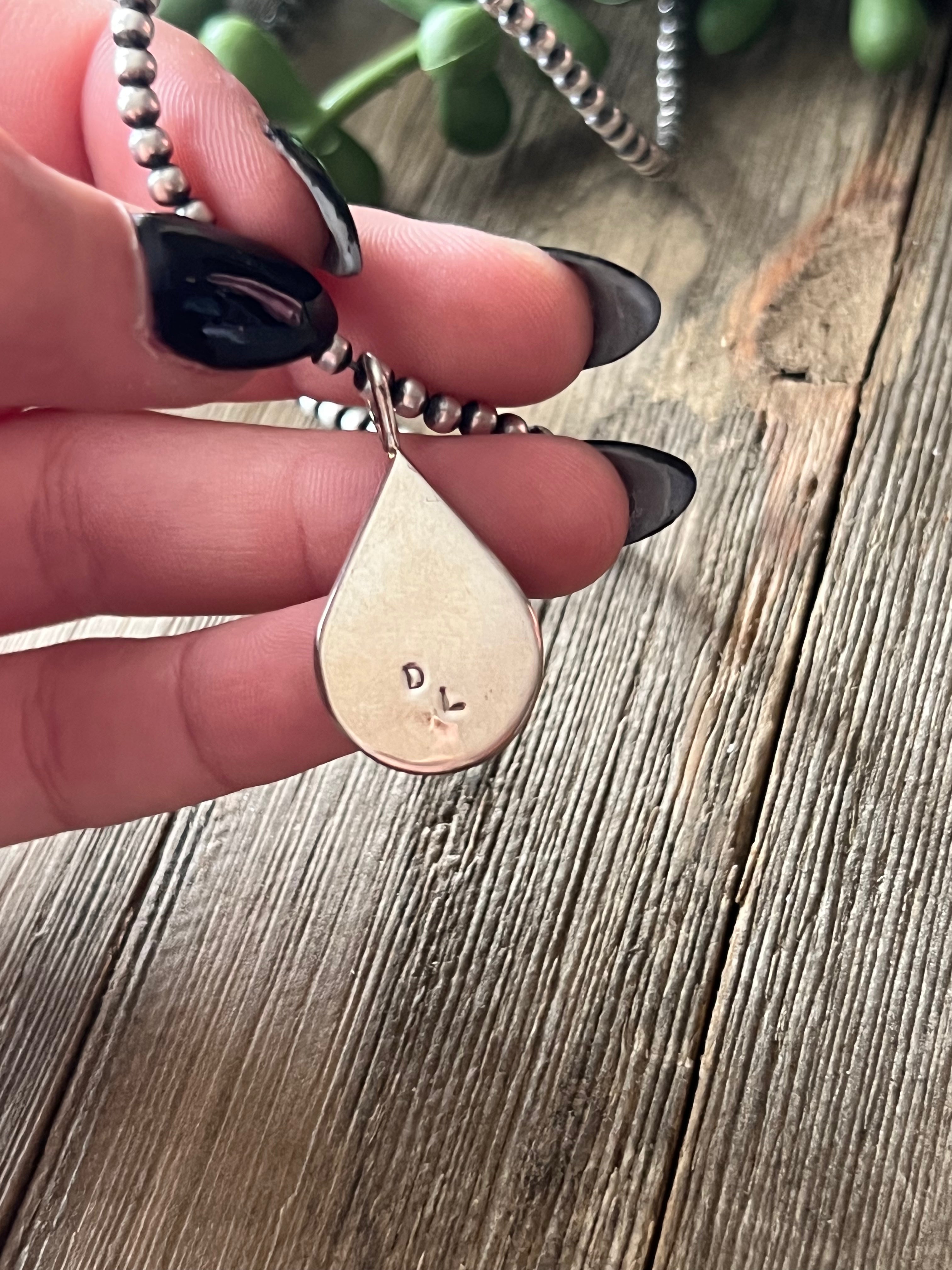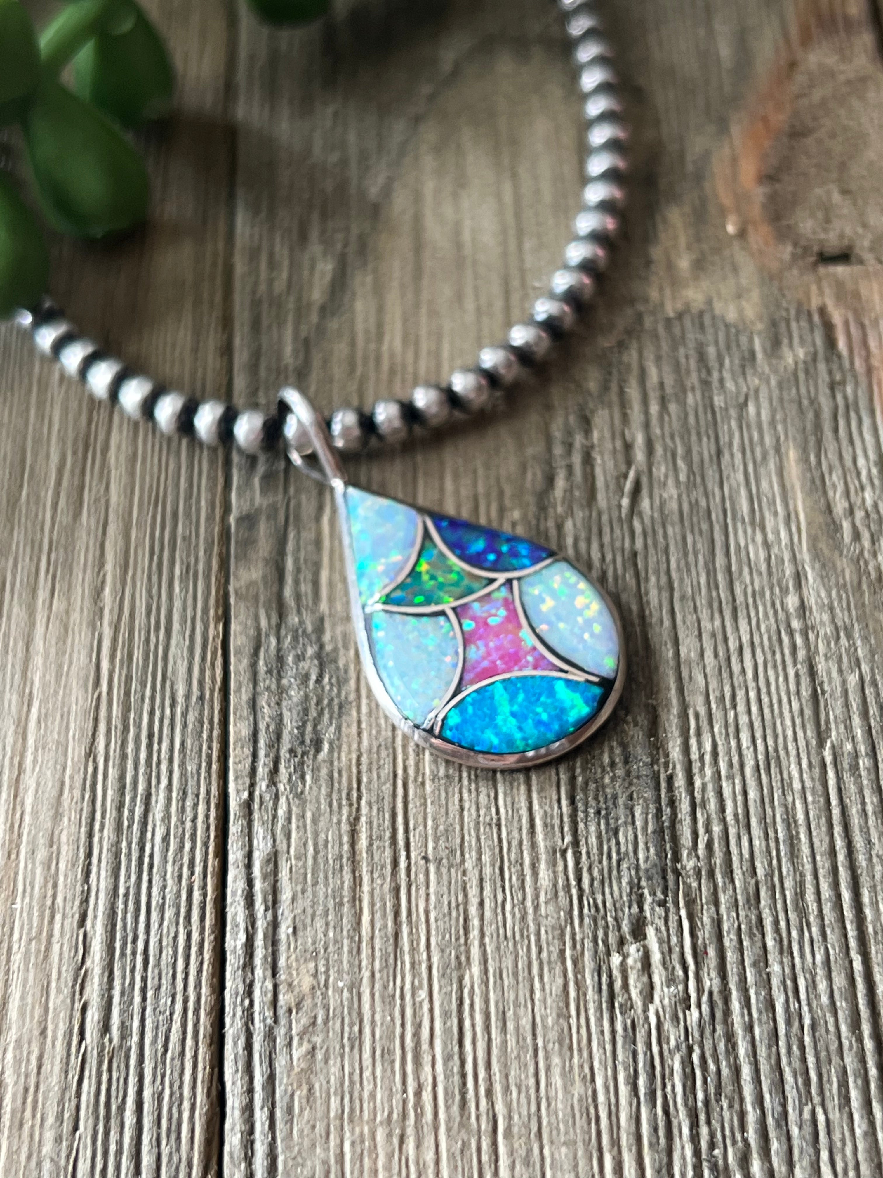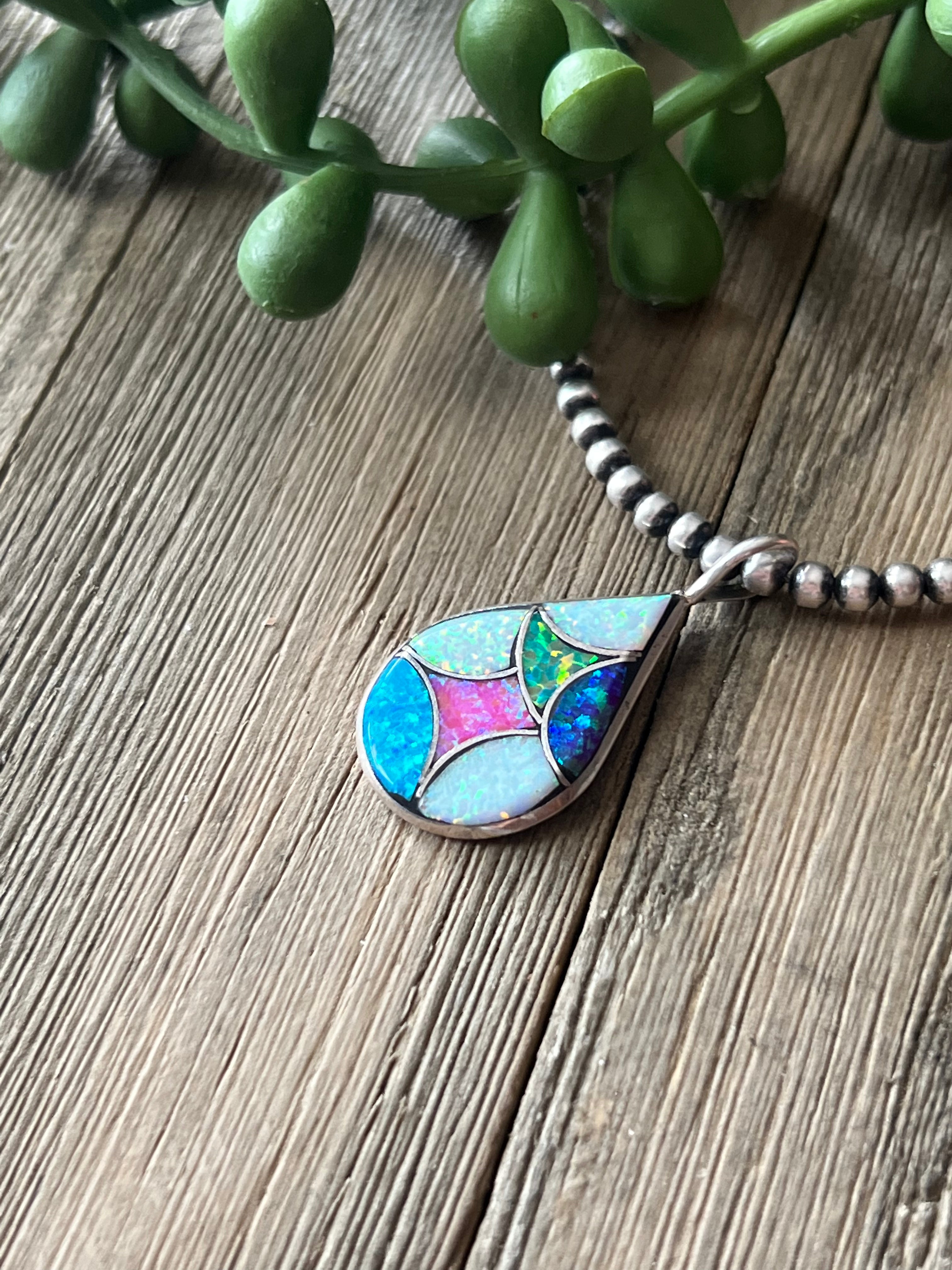 Donna Laslio Multi Stone & Sterling Silver Inlay Pendant. It measures 1 1/4 inches long and 5/8 of an inch wide. Pendant Only!! Signed by the artist and stamped sterling silver.