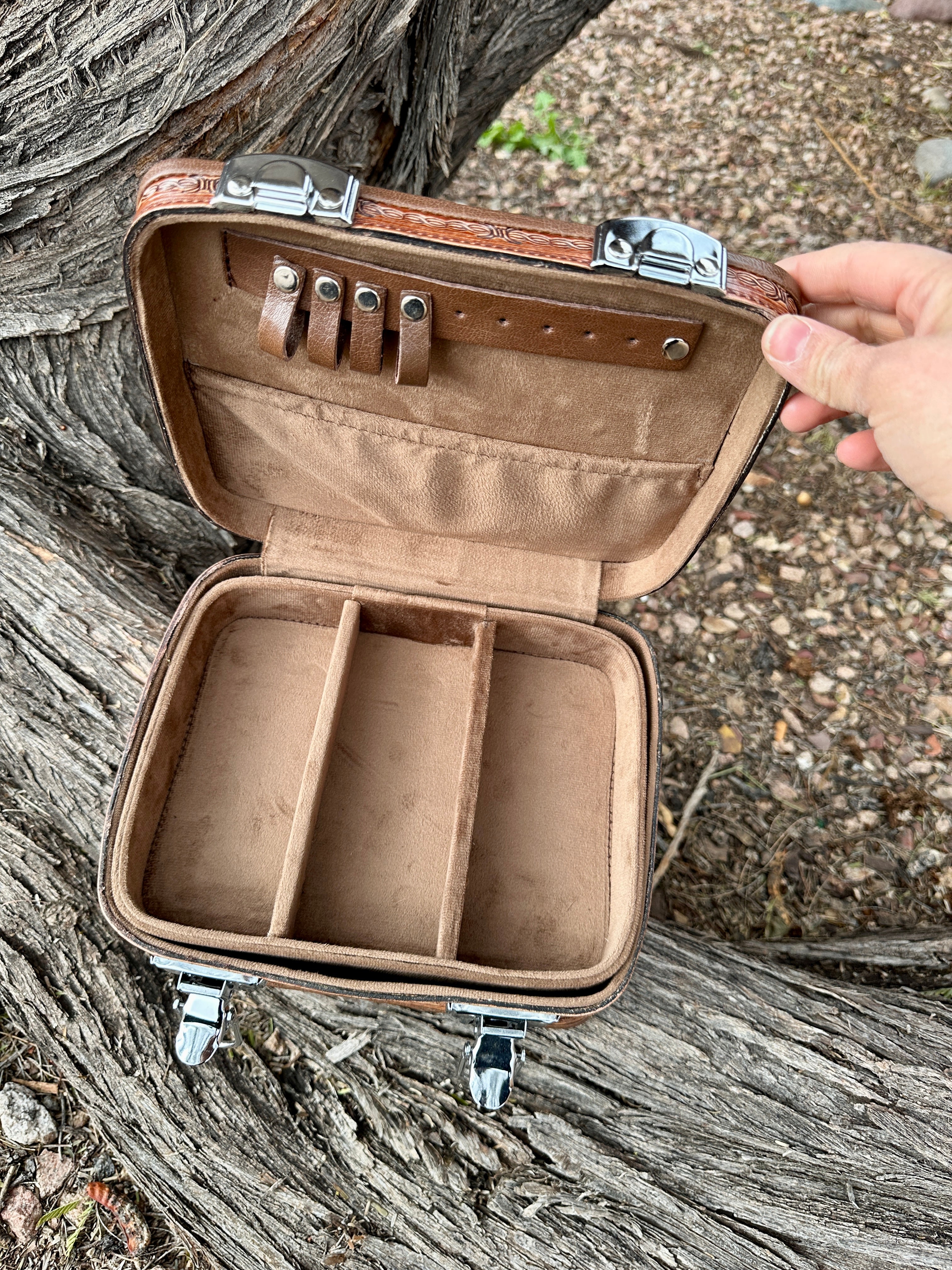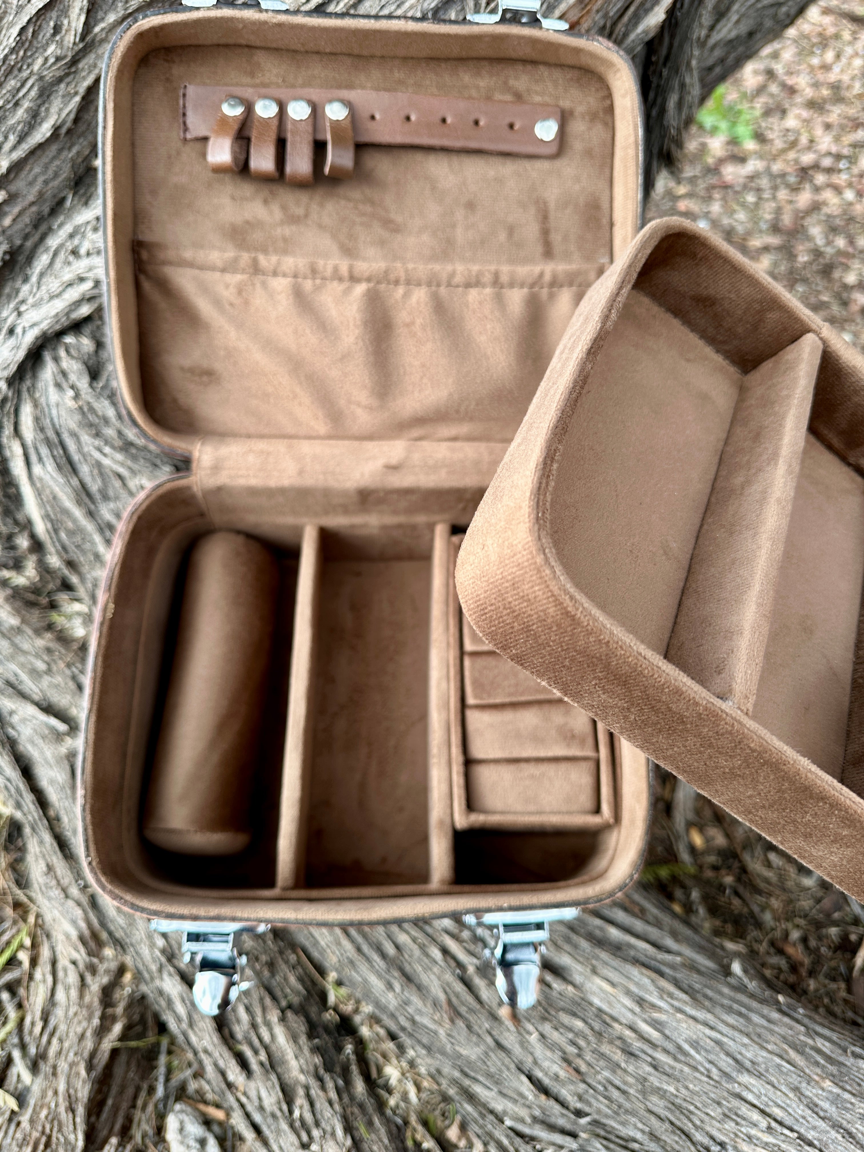 It measures 12 inches across and 6 inches in depth. Double Layers, has straps that can be adjusted!