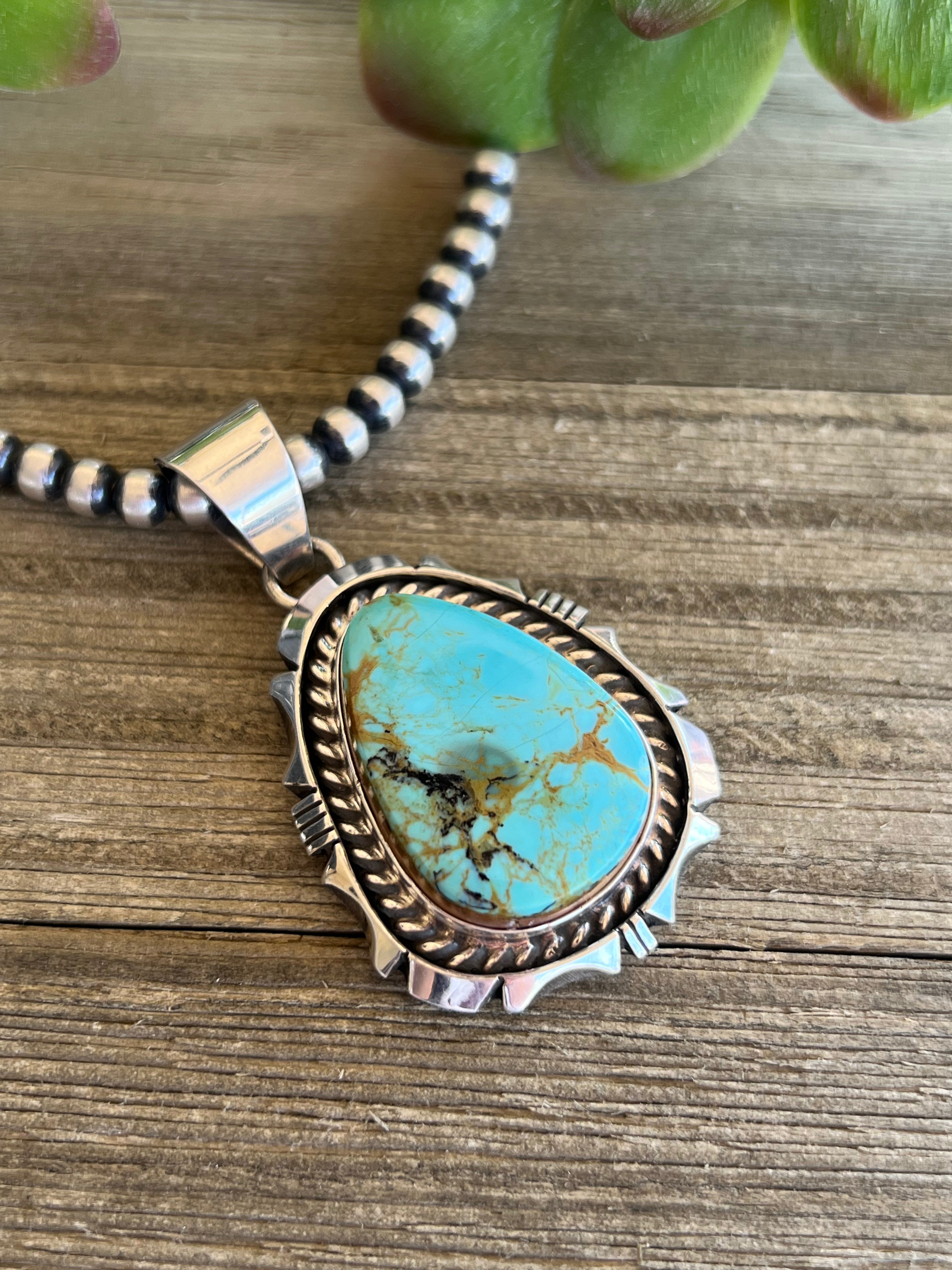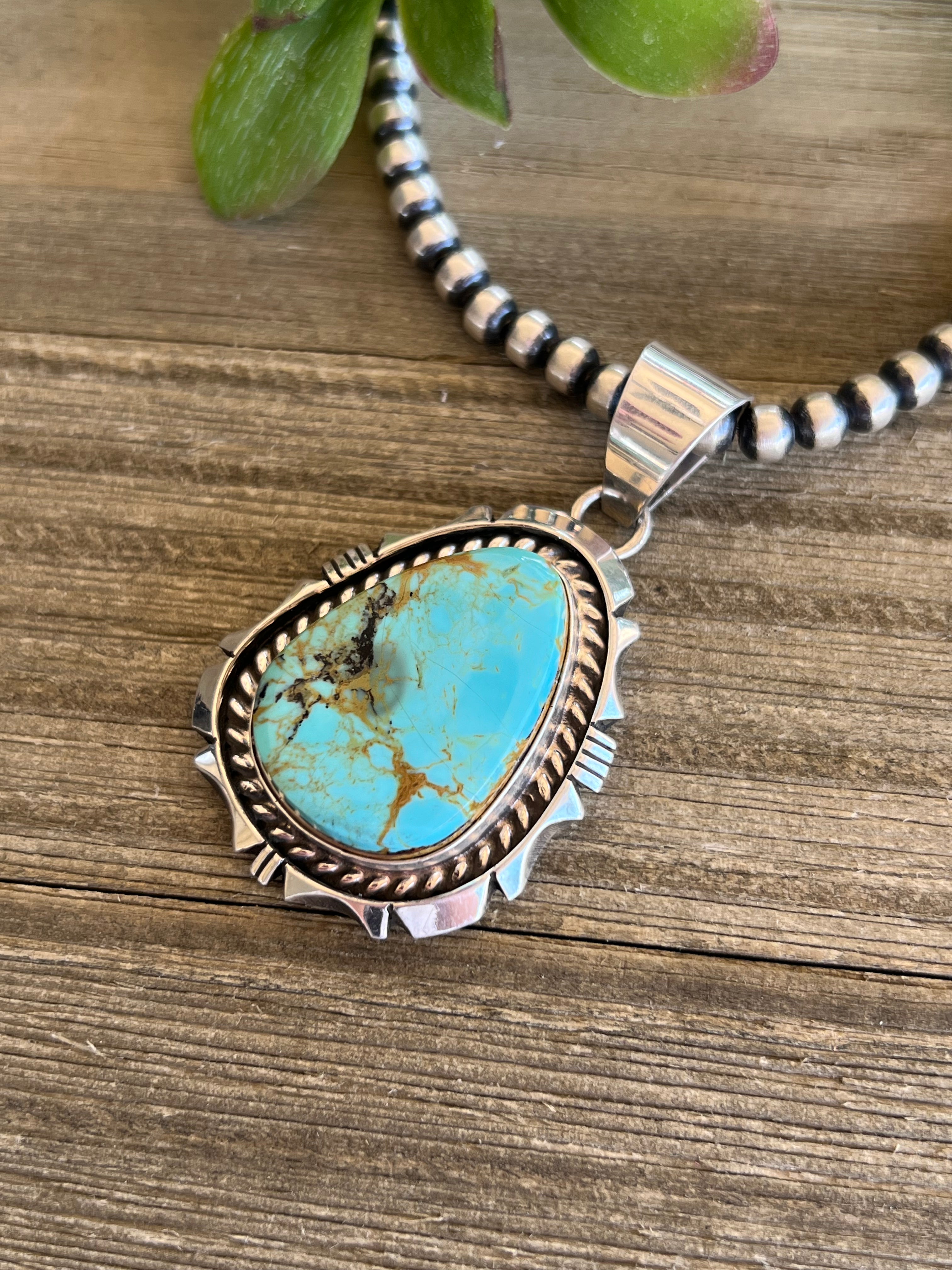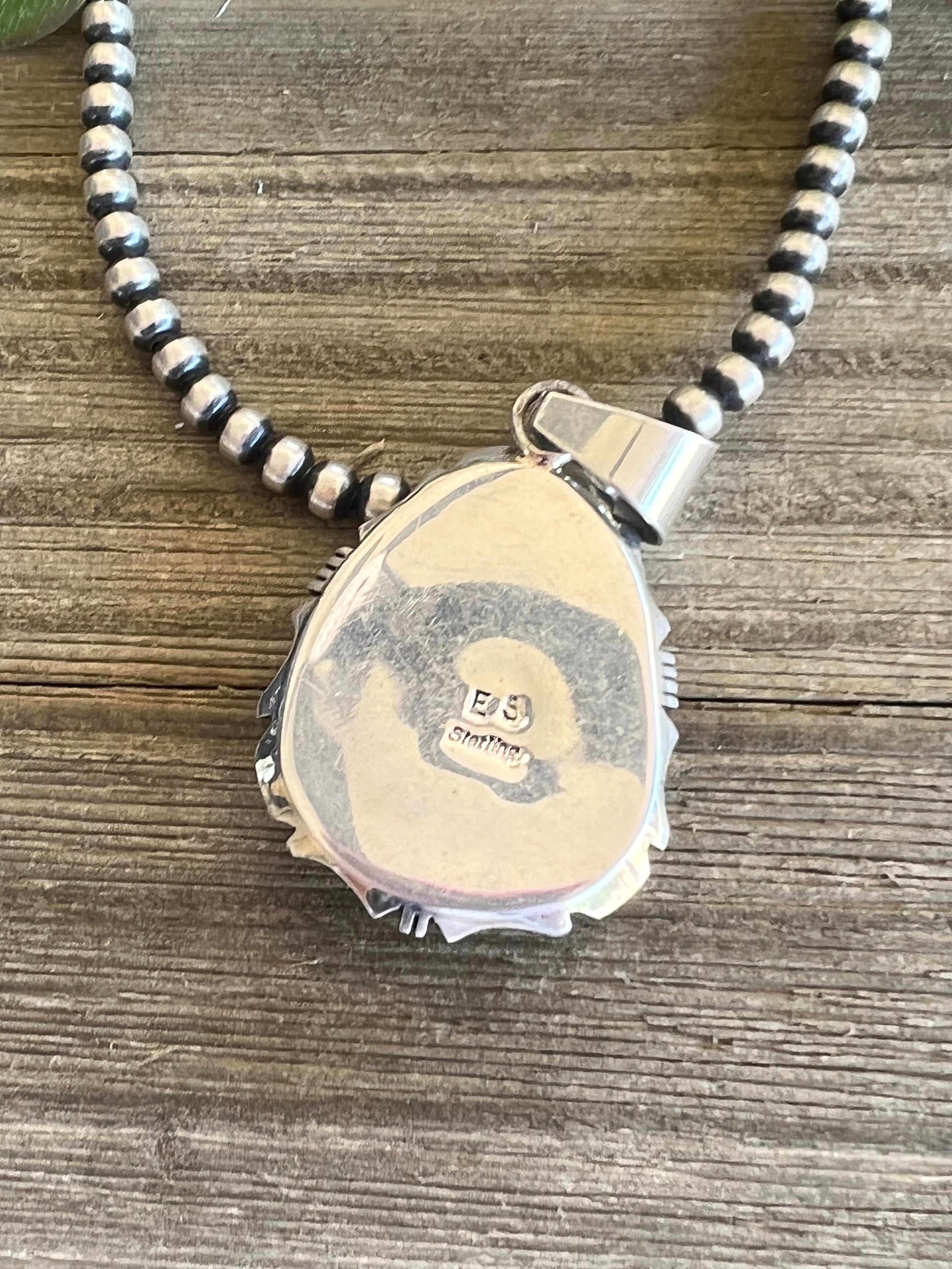 Eddie Secataro Royston Turquoise & Sterling Silver Pendant. It measures 2 1/4 inches long and 1 1/4 inches wide. Pendant Only!! Signed by the artist and stamped sterling silver.