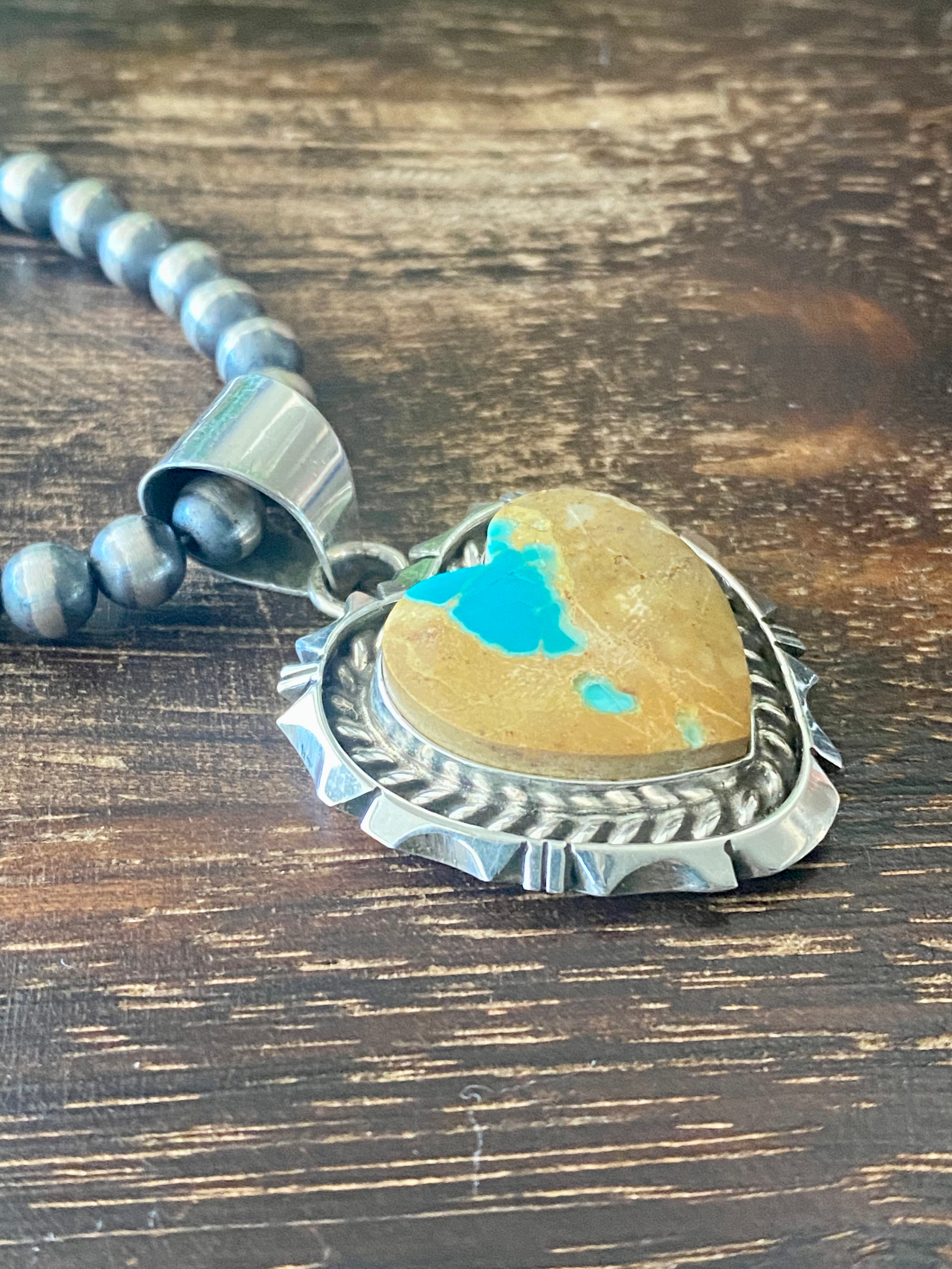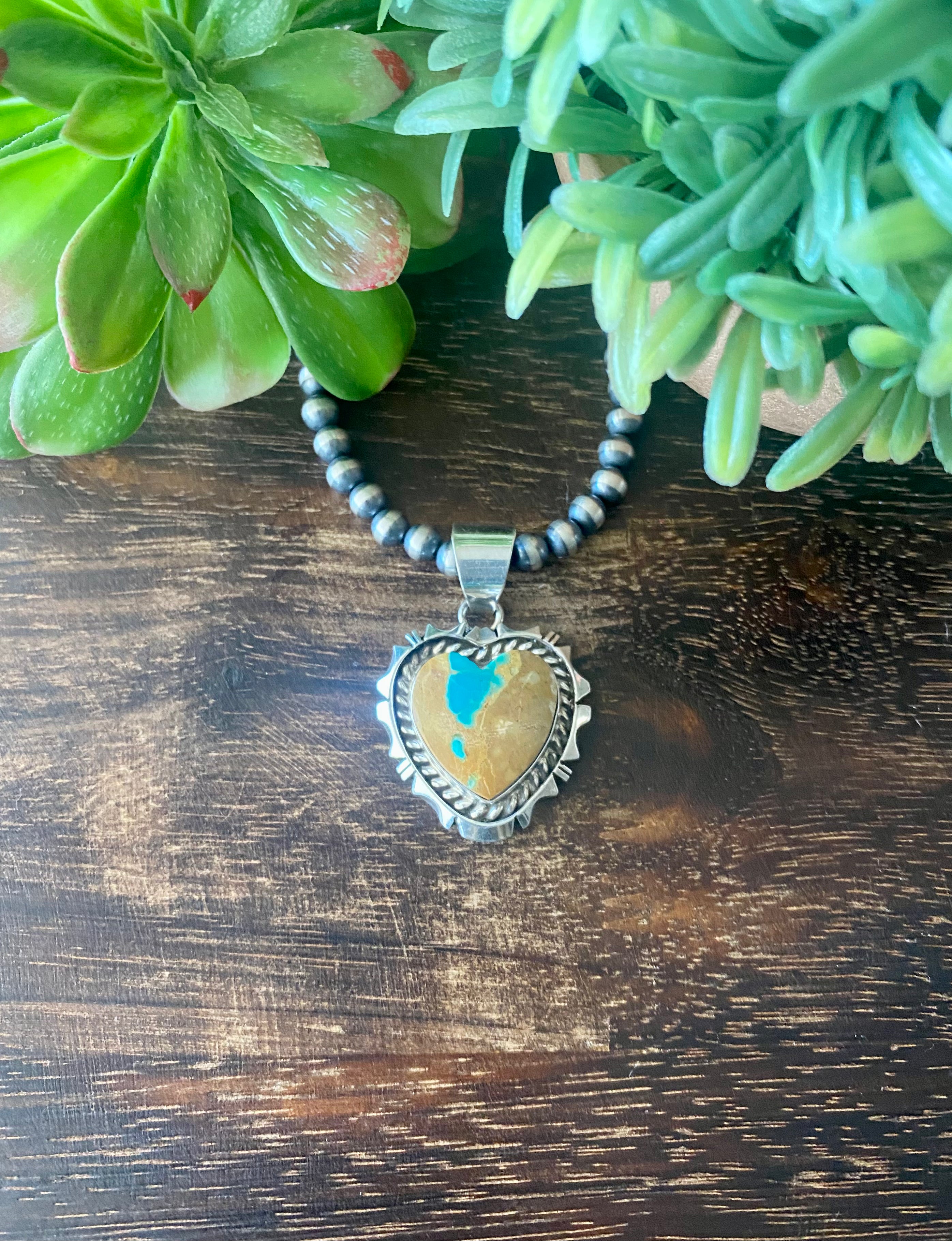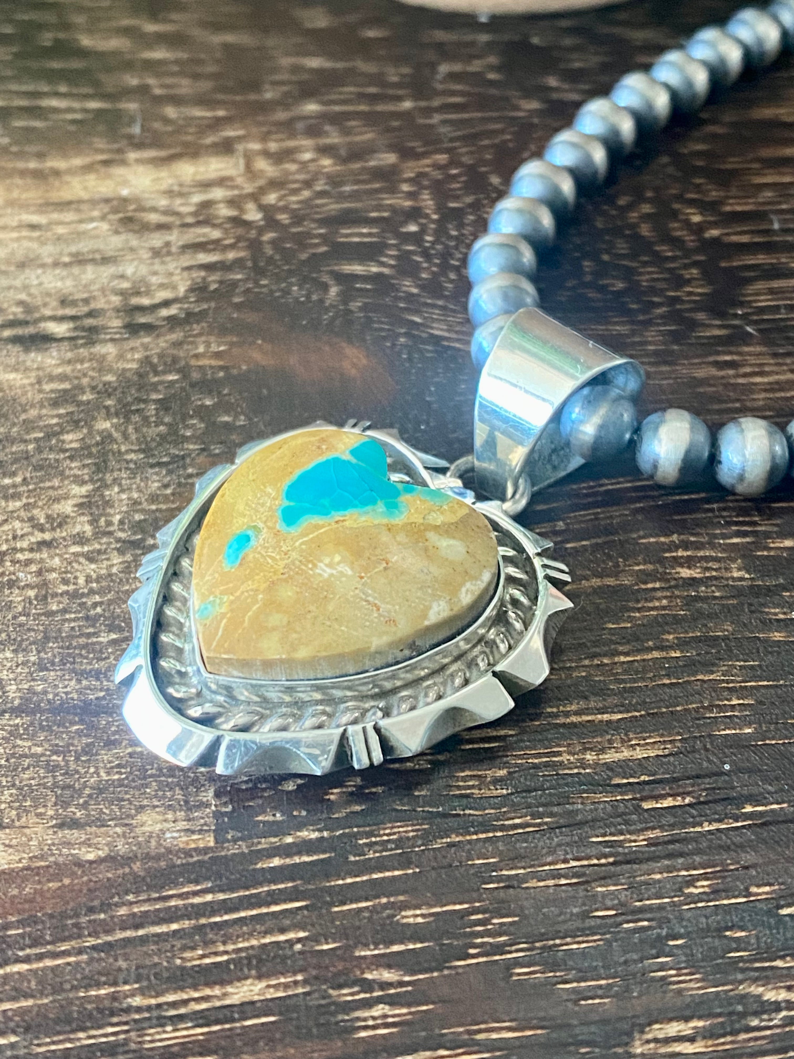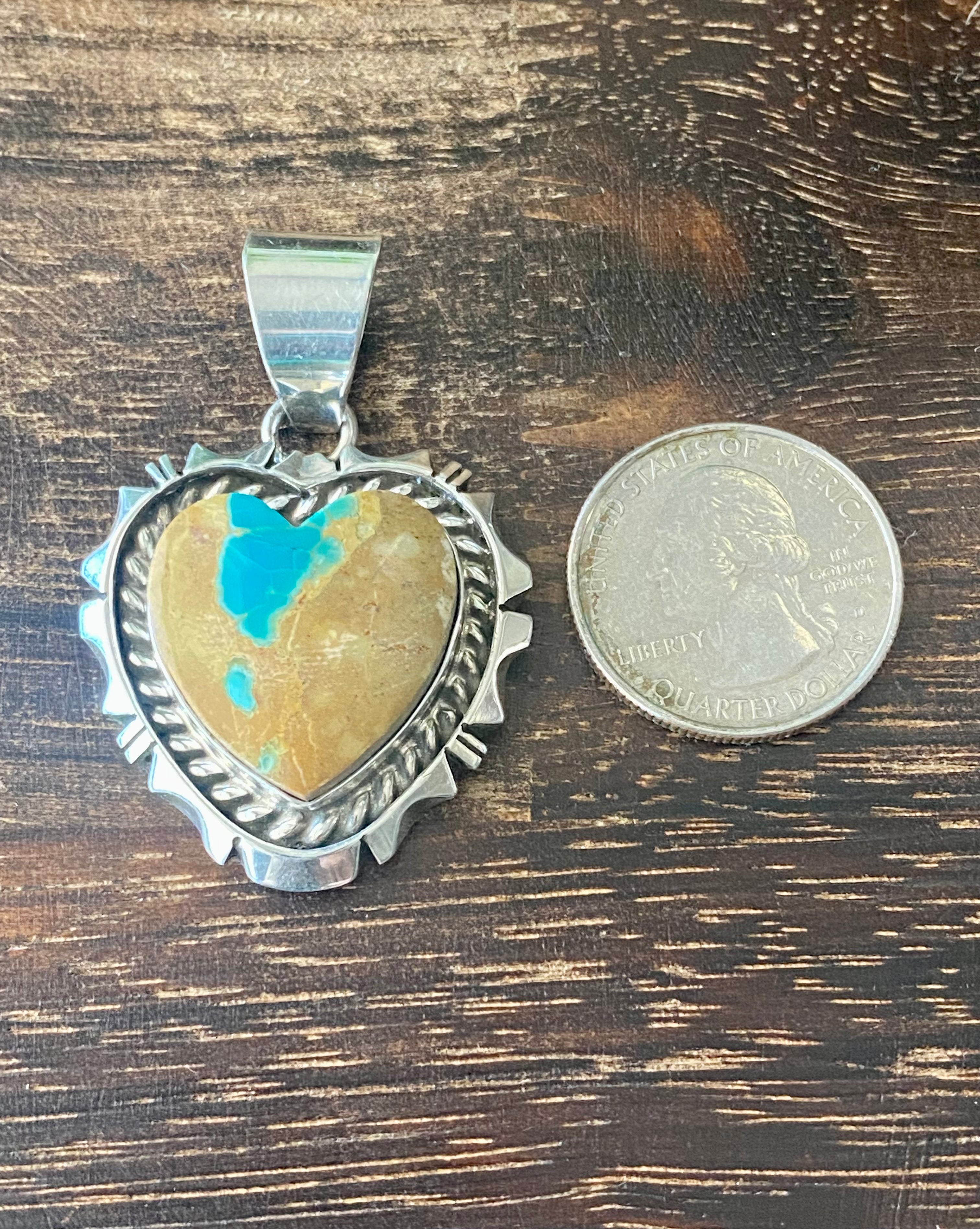 Eddie Secatero Ribbon Royston Turquoise & Sterling Silver Heart Pendant