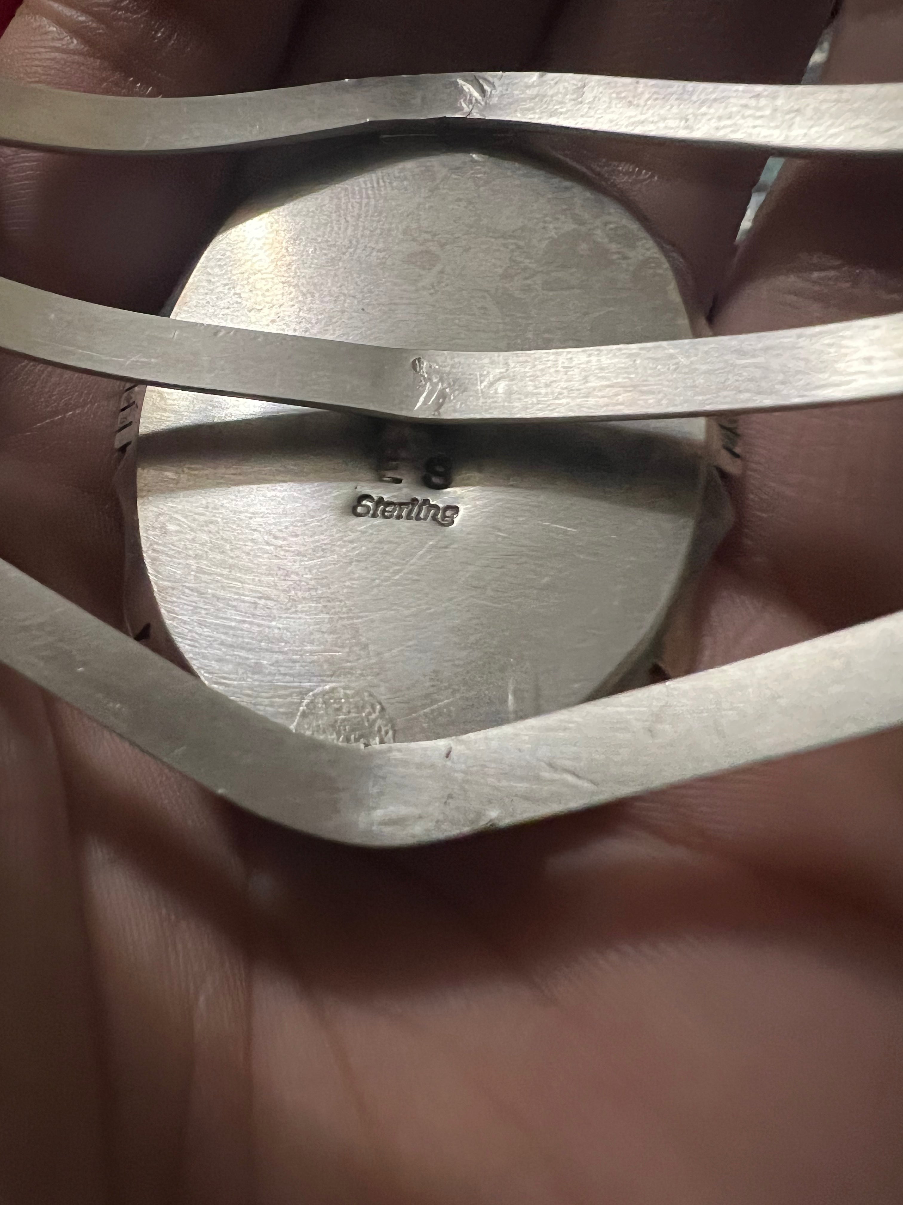 Eddie Secatero Turquoise Mountain & Sterling Silver Cuff Bracelet. It measures 1 3/4 of an inch wide with an inside circumference of 6 1/4 inches and a gap of 1 inch. Signed by the artist and stamped sterling silver.