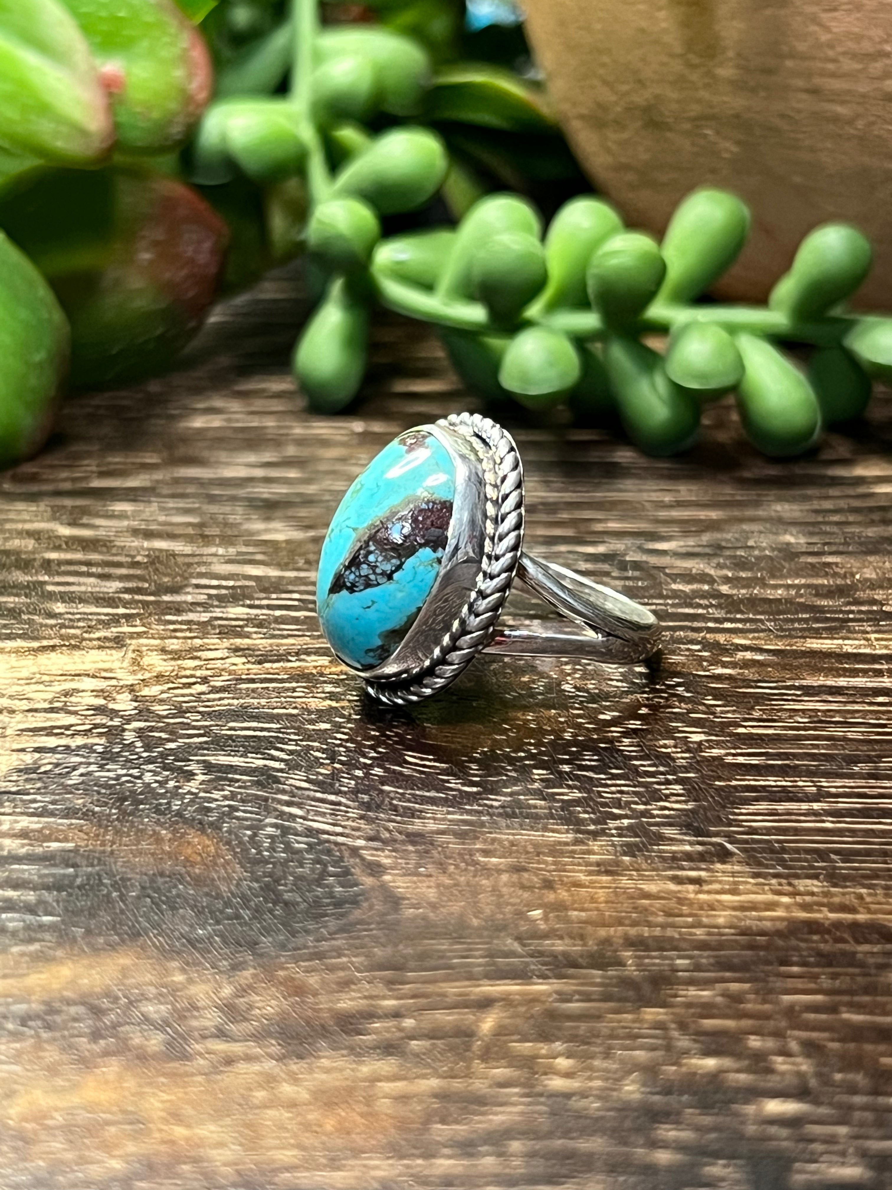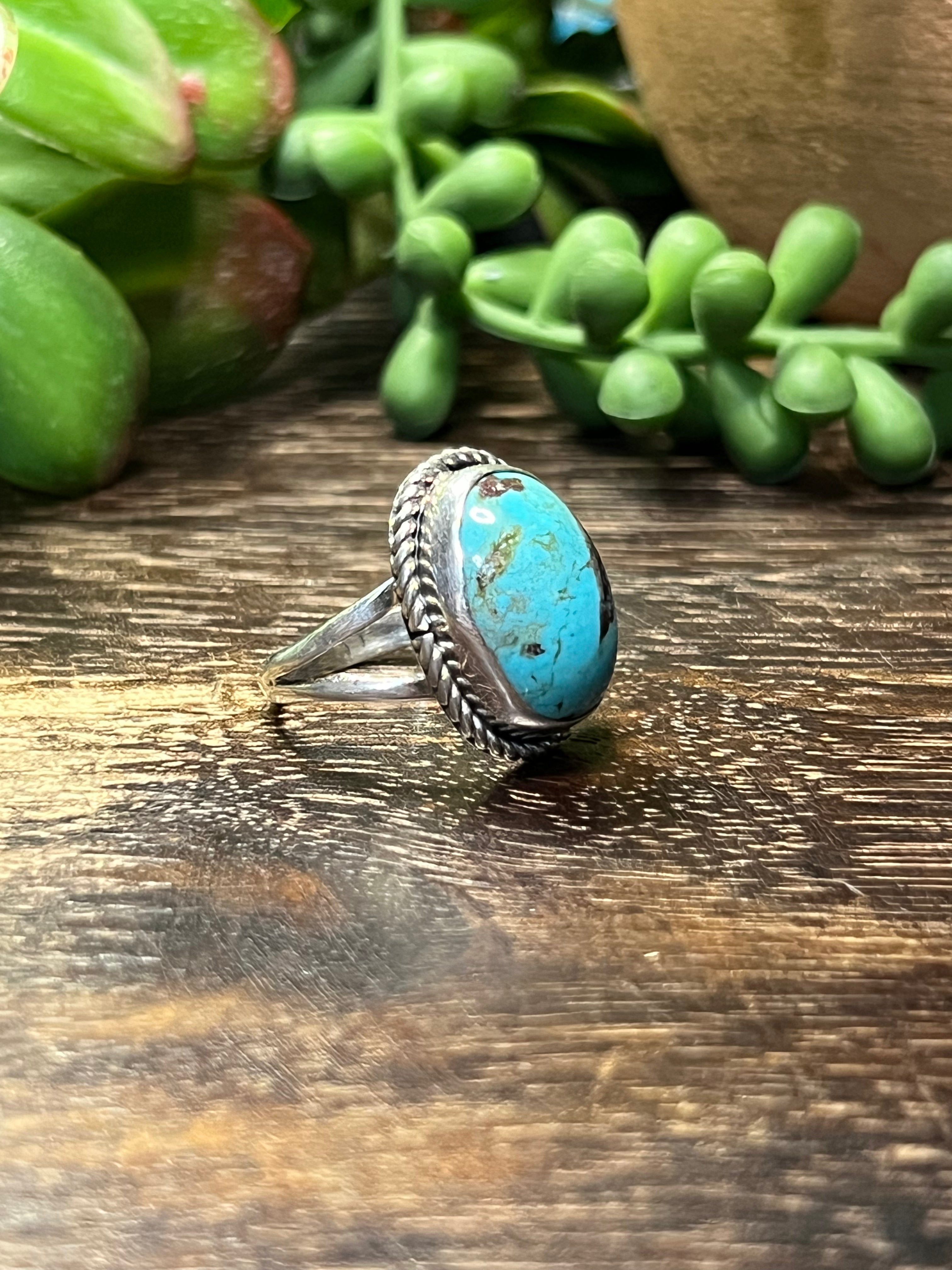 Eli Skeets Kingman Turquoise & Sterling Silver Ring Size 7.25