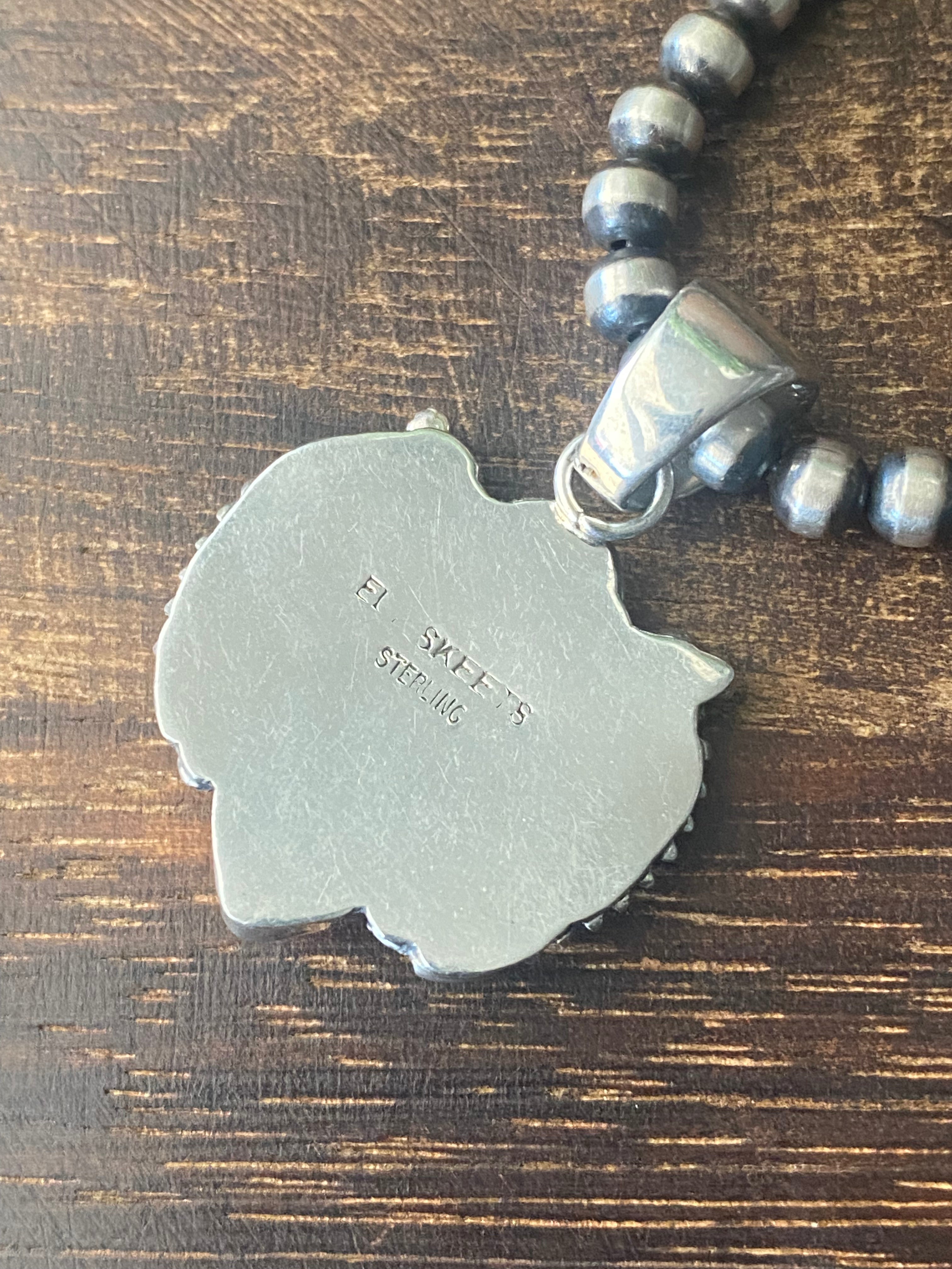 Eli Skeets Spiny Oys & Sterling Silver Pendant. It measures 1 5/8 inches long and 1 1/8 inches wide. Pendant Only! Signed by the artist and stamped sterling silver.