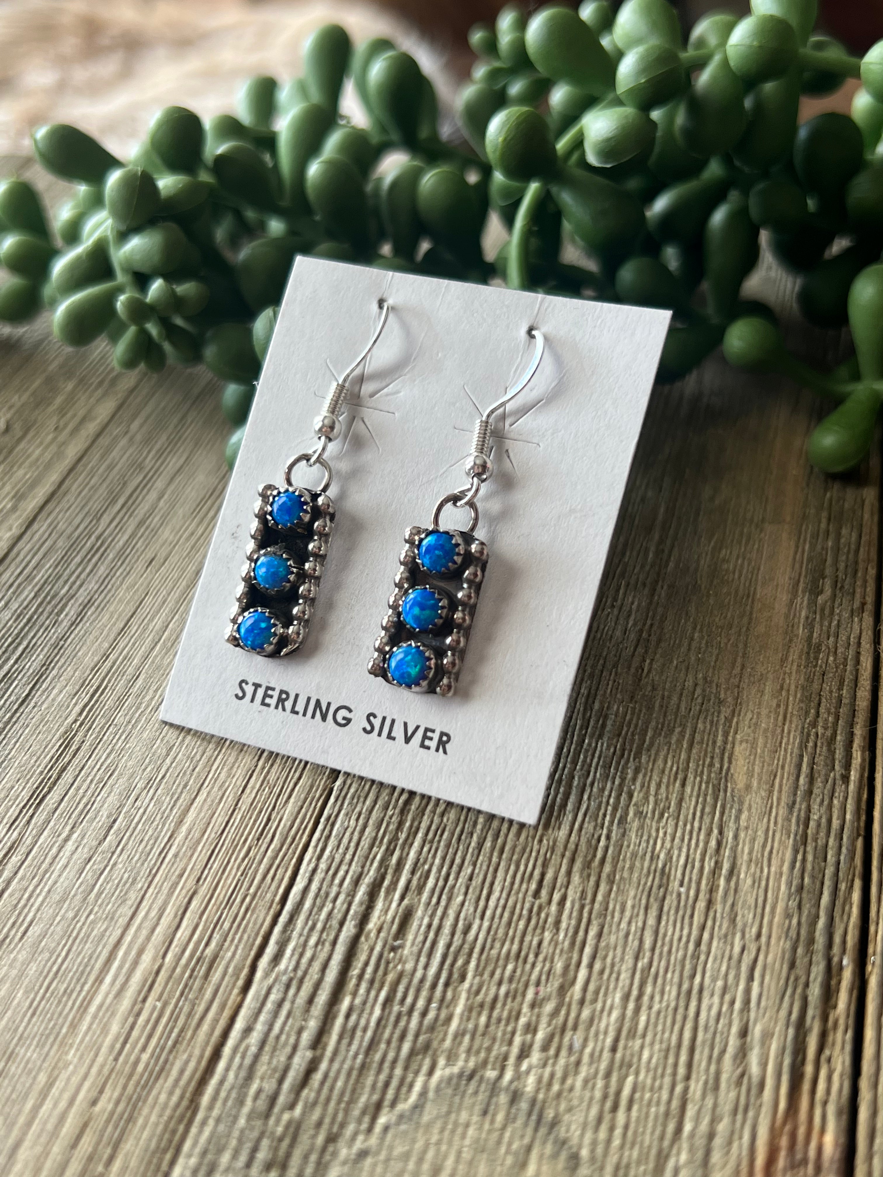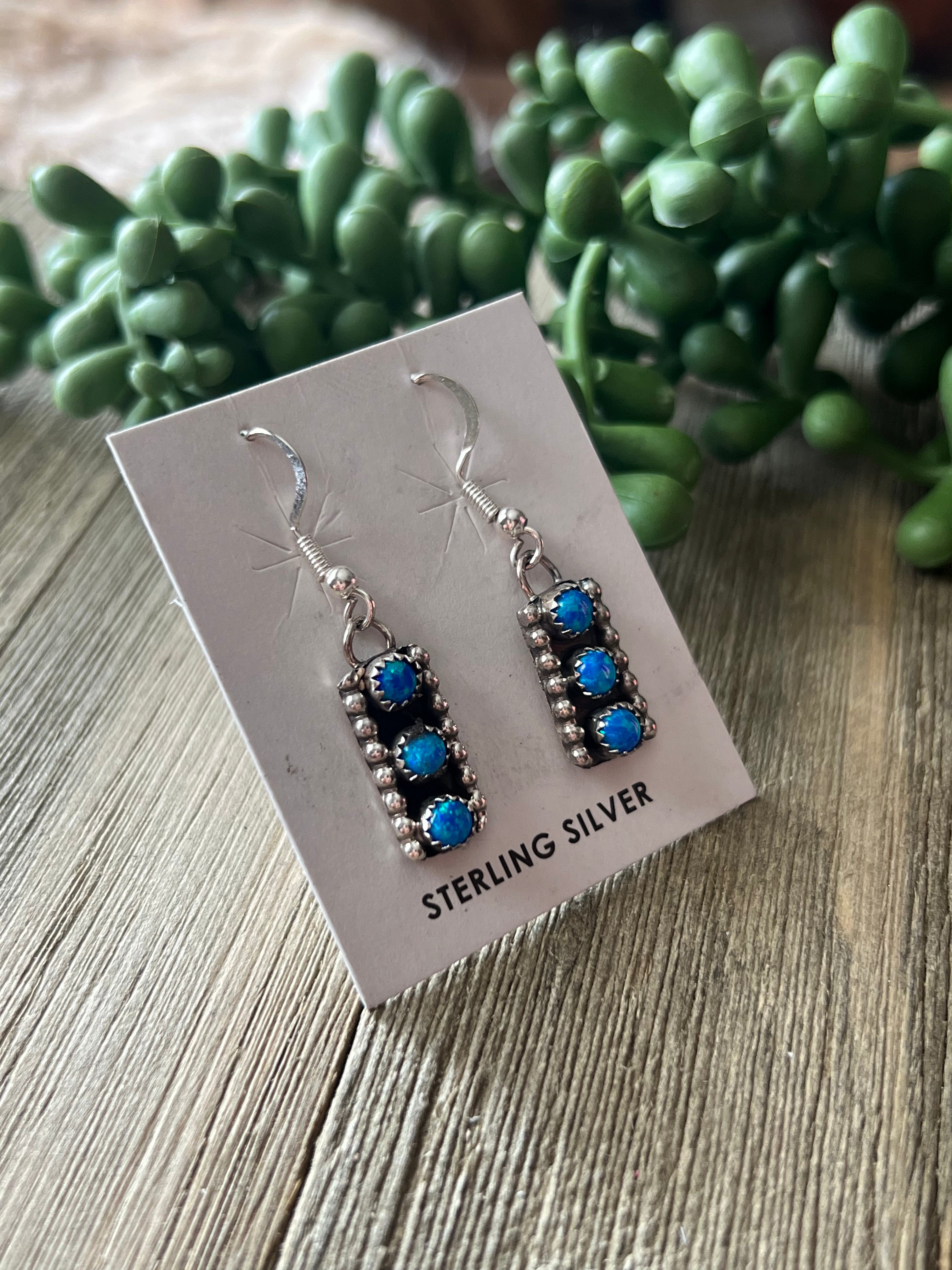 Ester White Opal (Man Made) & Sterling Silver Dangle Shadowbox Earrings