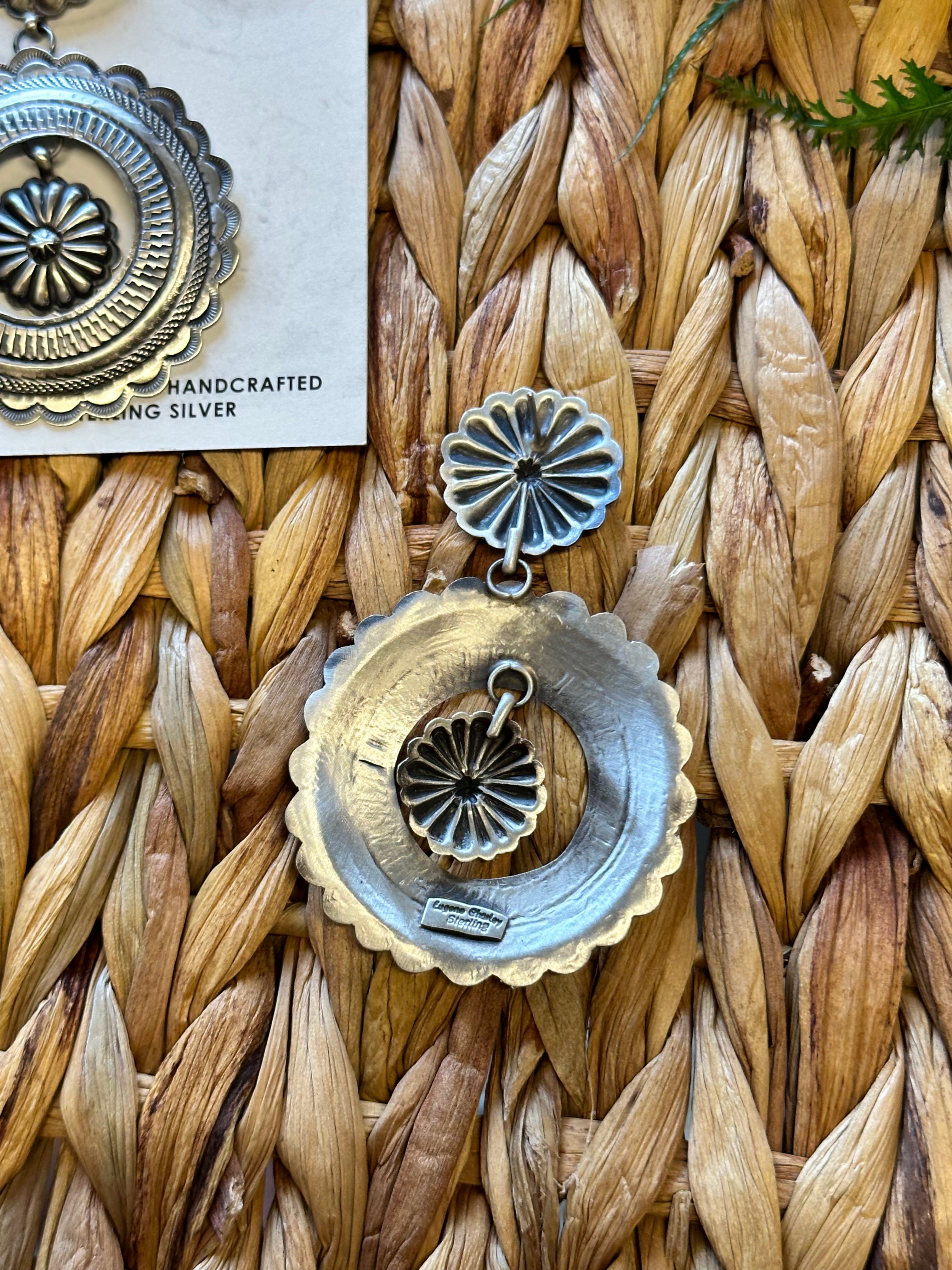 Beautiful post earrings, perfect for your everyday wear. Eugene Charley Sterling Silver Post Dangle Earrings. It measures 3 1/4 inches long and 2 1/8 inches wide.