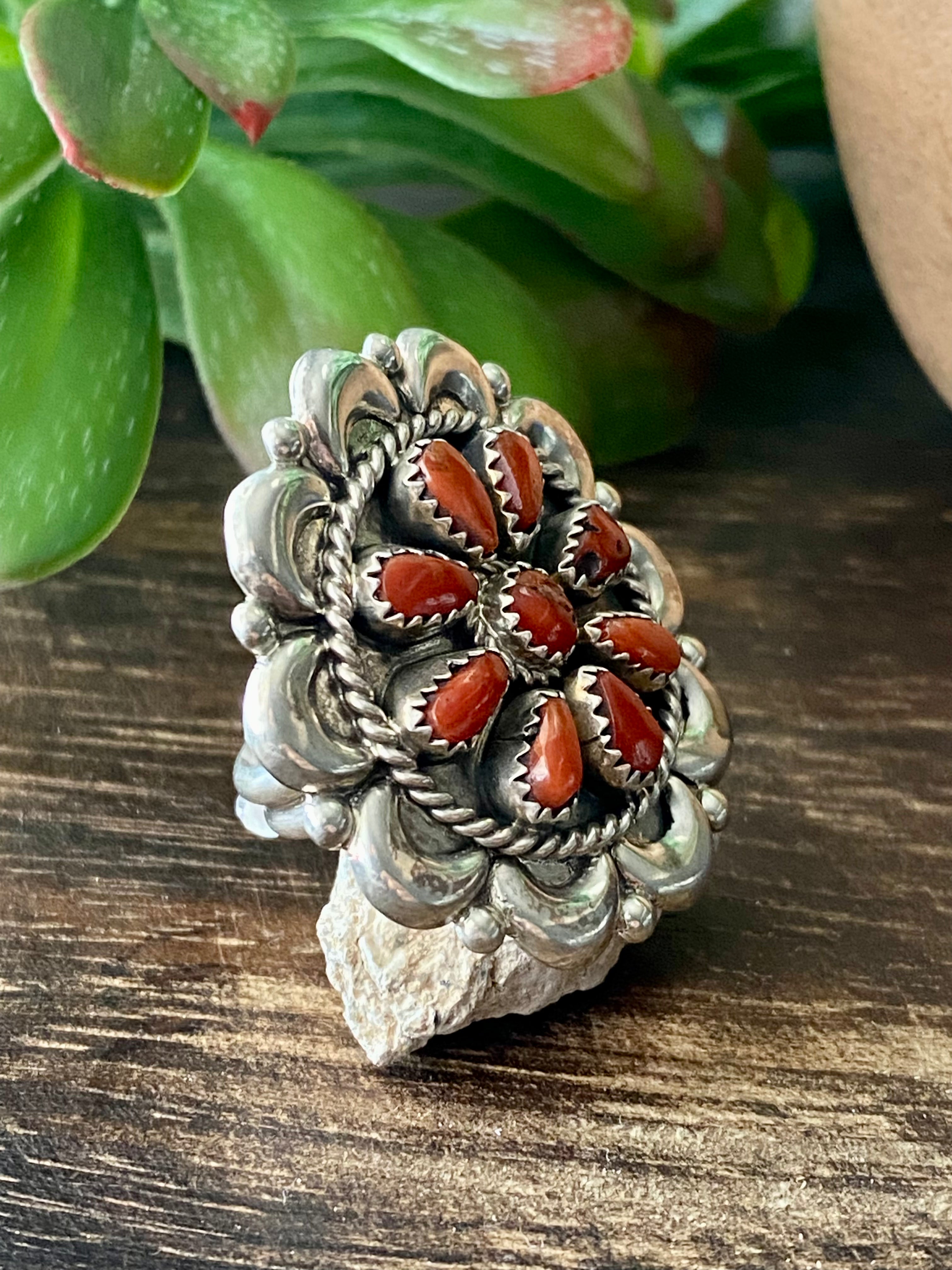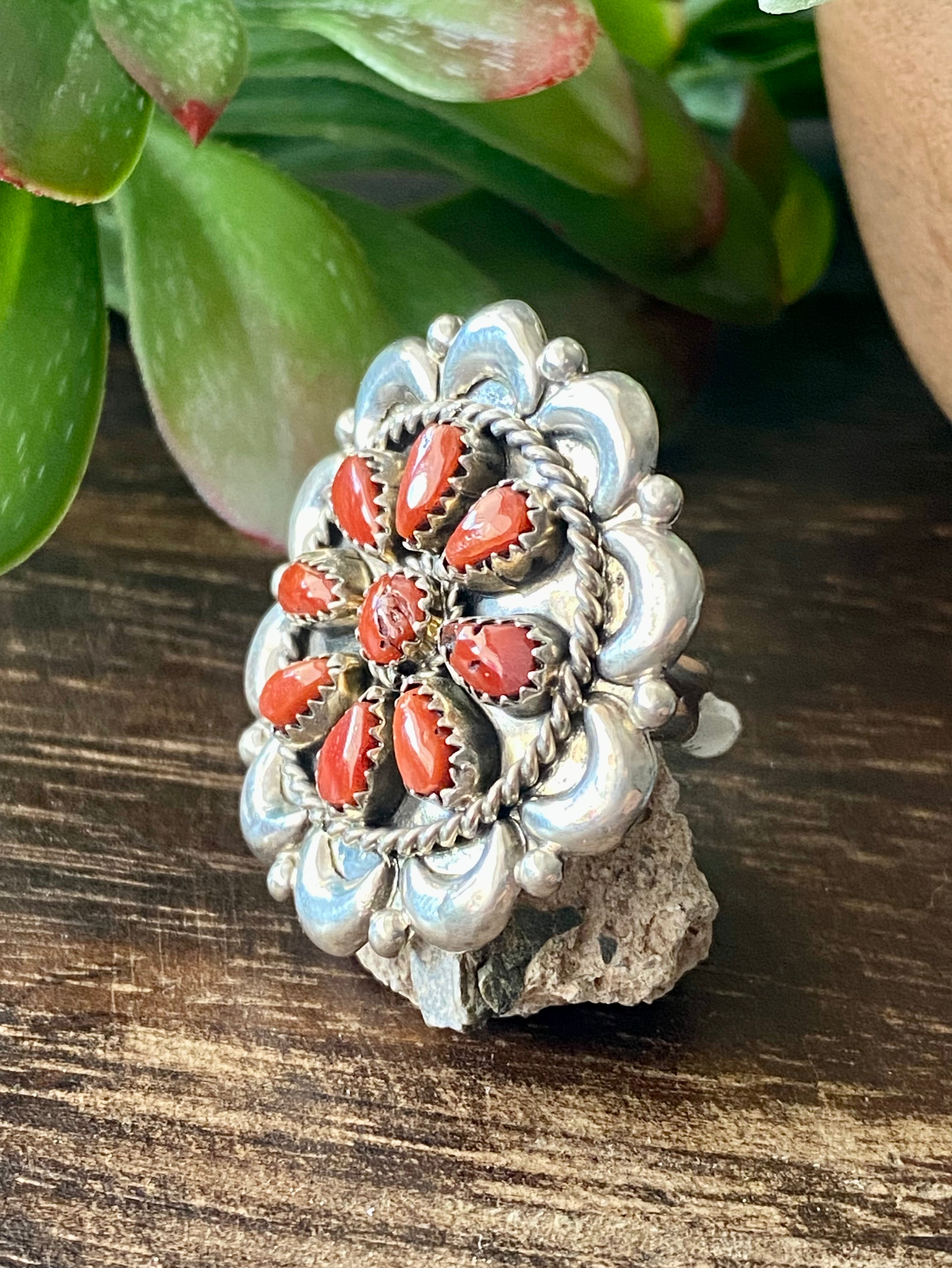 Eunis Wilson Coral & Sterling Silver Cluster Ring Size 7.25