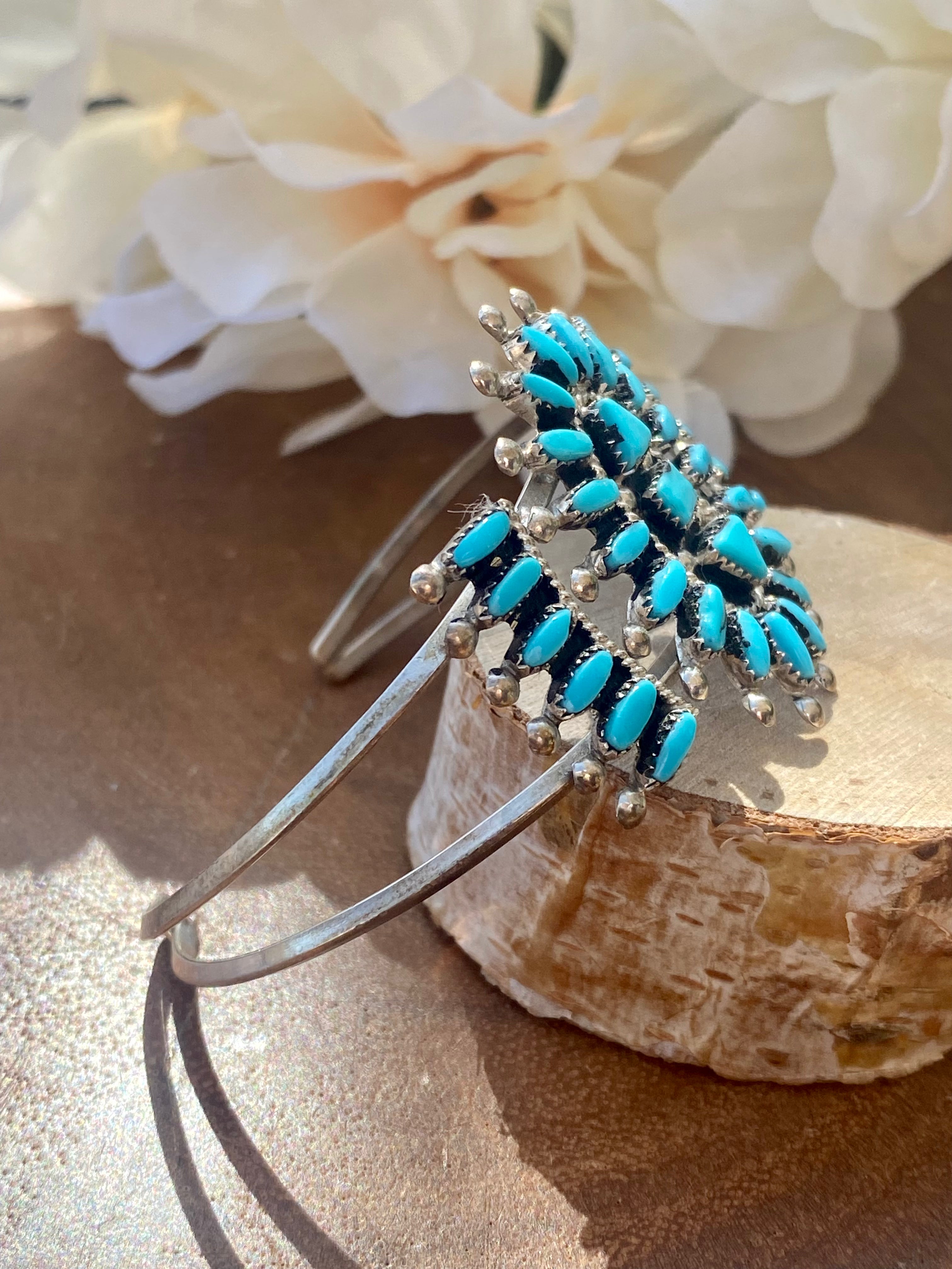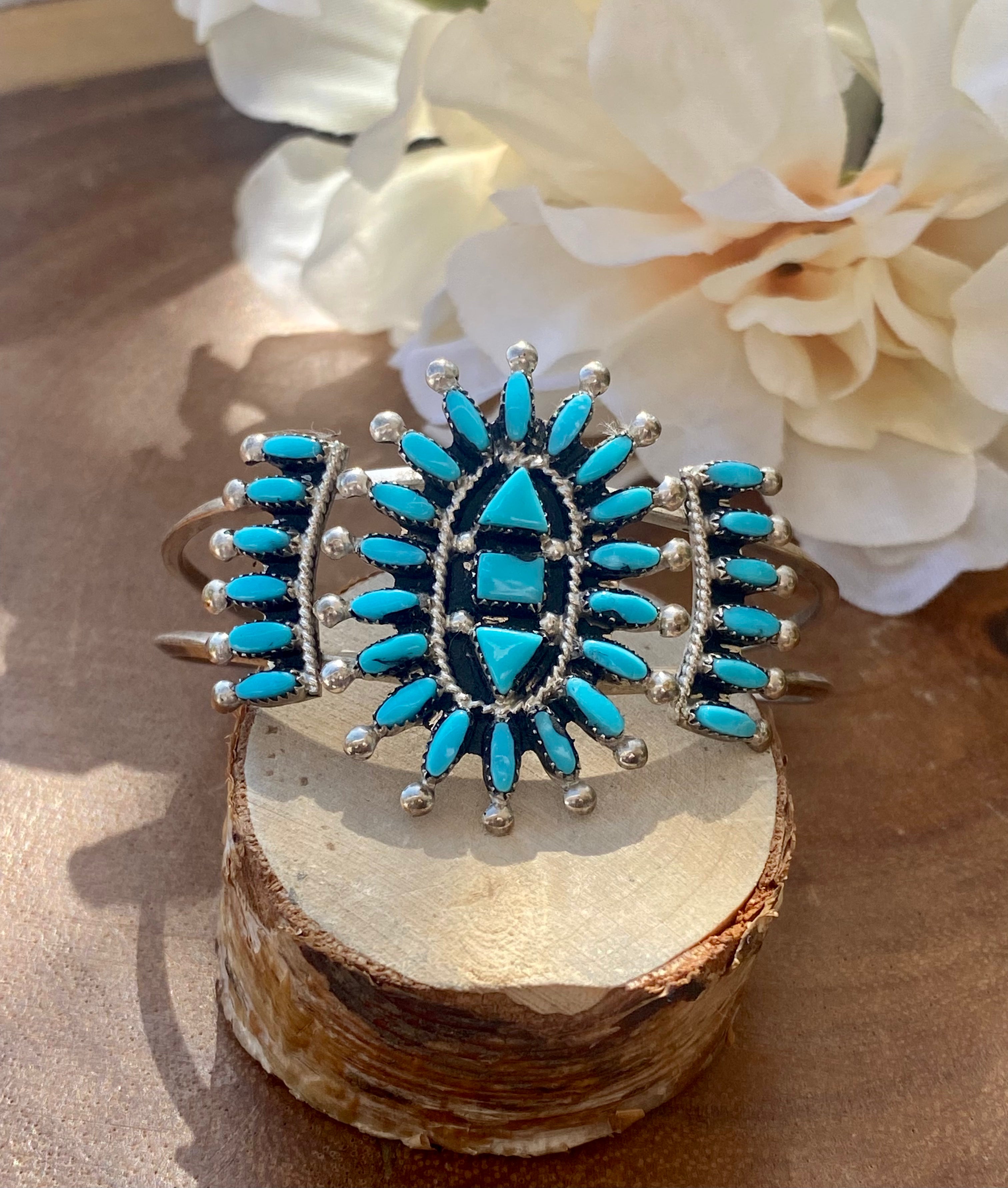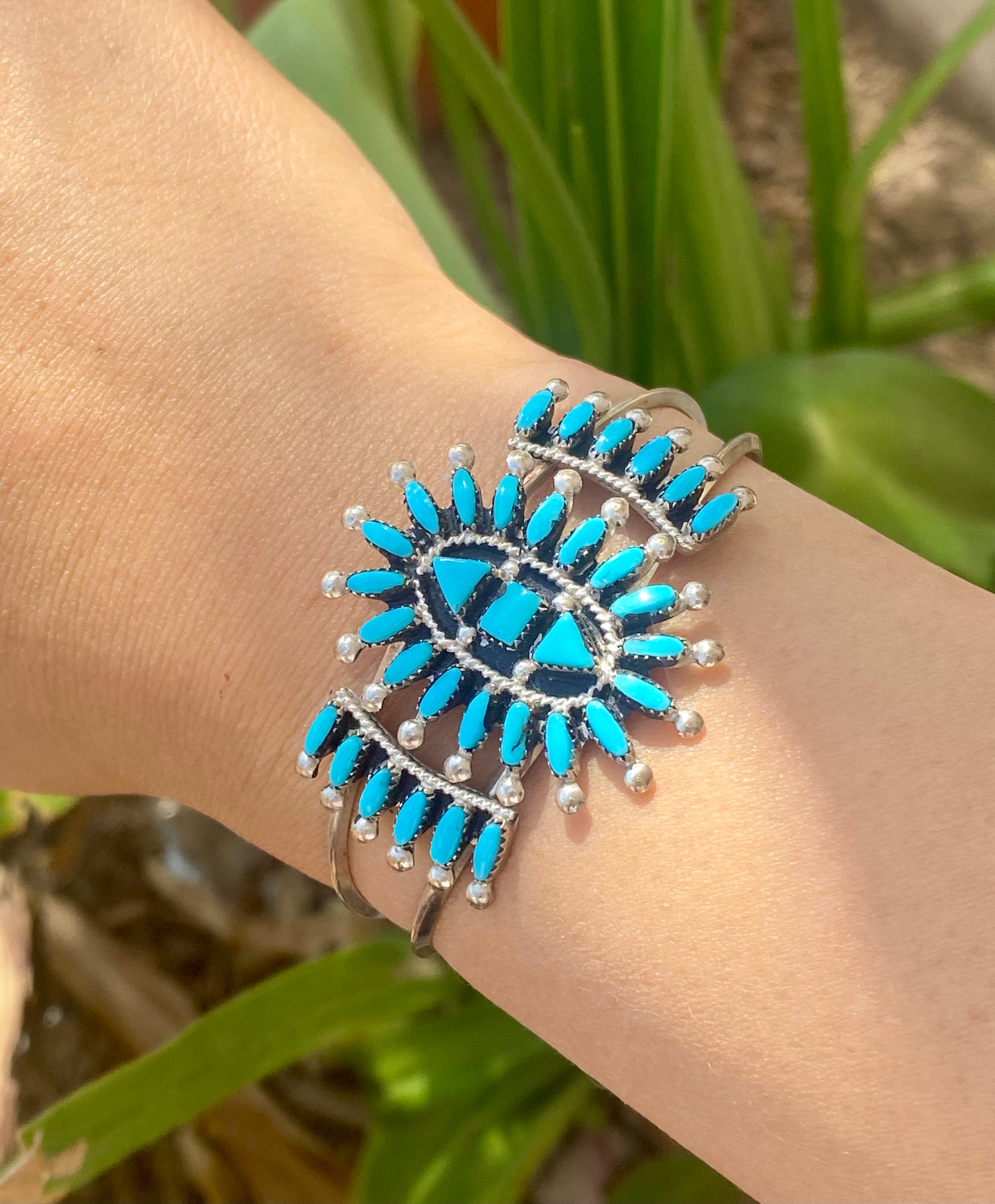 Evonne Hustitto Zuni Turquoise & Sterling Silver Needlepoint Cluster Cuff Bracelet