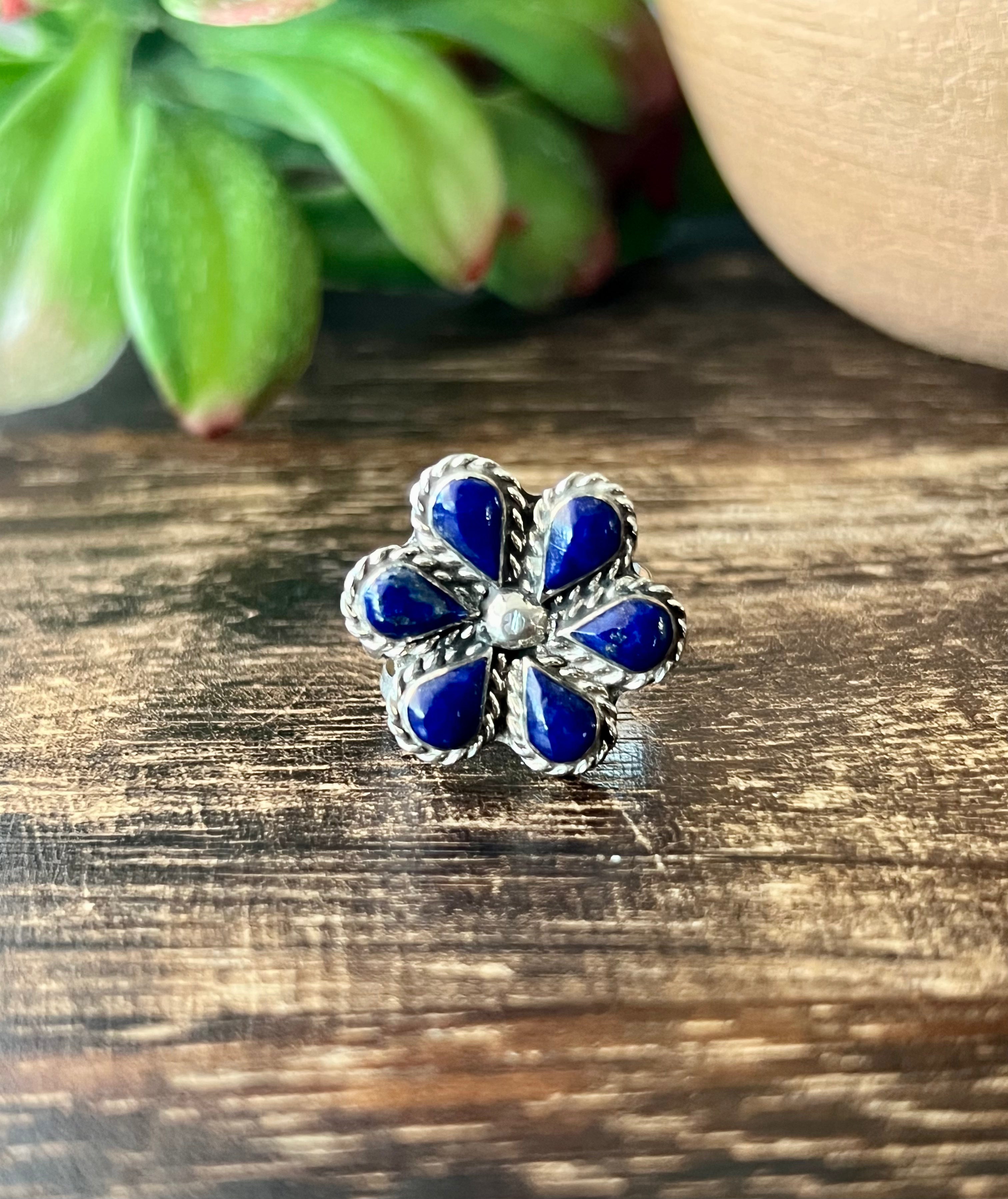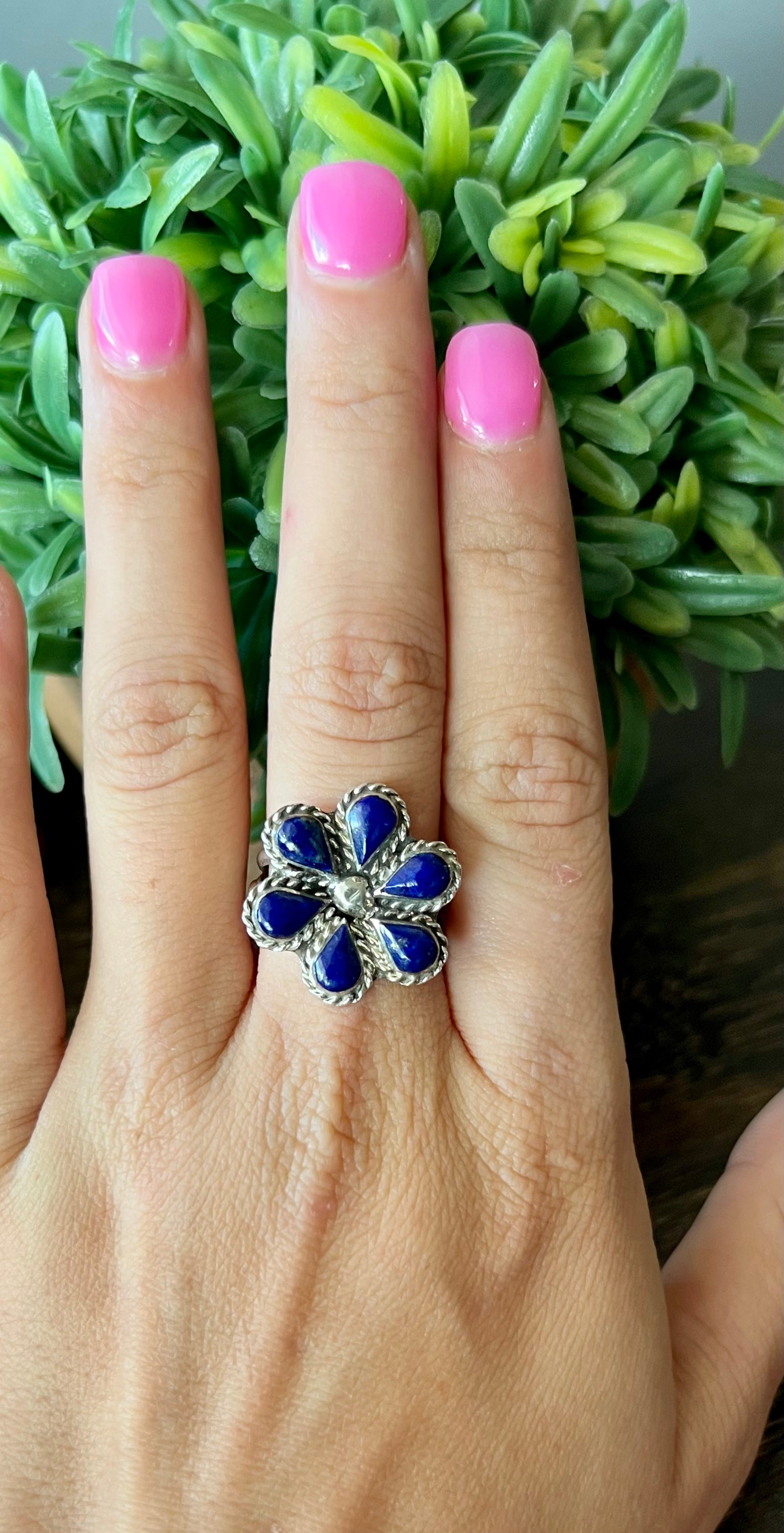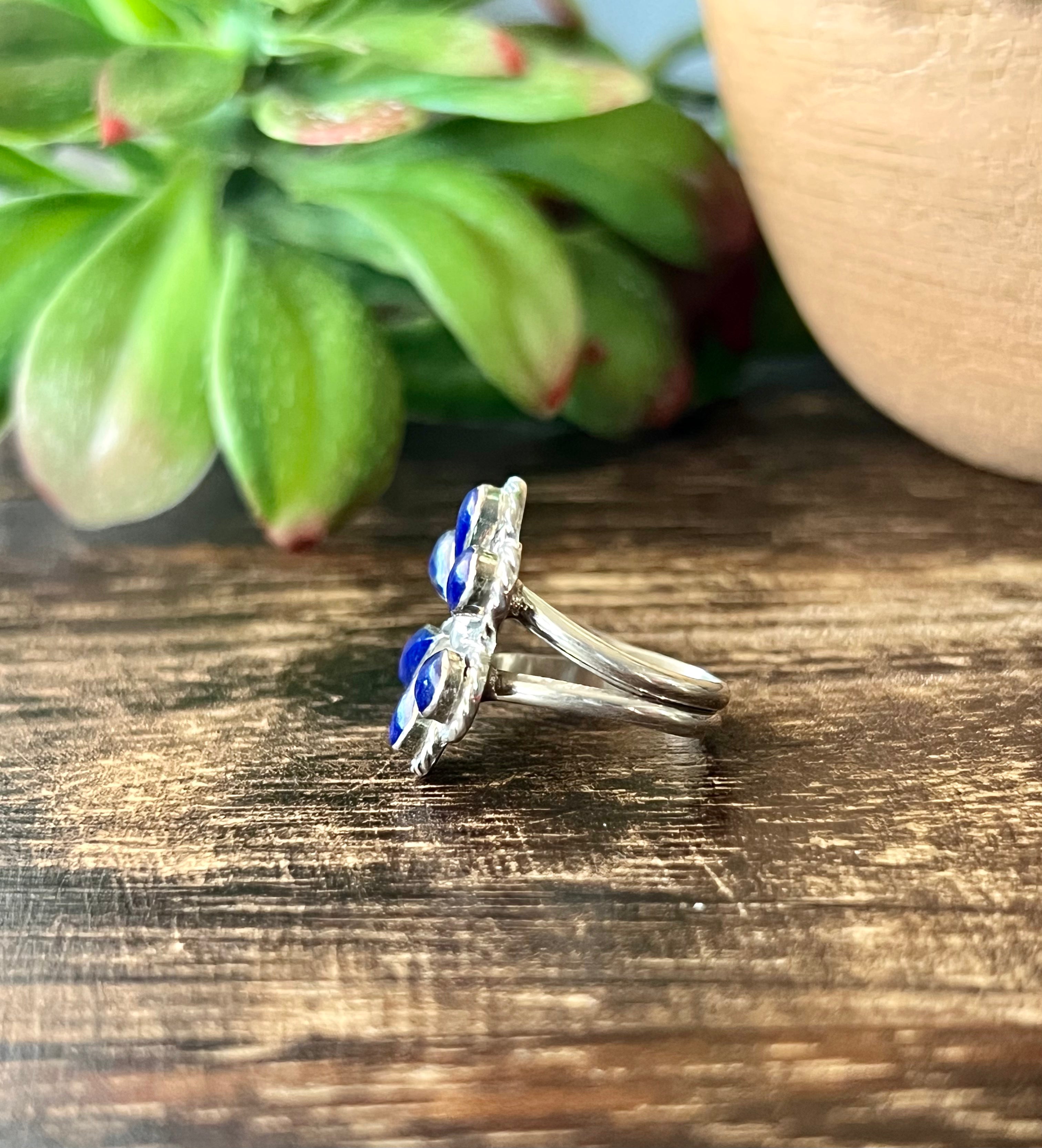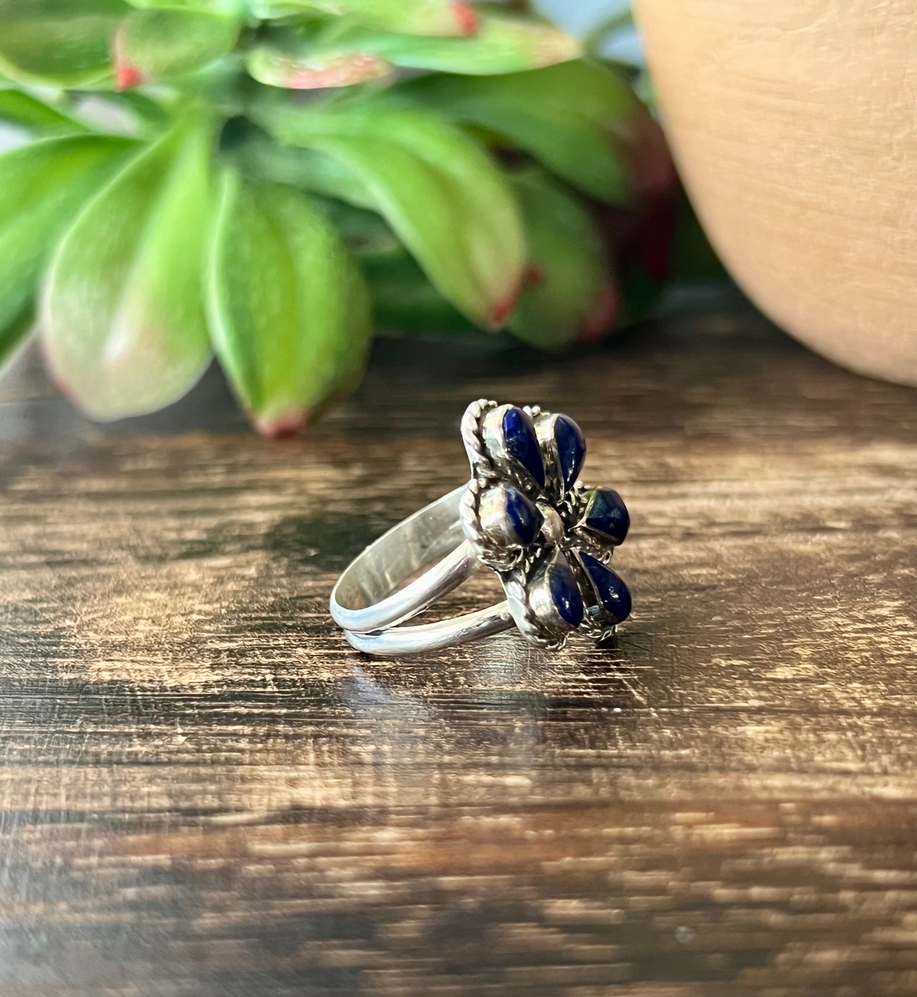 Floria Shetima Lapis & Sterling Silver Cluster Ring. It measures just under 7/8 of an inch round. Stones may differ due to natural stones.