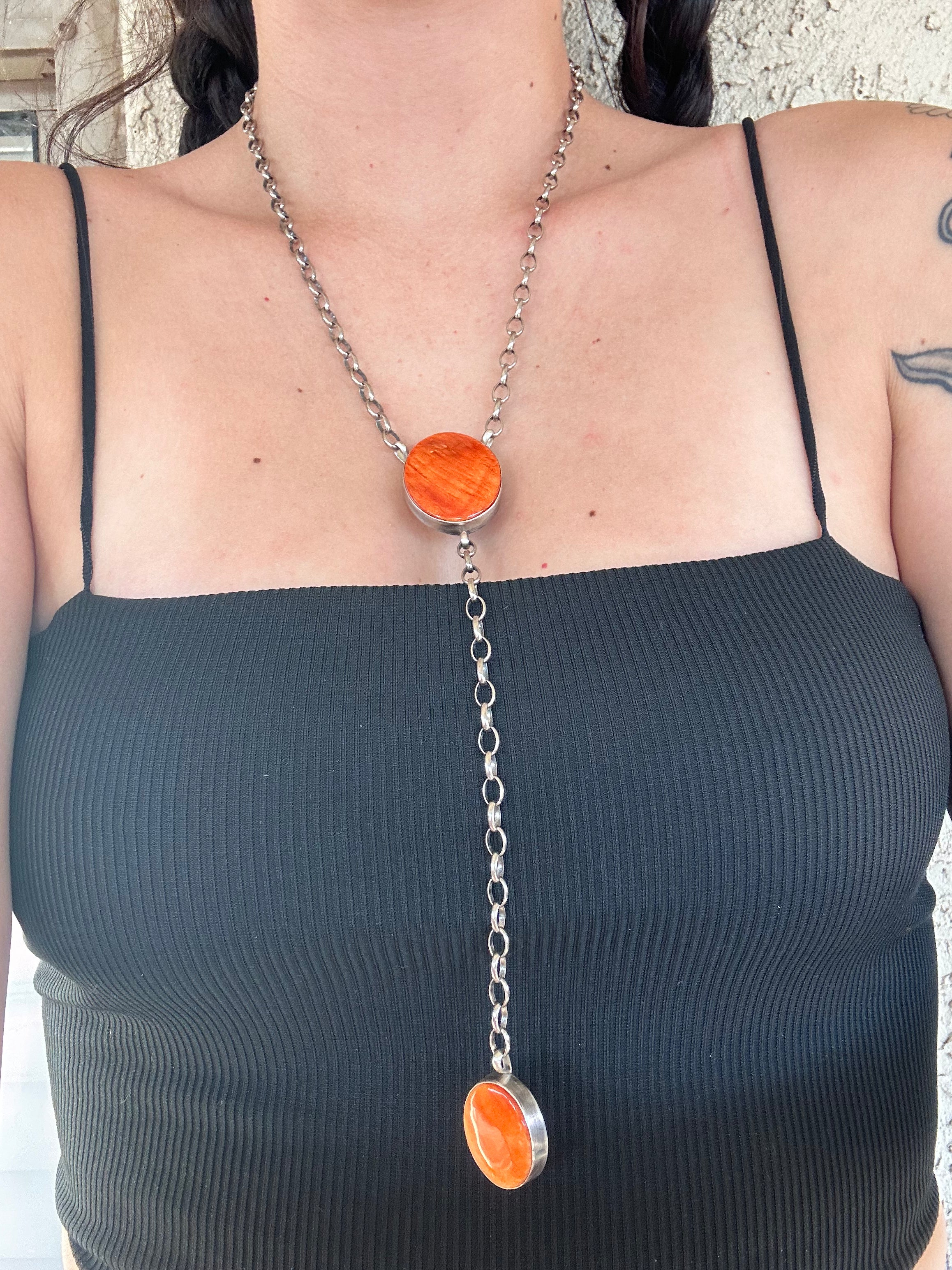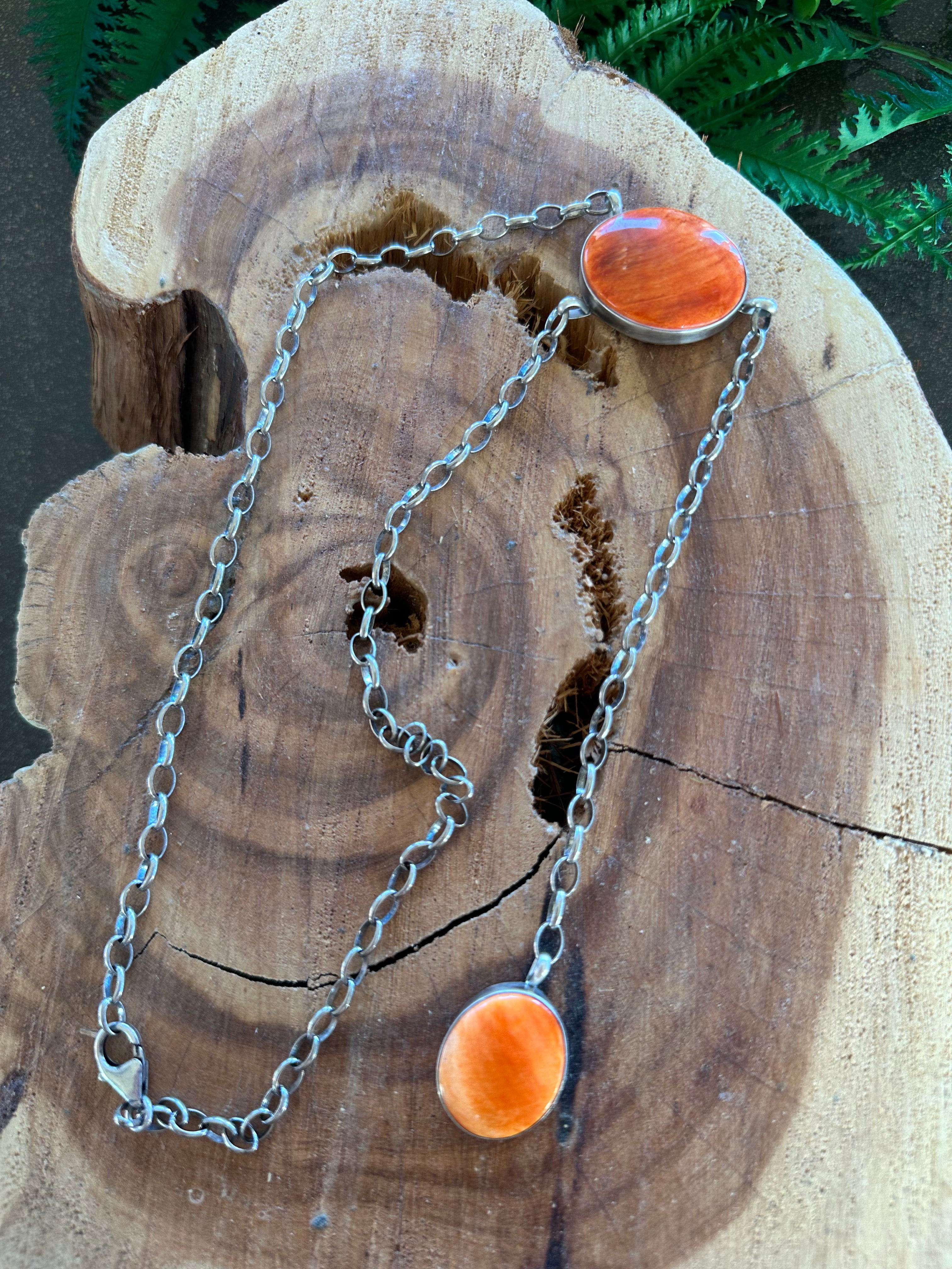 Fred Martinez Spiny Oyster & Sterling Silver Drop Necklace