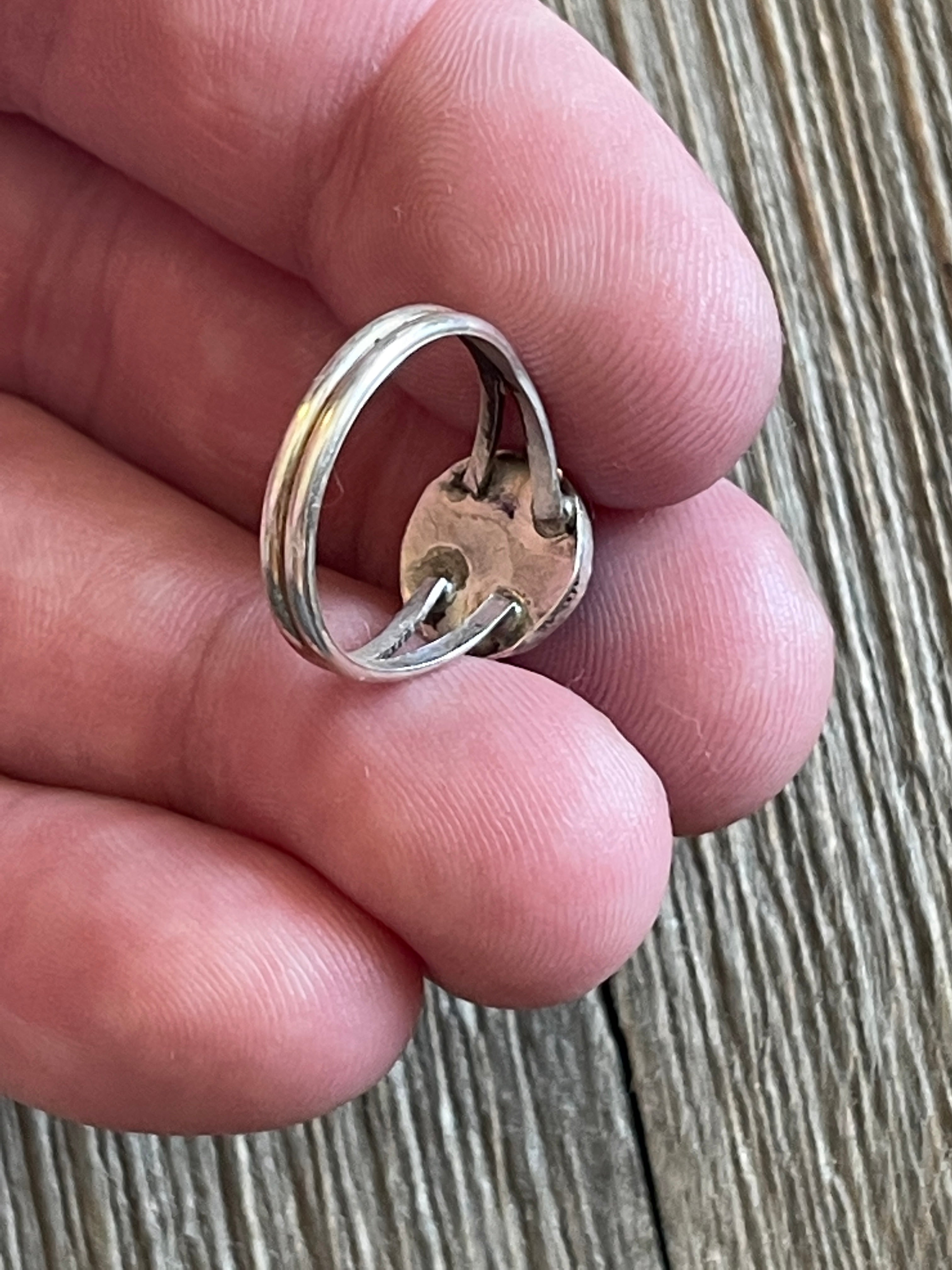 Freda Martinez Sterling Silver Ring Size 7.5. It measures 3/8 of an inch round.