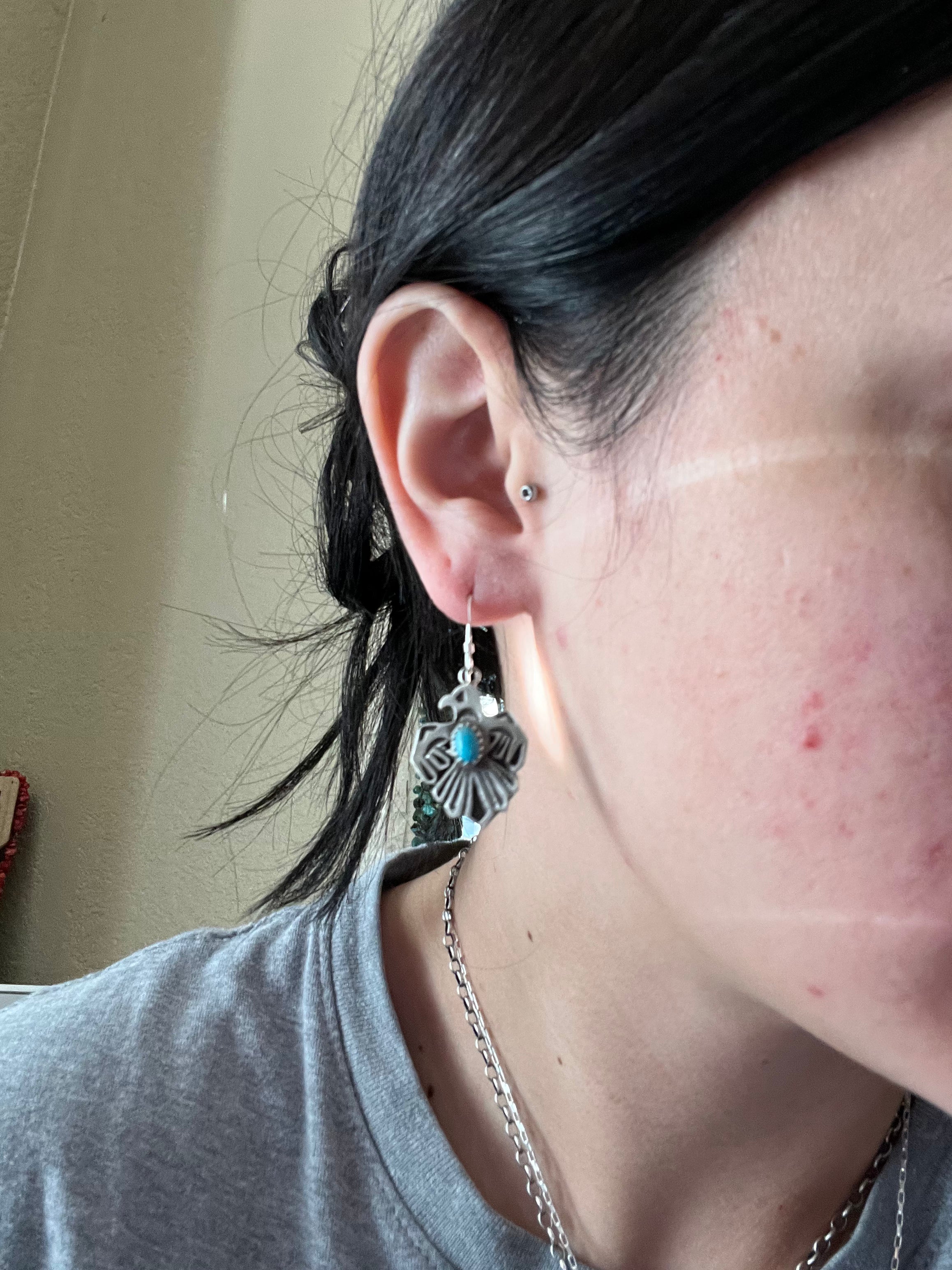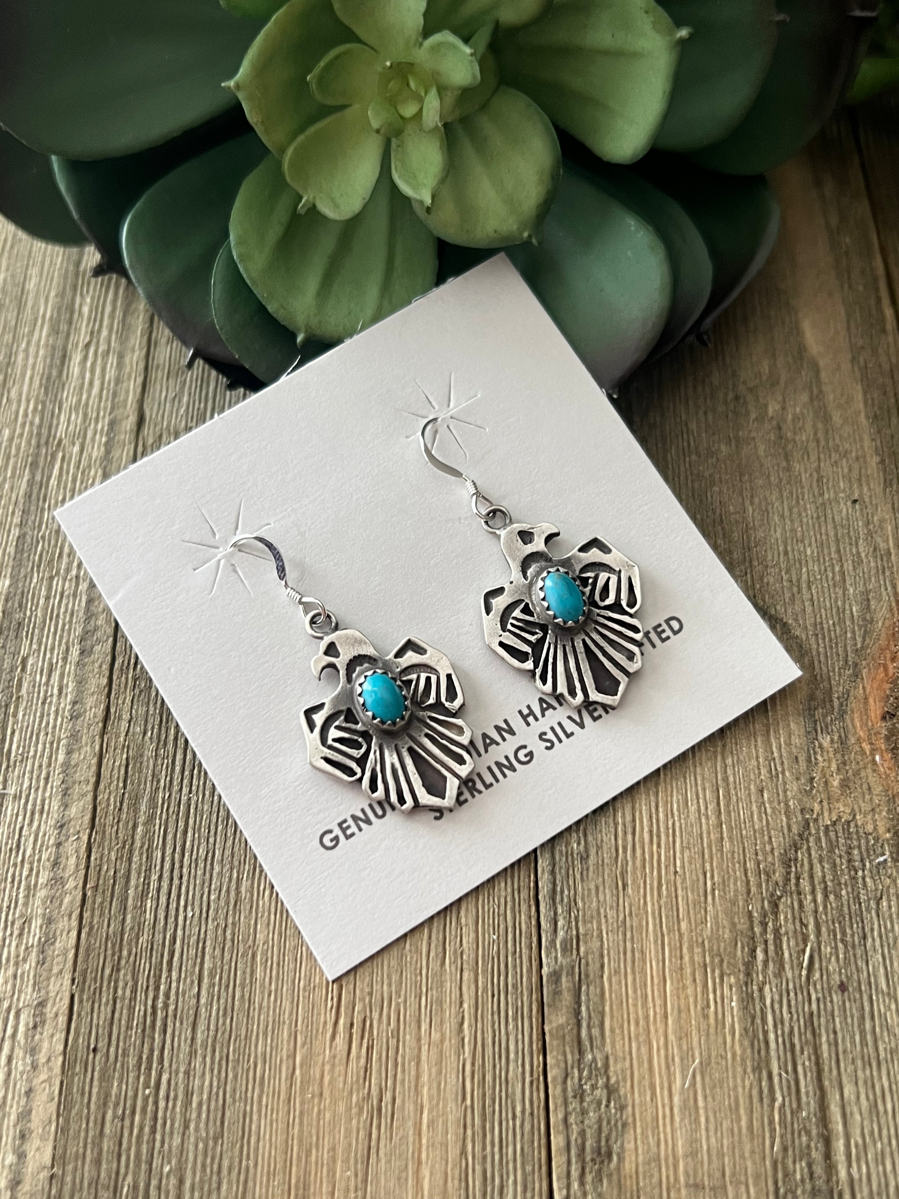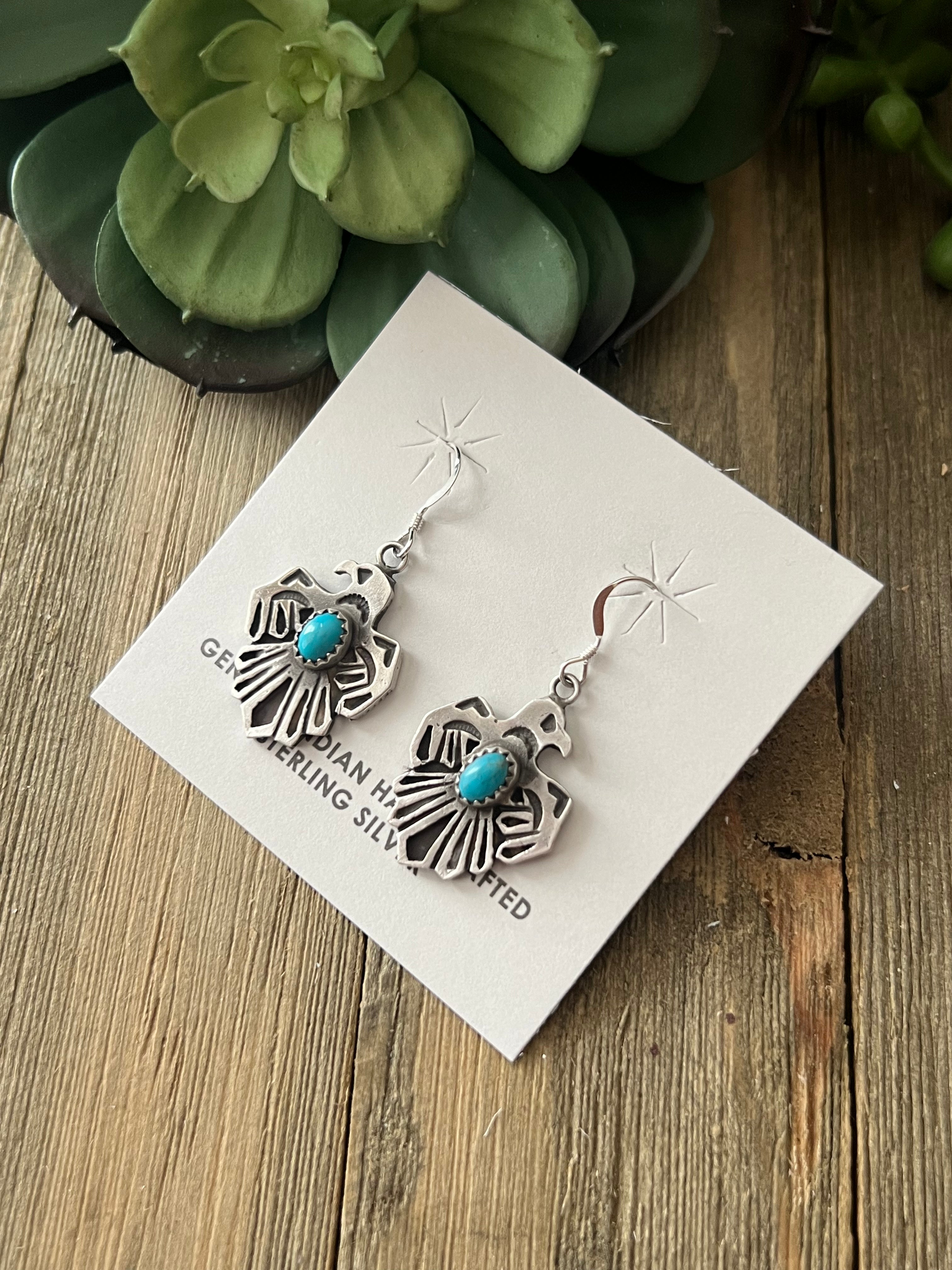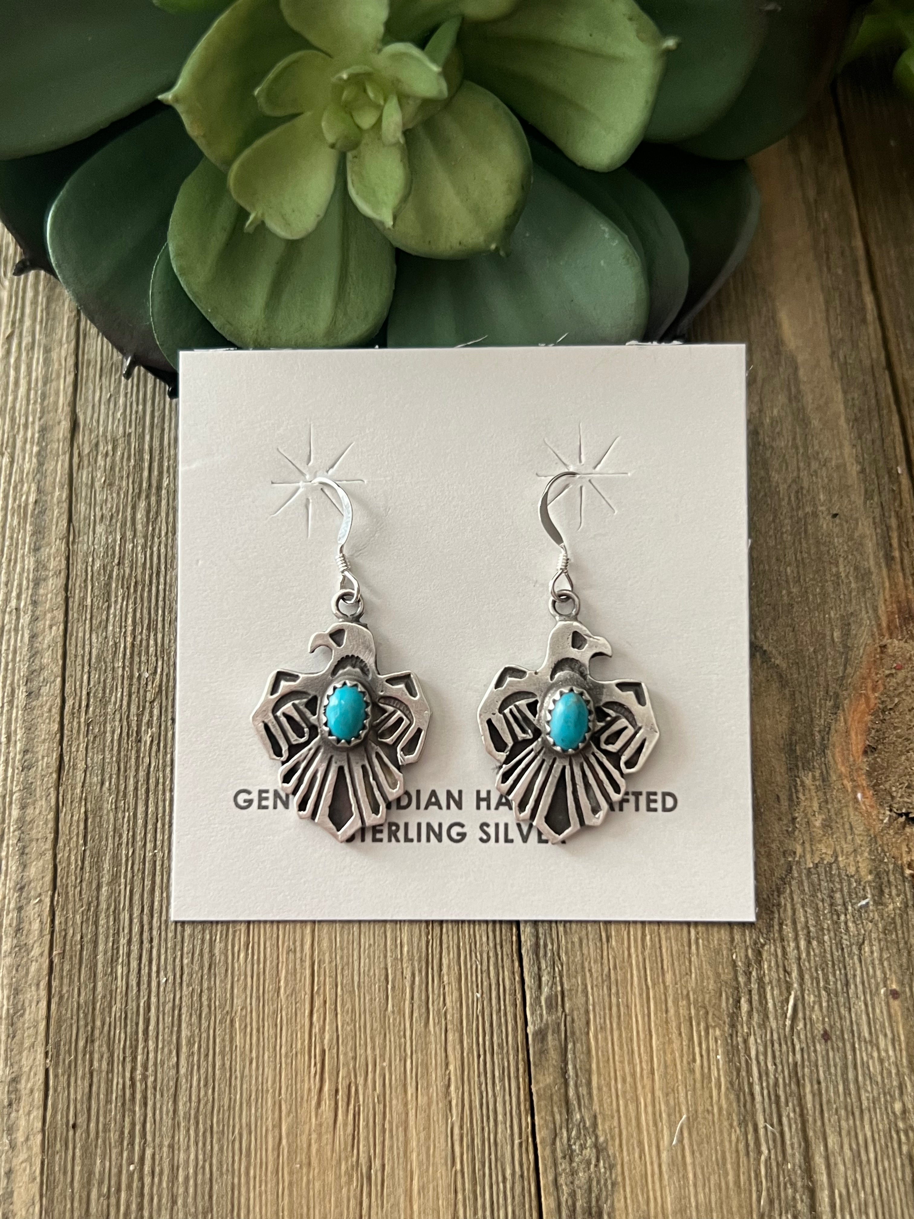 Genevieve Francisco Kingman Turquoise & Sterling Silver Thunderbird Dangle Earrings