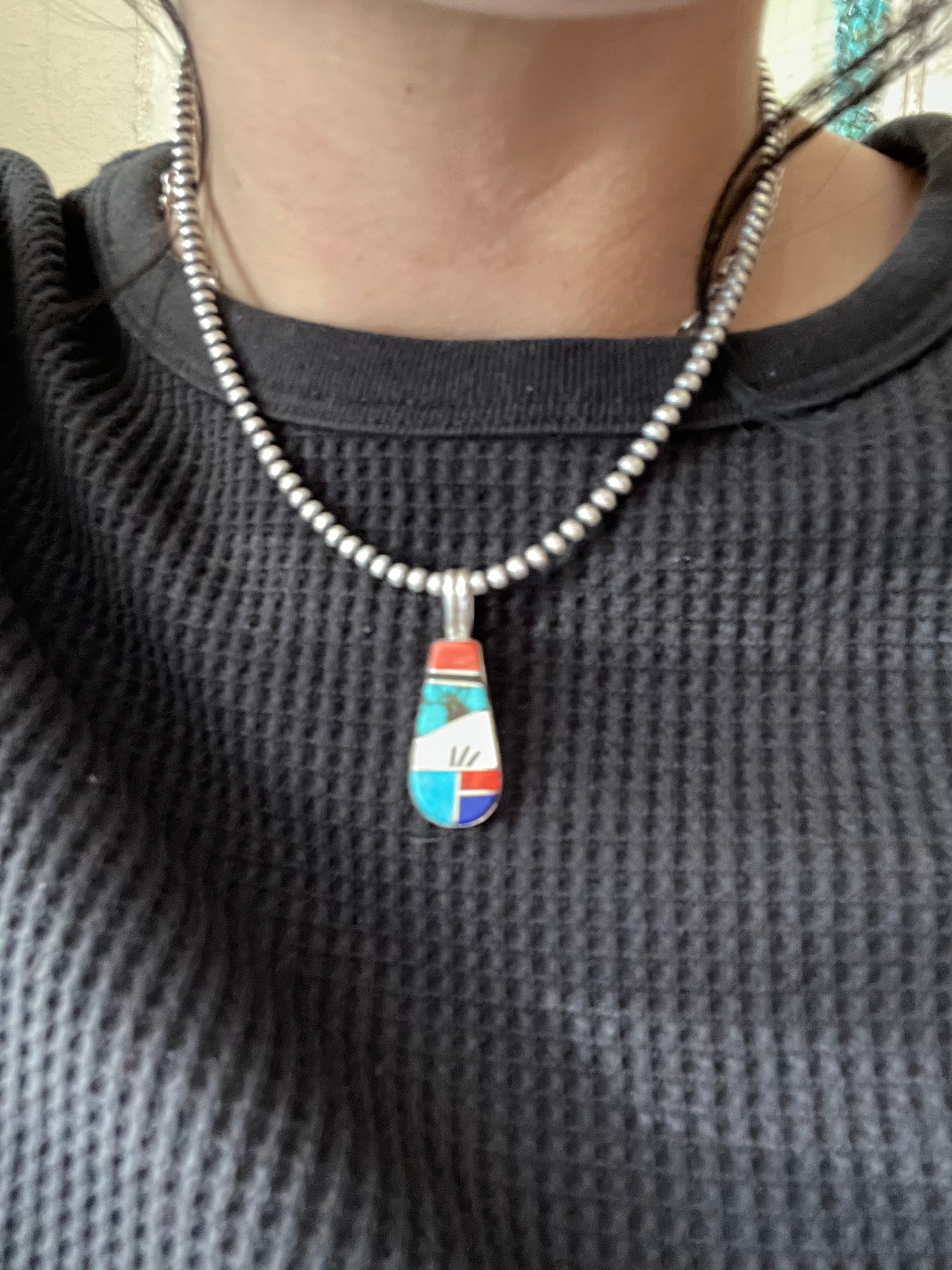 Germane Smith Multi Stone & Sterling Silver Inlay Pendant
