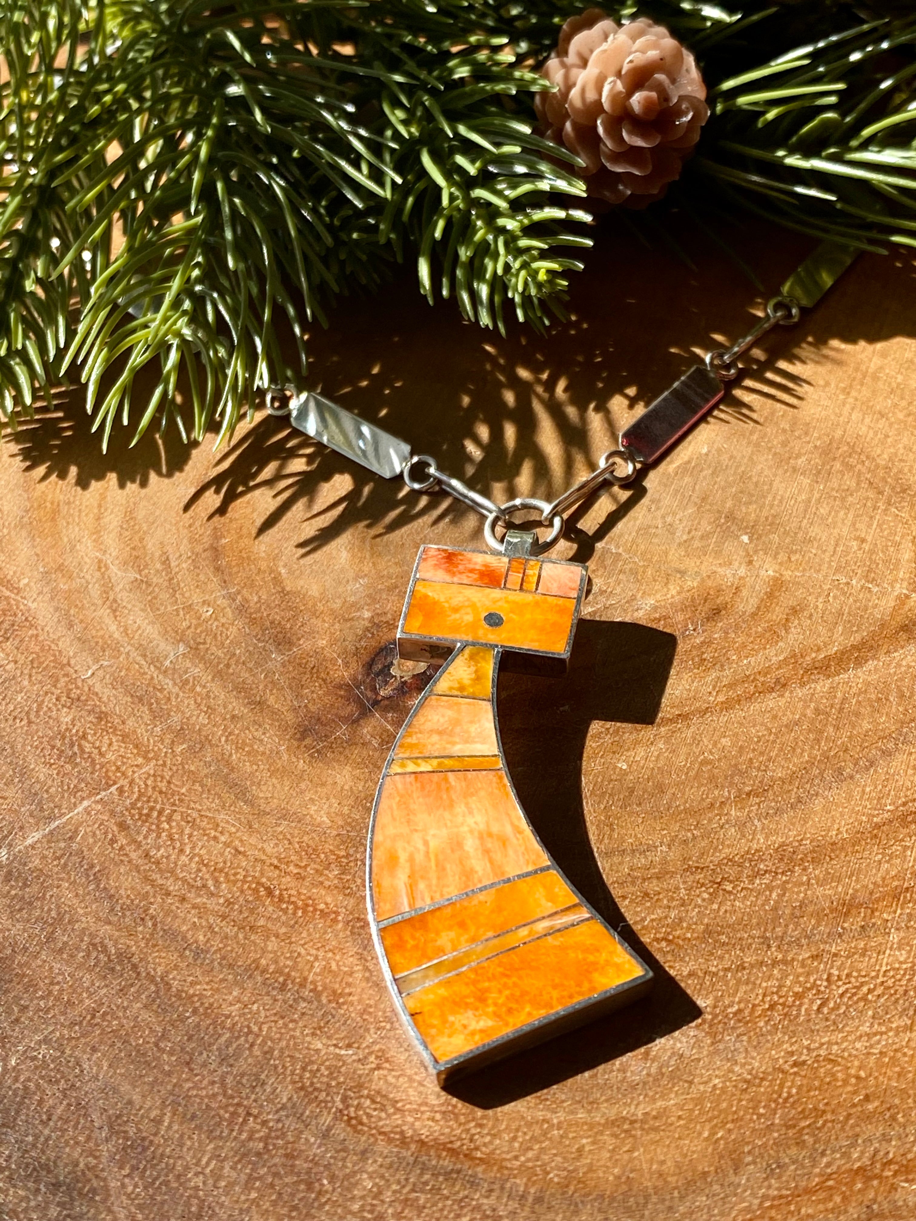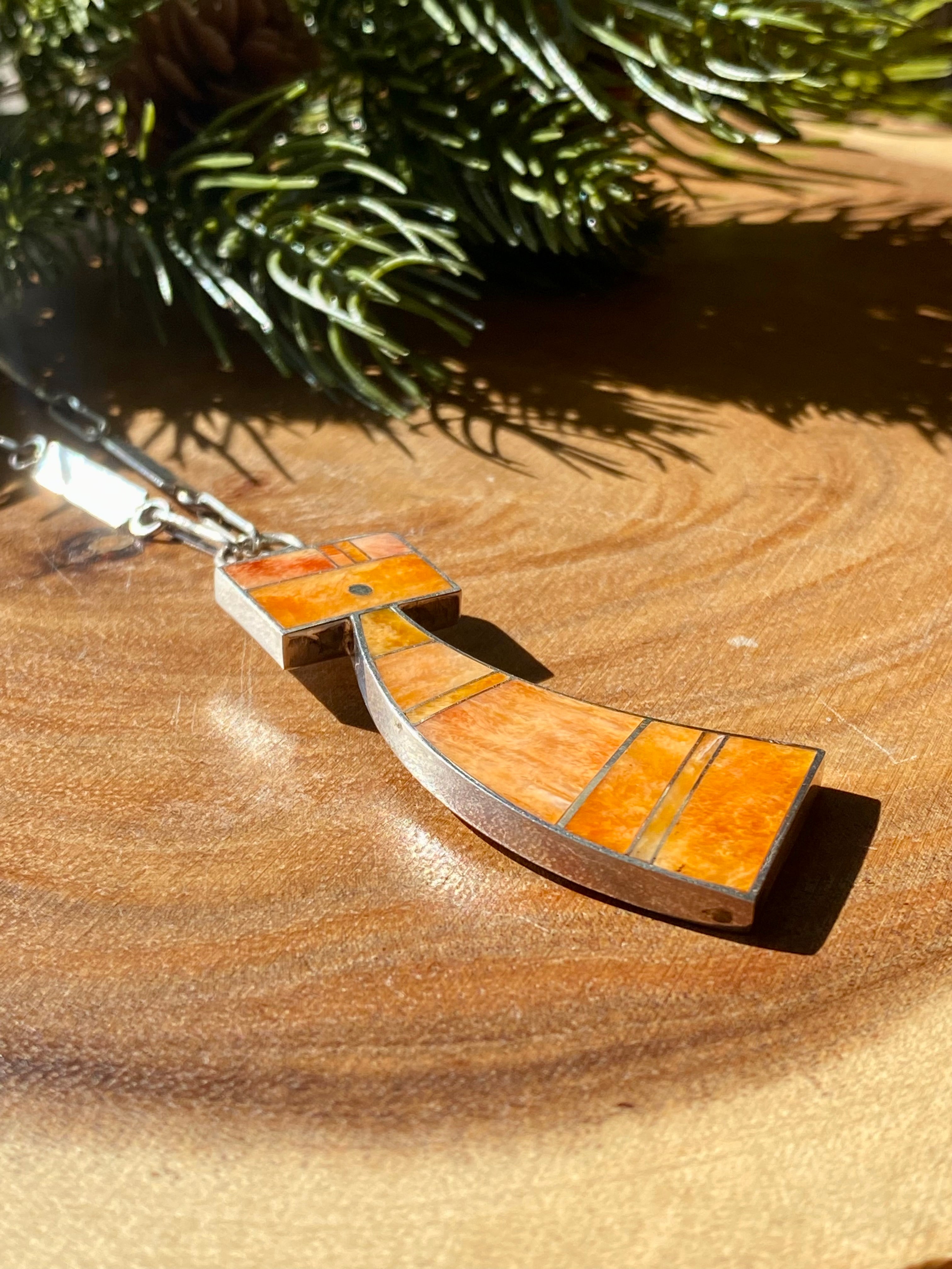 Harold Smith Spiny Oyster & Sterling Silver Inlay Necklace