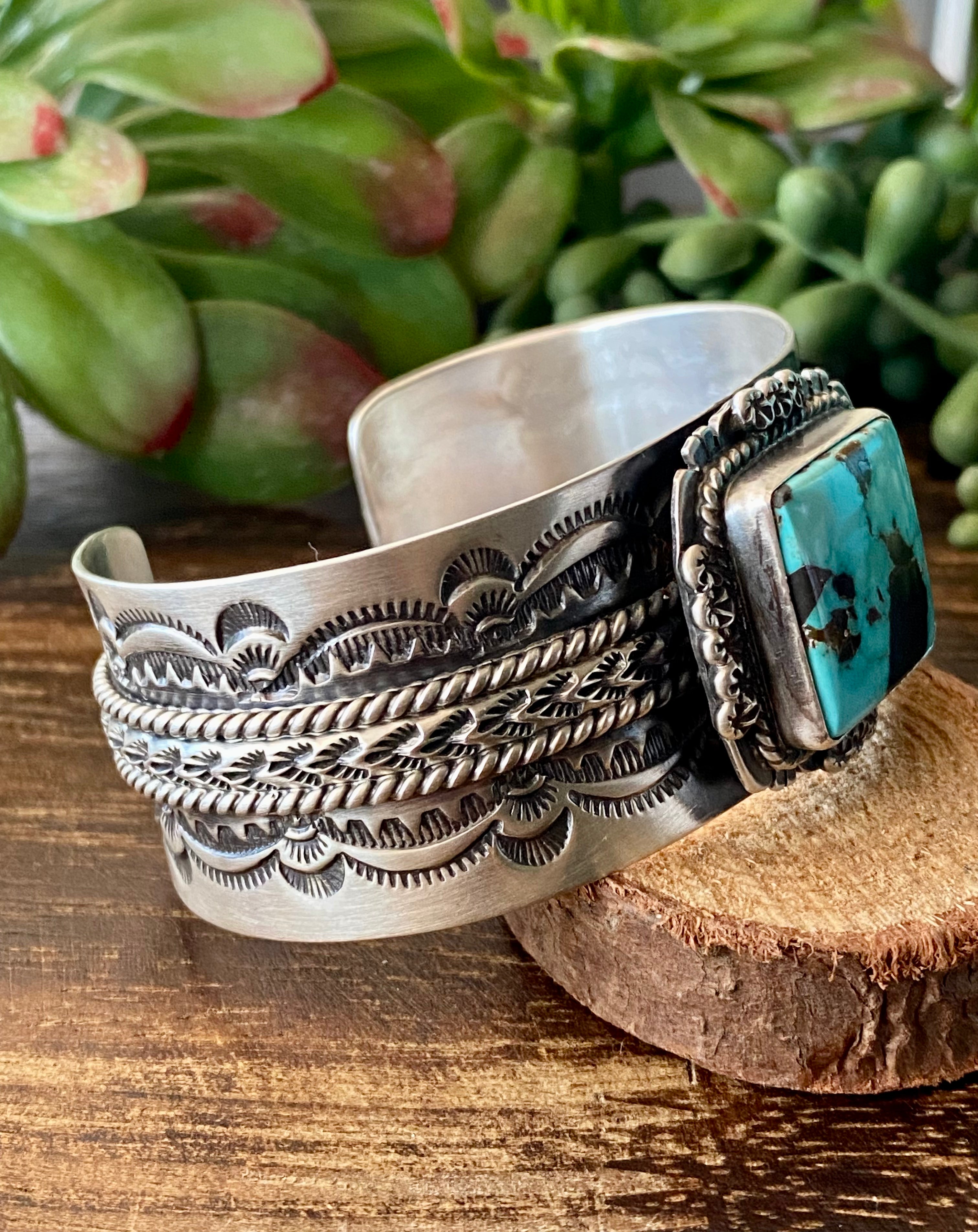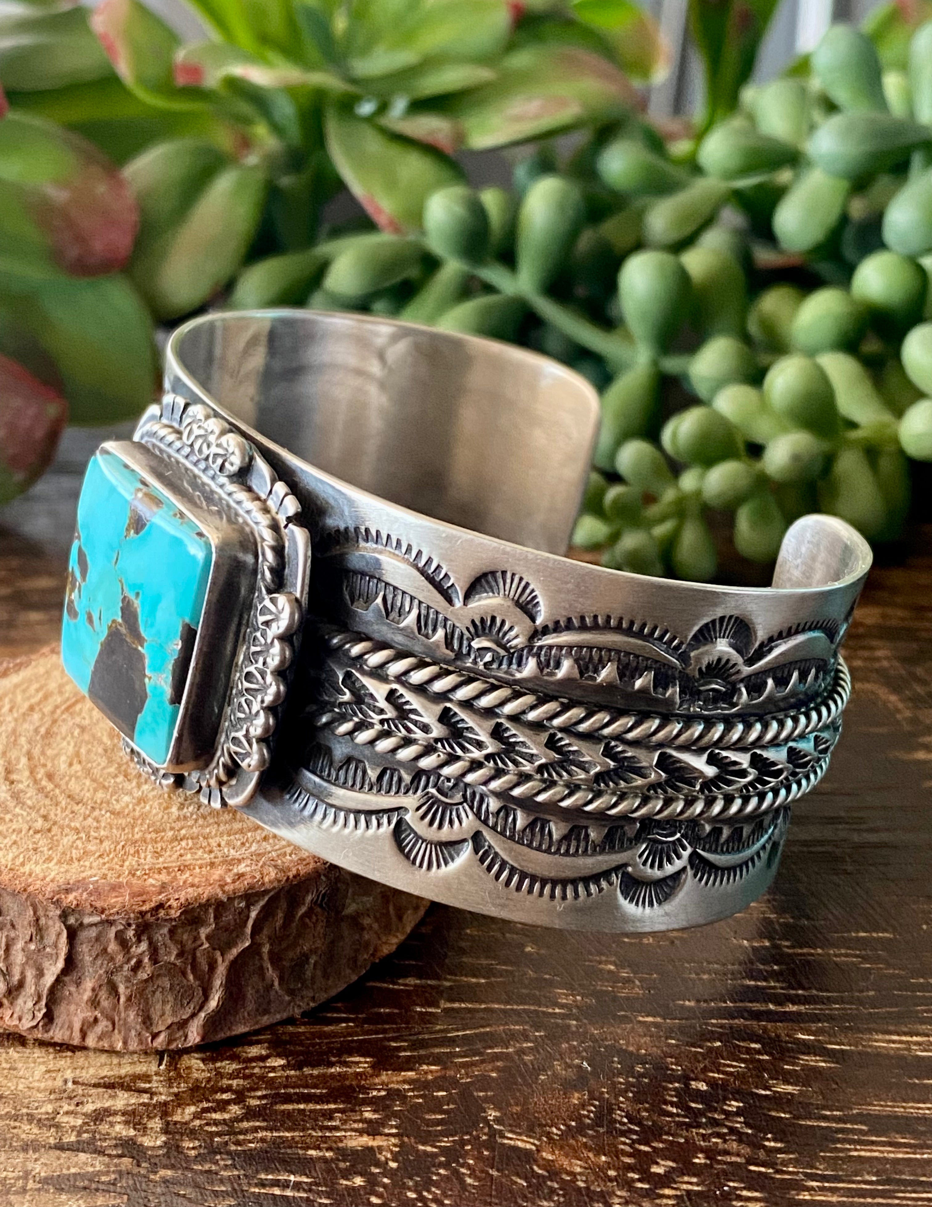 J Nelson Carico Lake Turquoise & Sterling Silver Cuff Bracelet