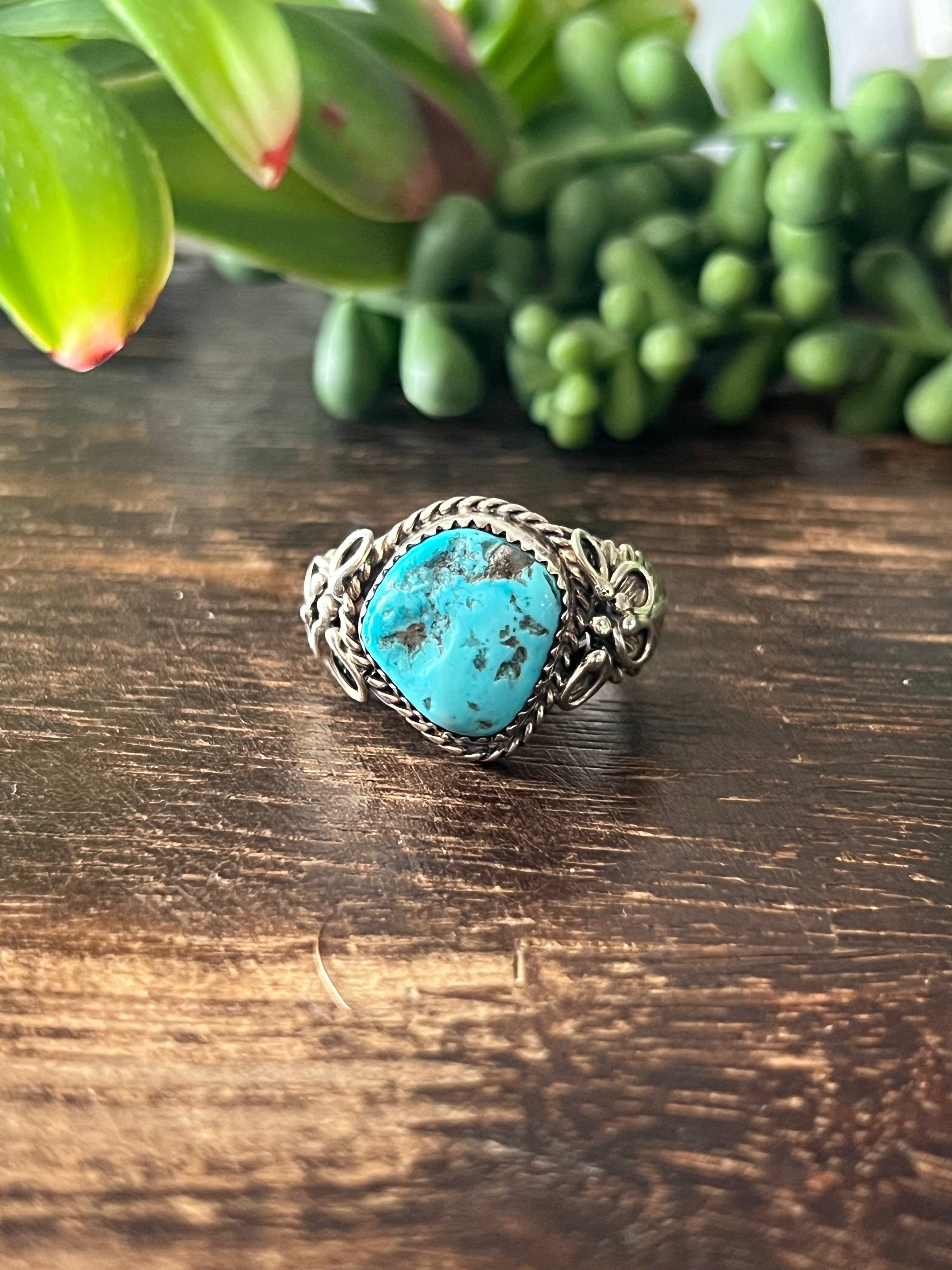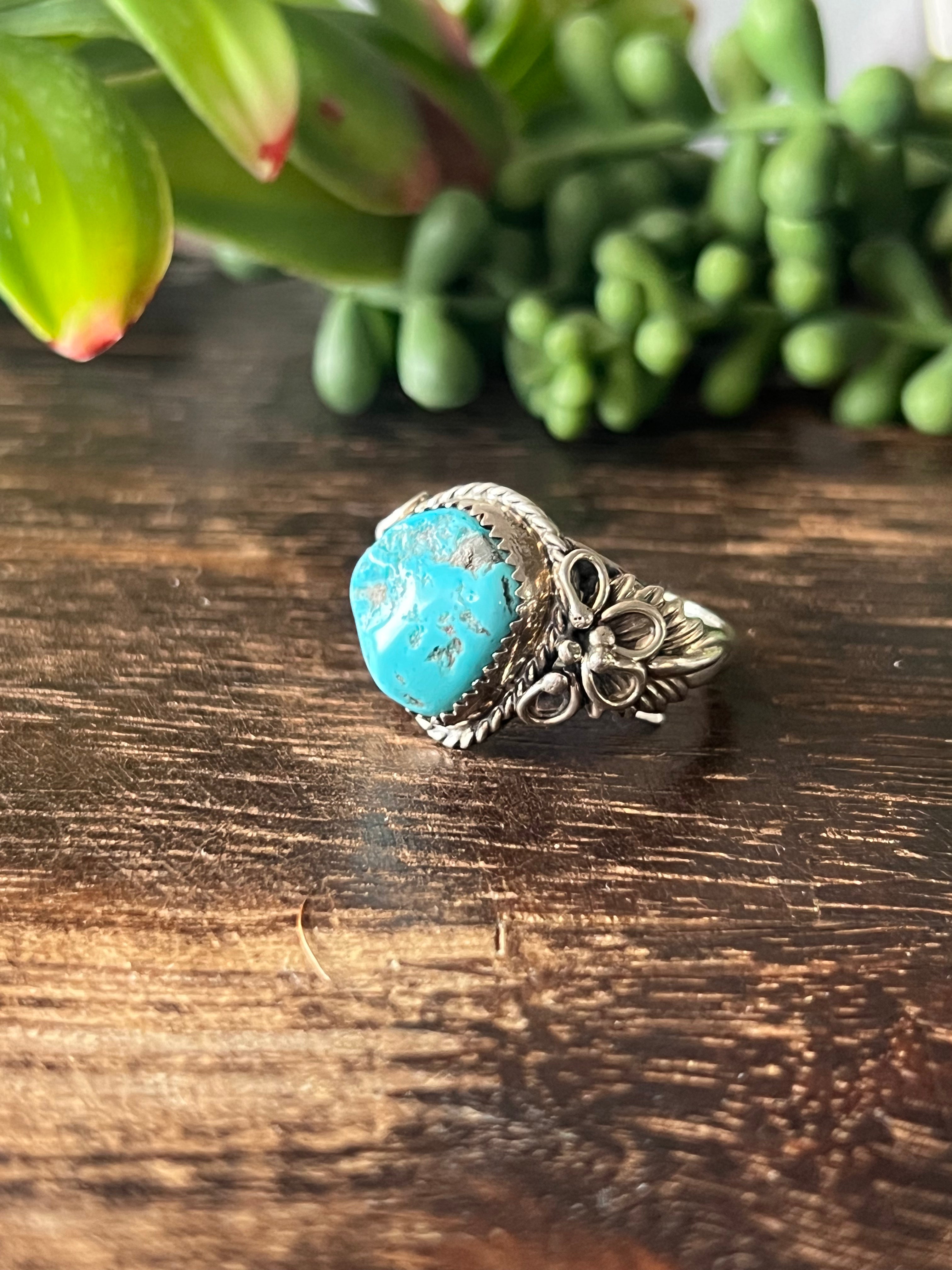 Jeannette Sanders Kingman Turquoise & Sterling Silver Ring Size 12