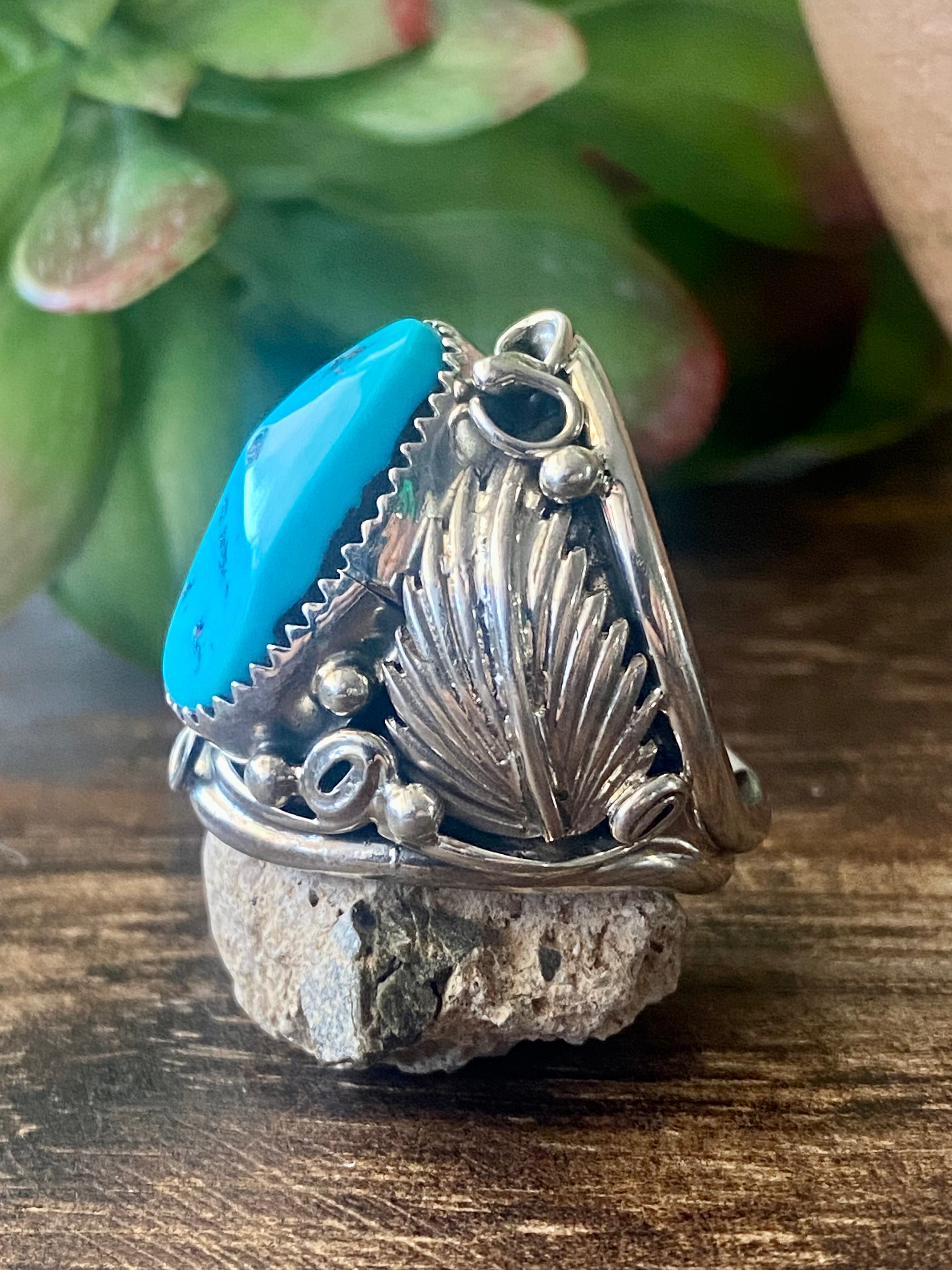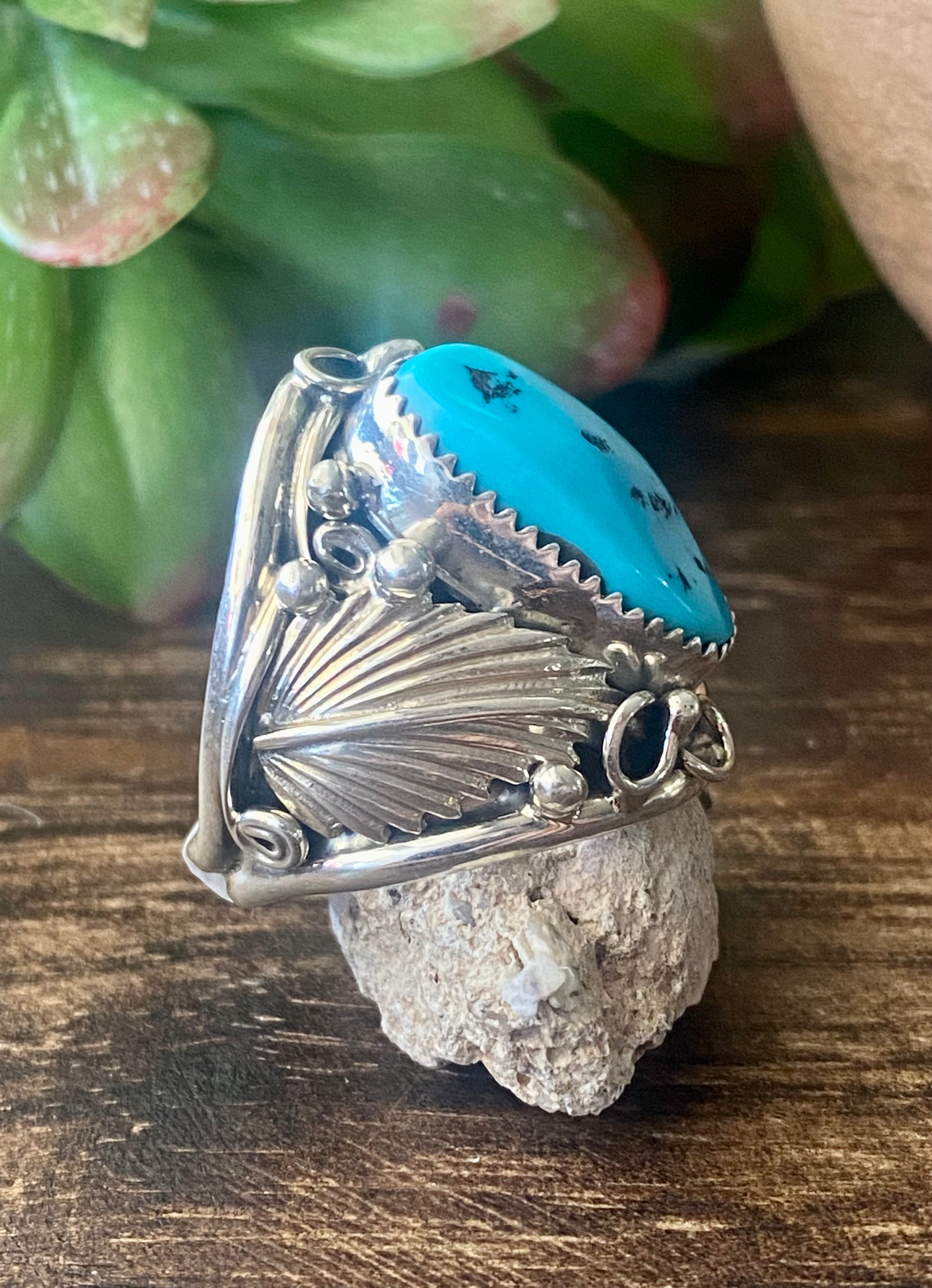 Jeannette Sanders Kingman Turquoise & Sterling Silver Ring Size 9.75