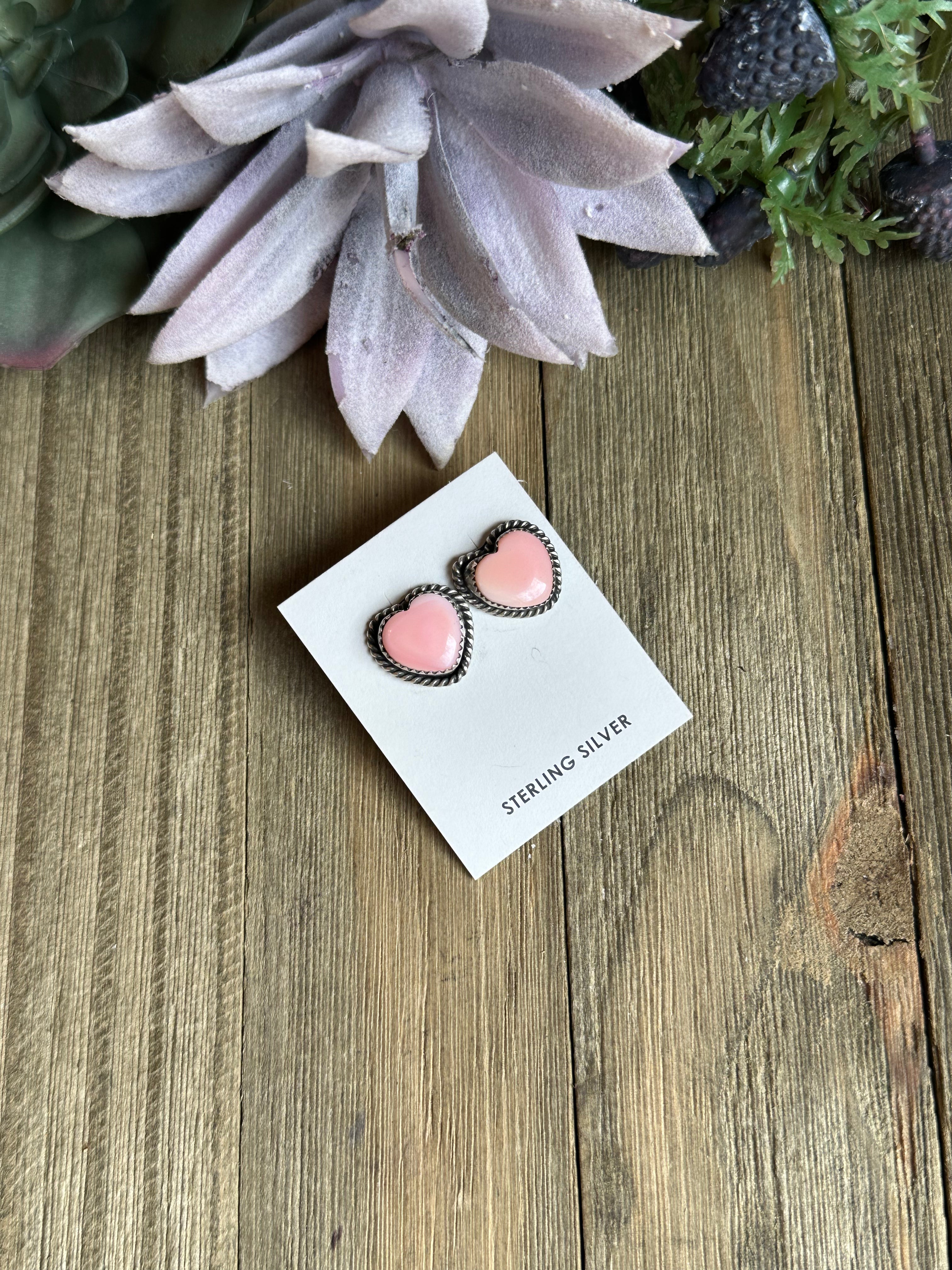 Judith Dixon Pink Conch & Sterling Silver Heart Post Earrings