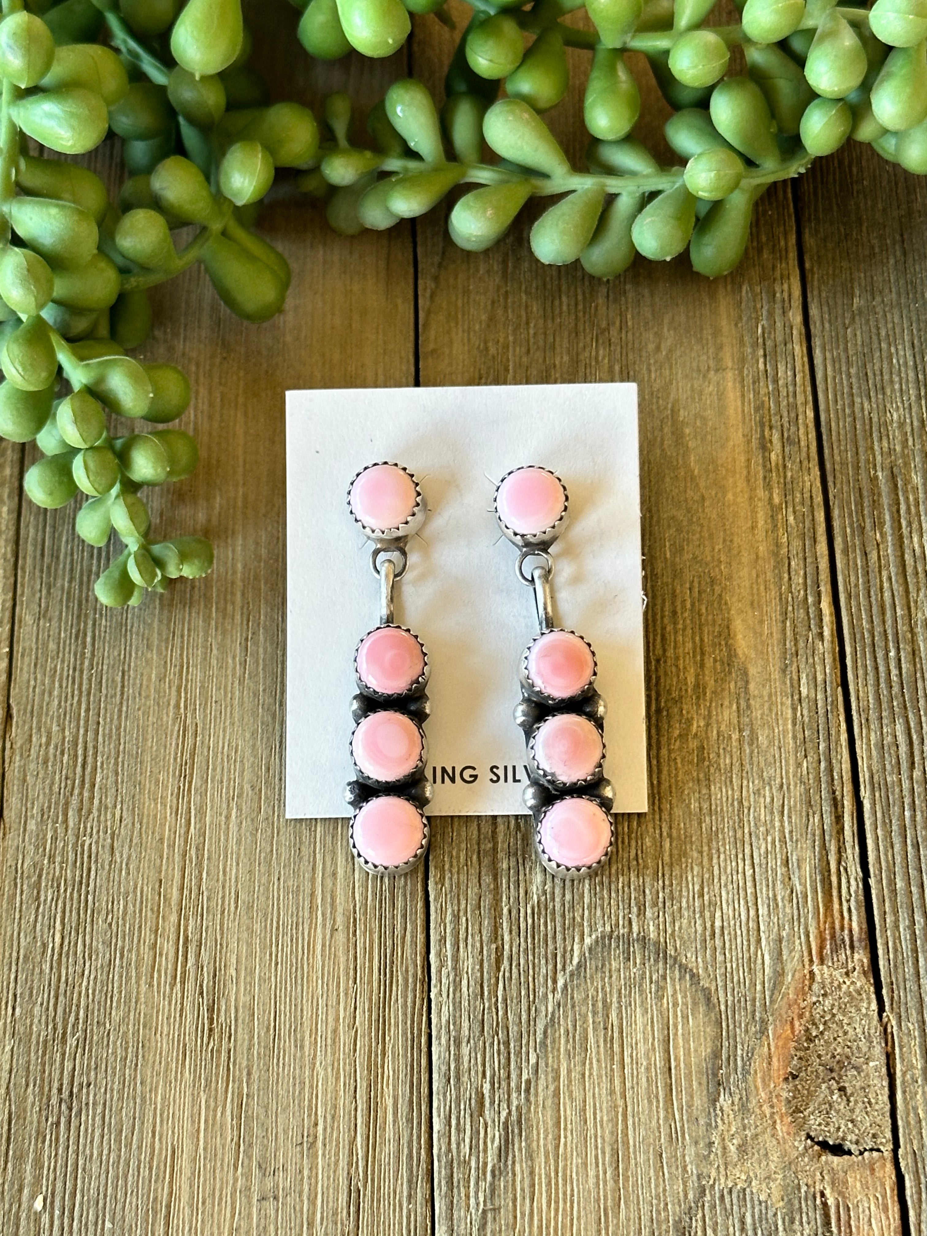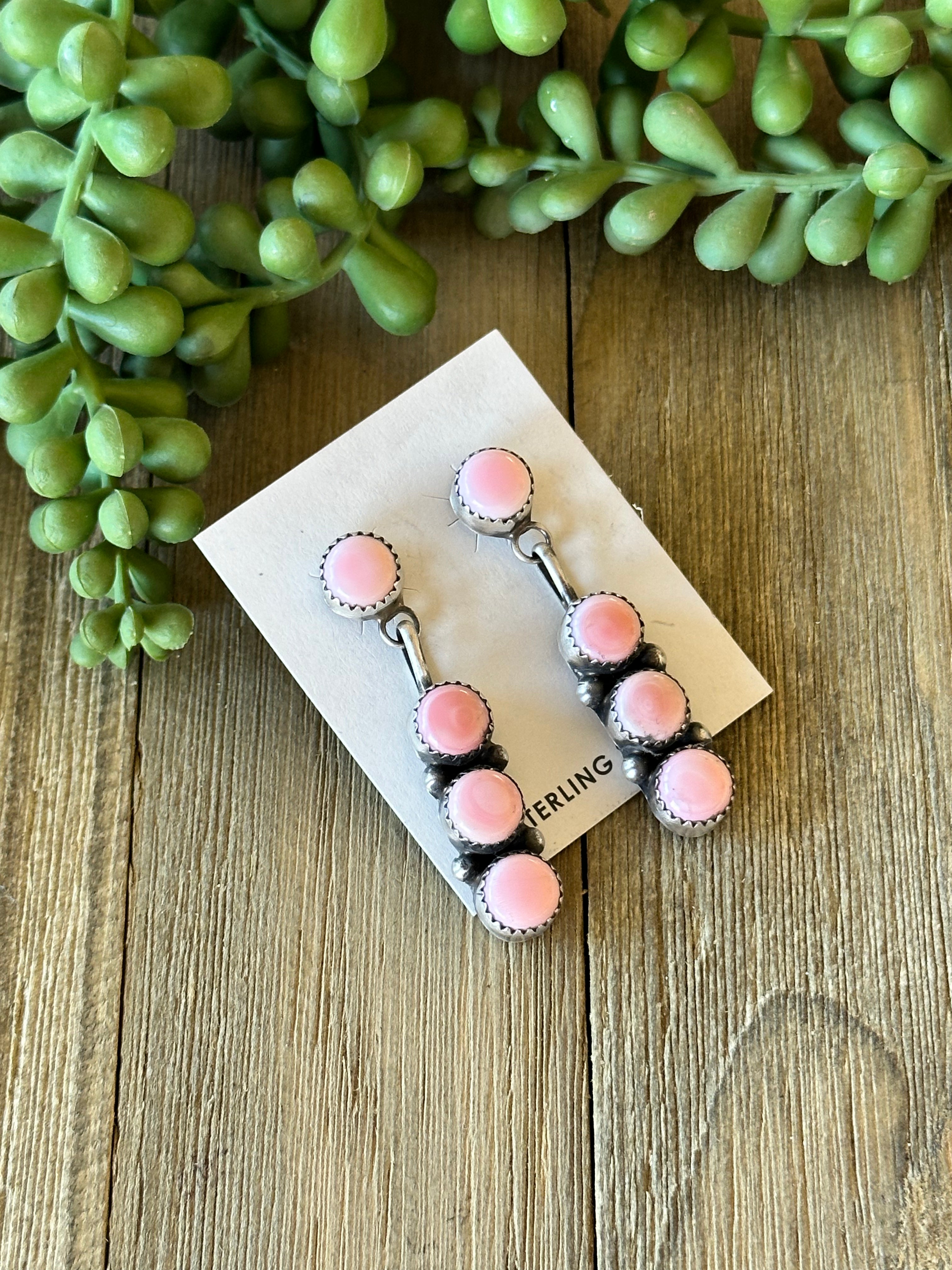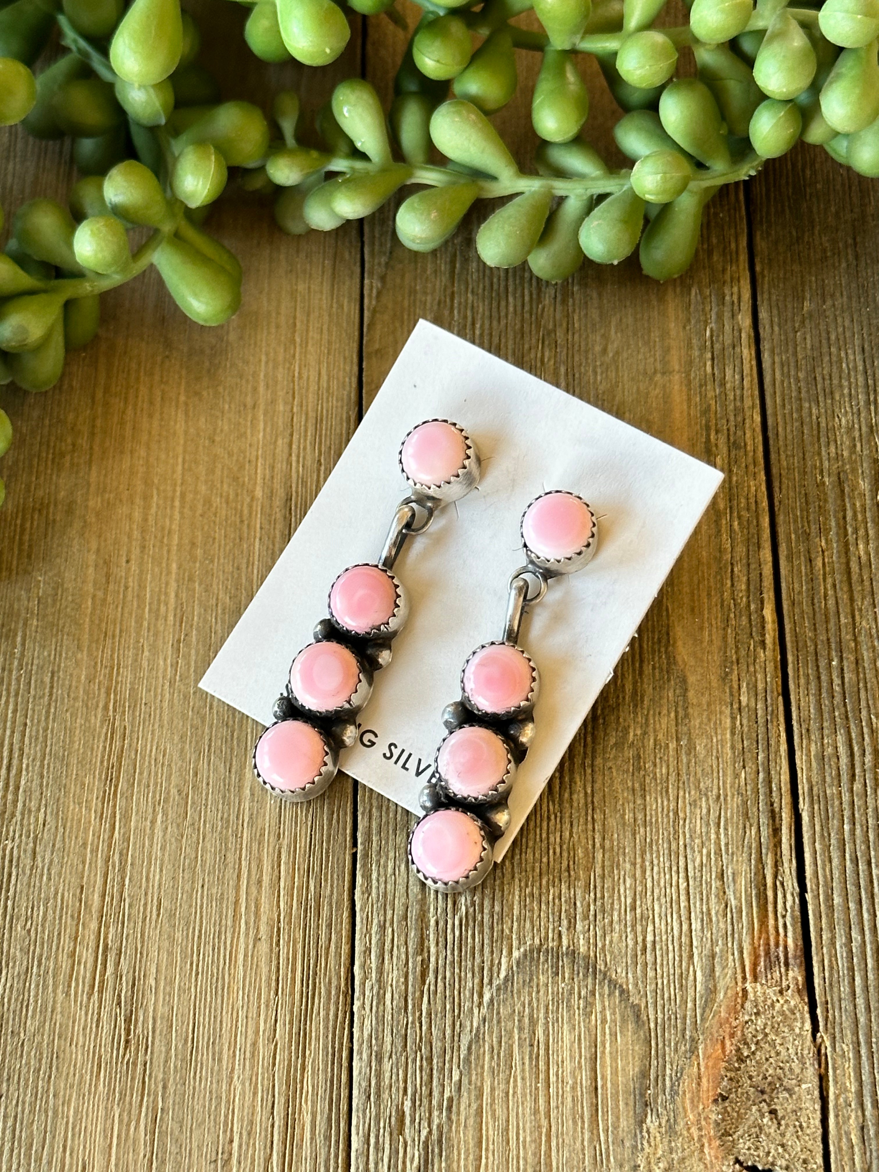 Judith Dixon Pink Conch & Sterling Silver Post Dangle Earrings