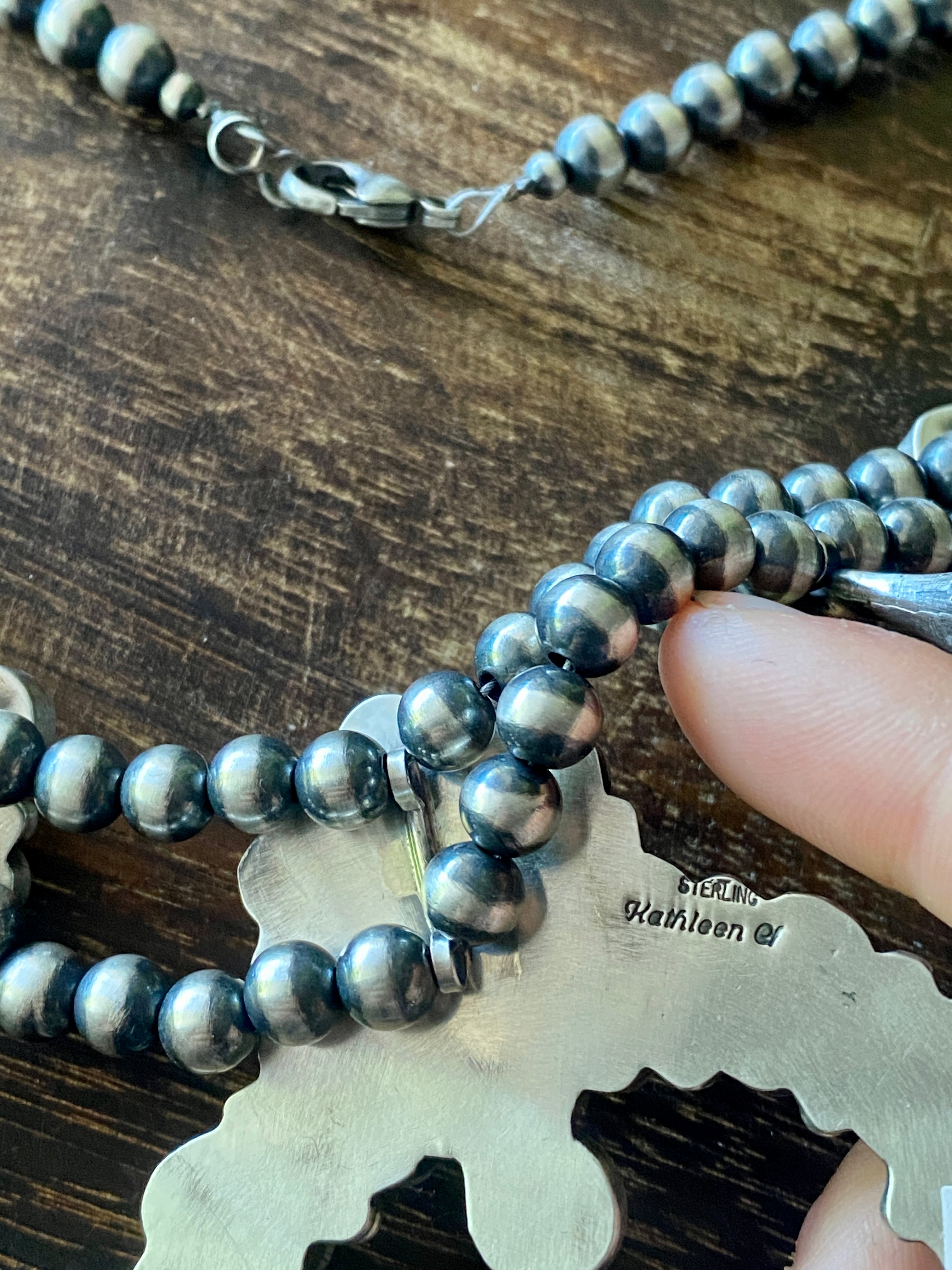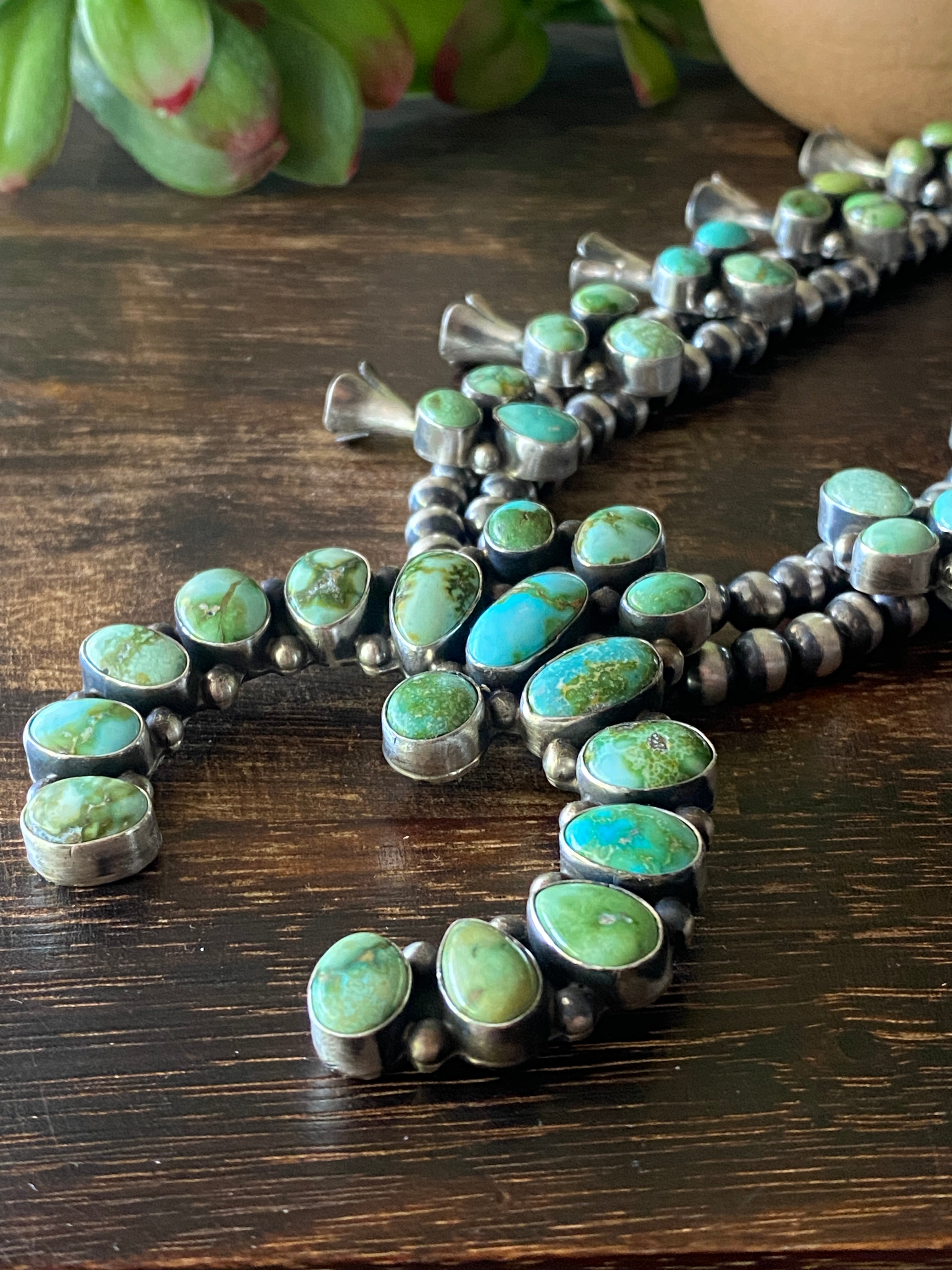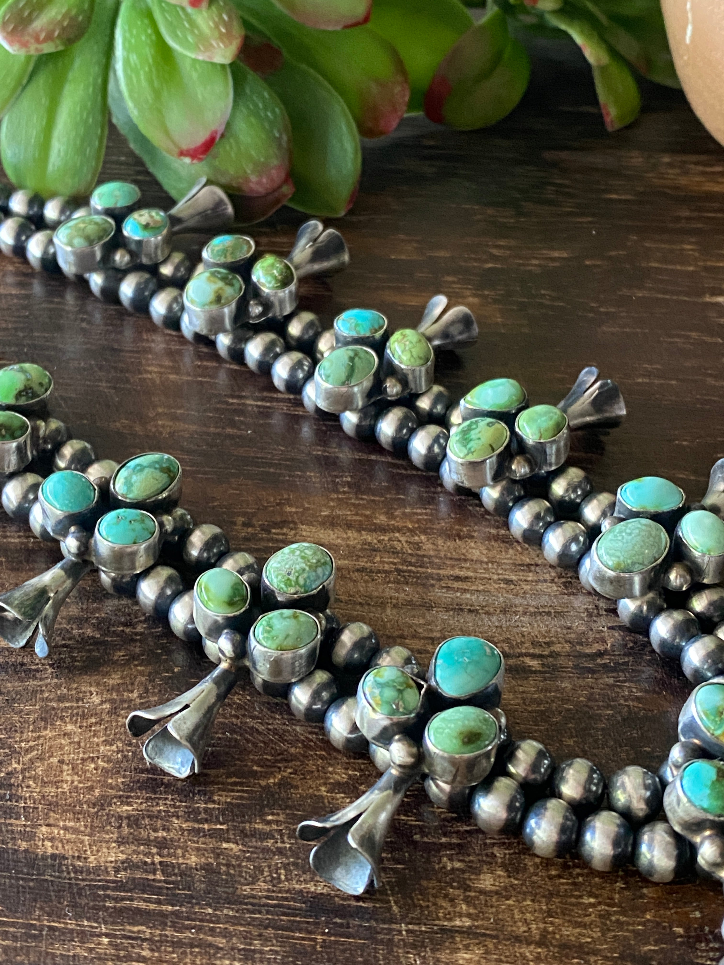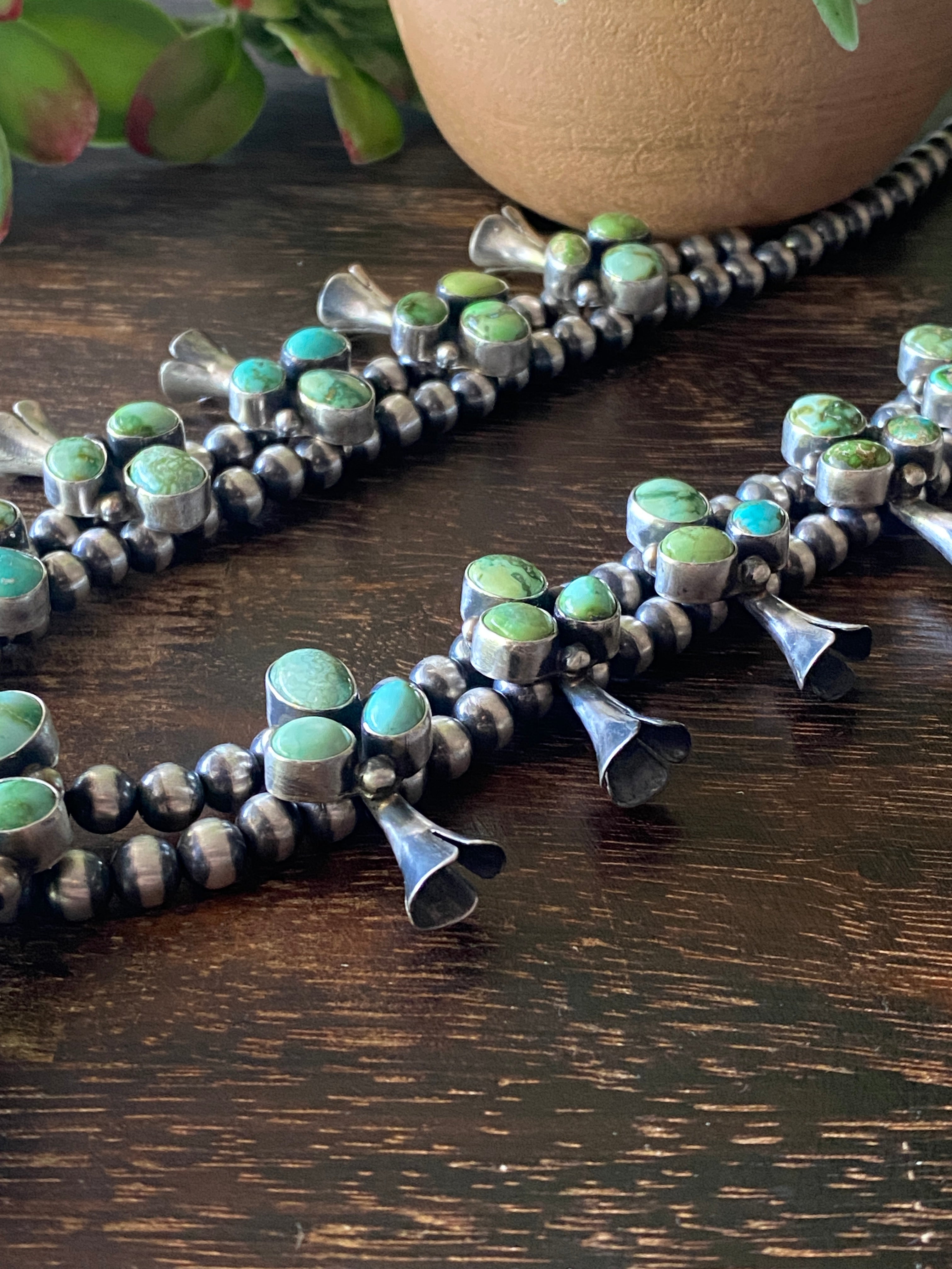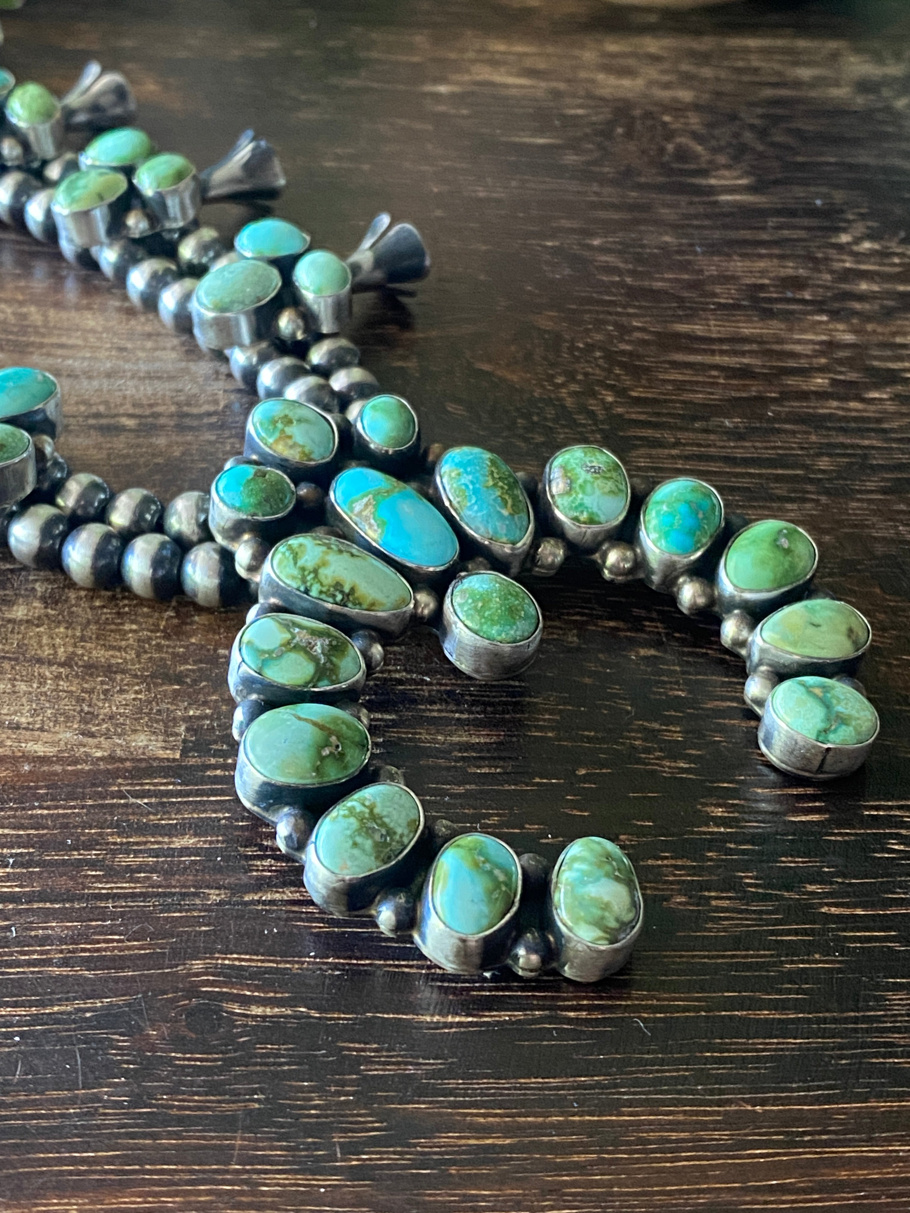Kathleen Chavez Sonoran Gold Turquoise & Sterling Silver Squash Blossom Necklace Set
