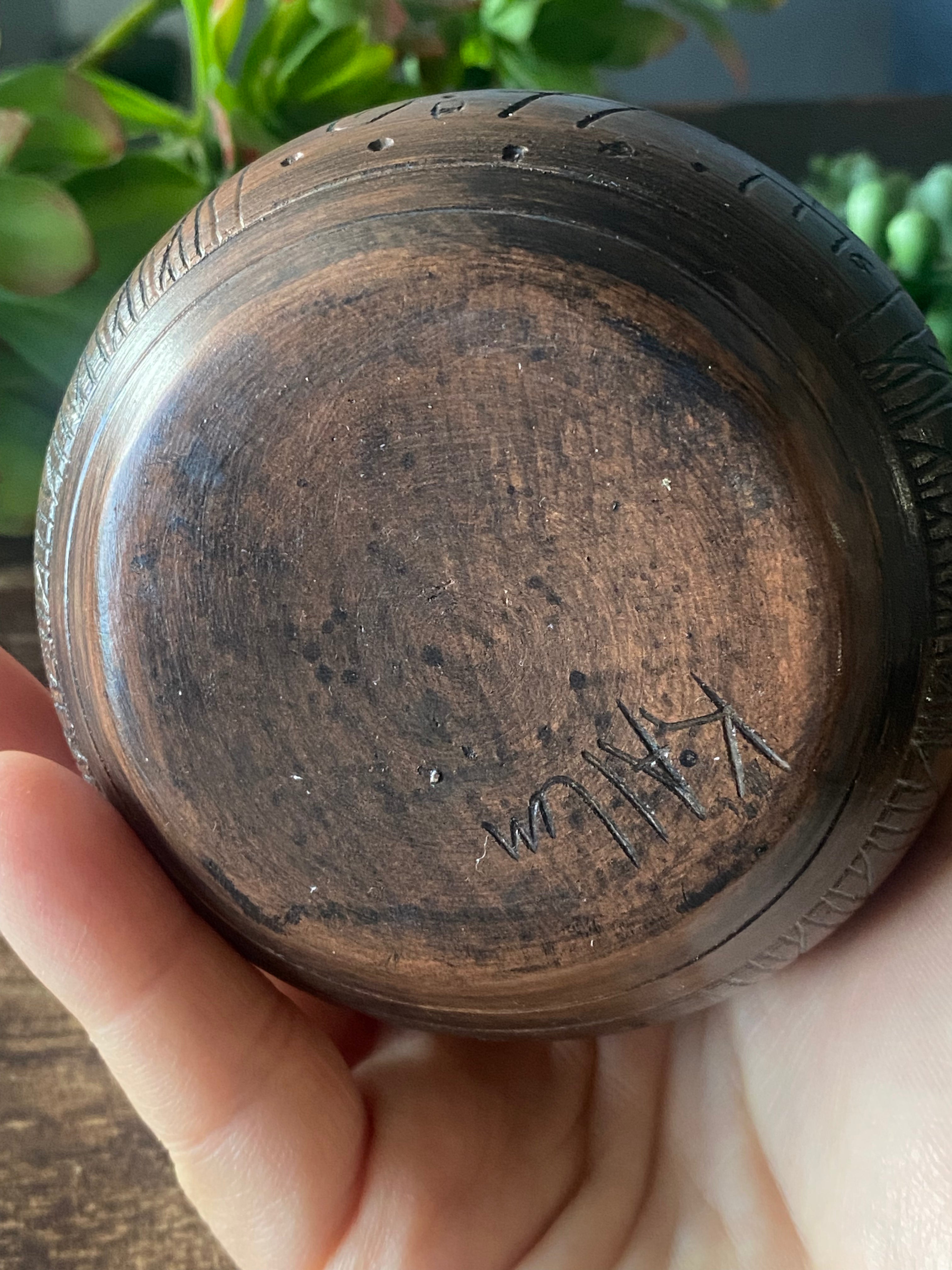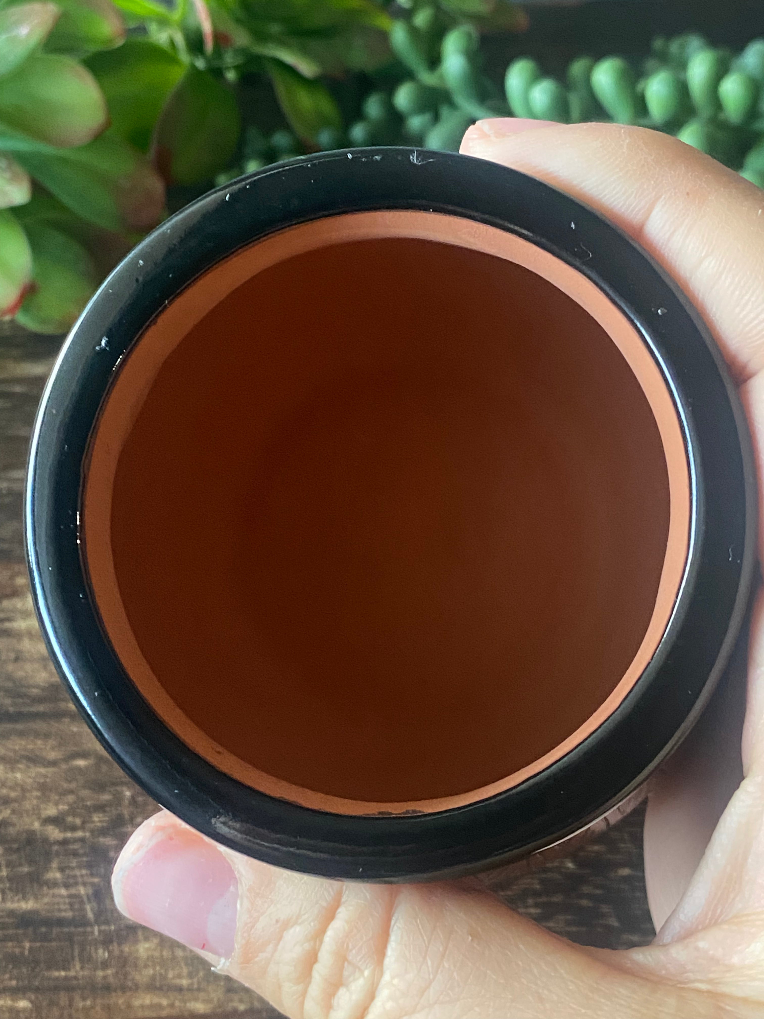 Kayla John Navajo Made Pottery. It measures 3 inches long and 2 7/8 inches wide. Signed by the artist.
