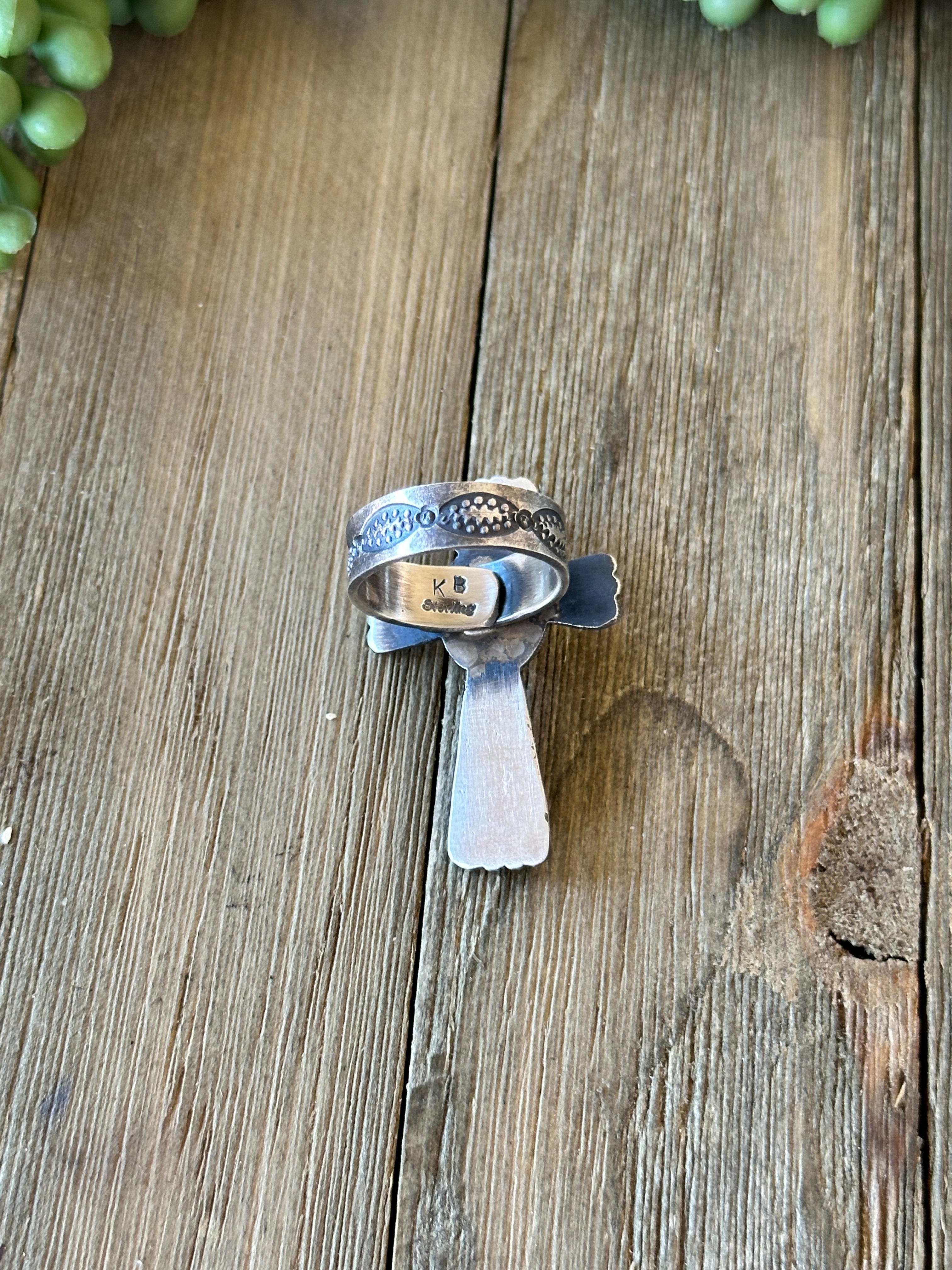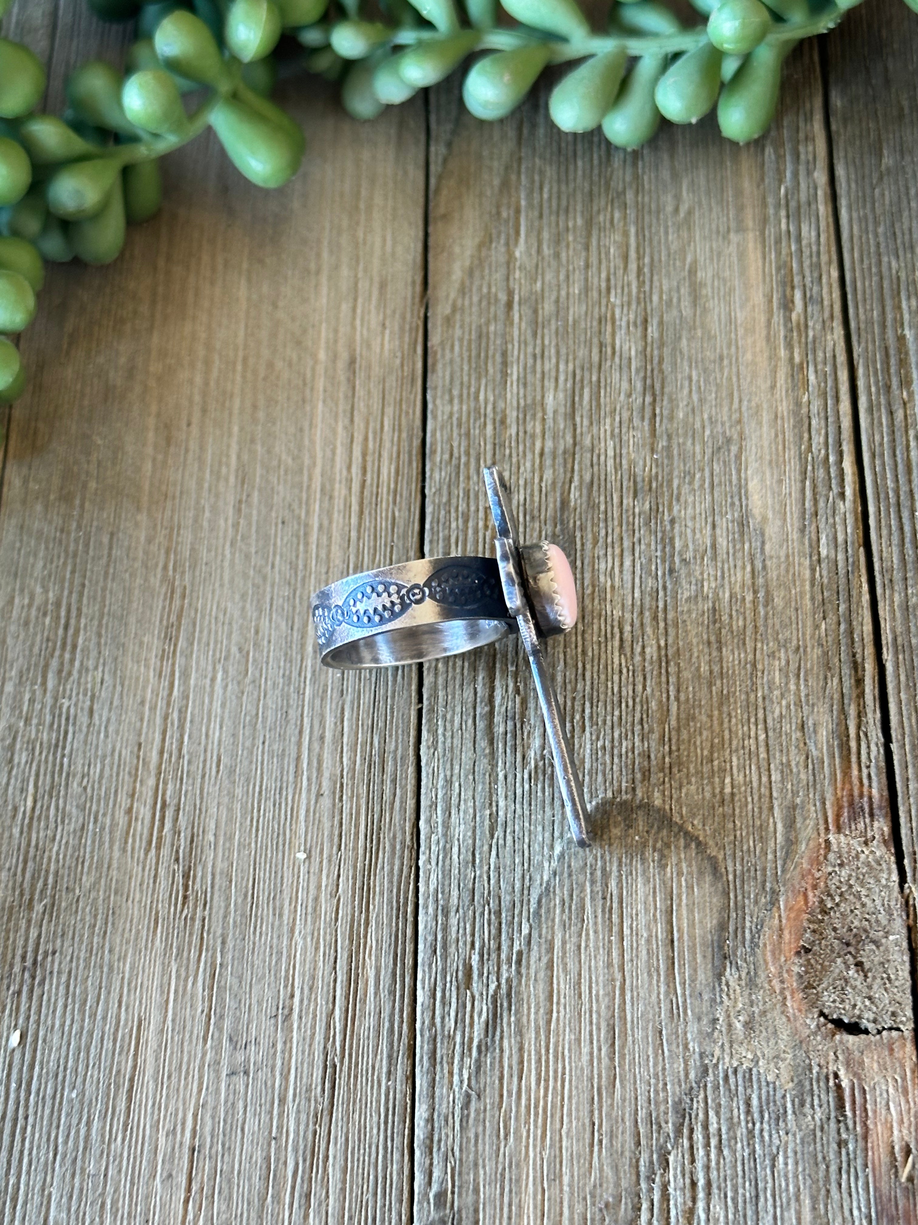 Beautiful Adjustable ring. Kindale Billah Pink Conch & Sterling Silver Adjustable Cross Ring. It measures 1 5/8 inches long and 1 inch wide. Signed by the artist and stamped sterling silver. Stones will differ due to natural stones.