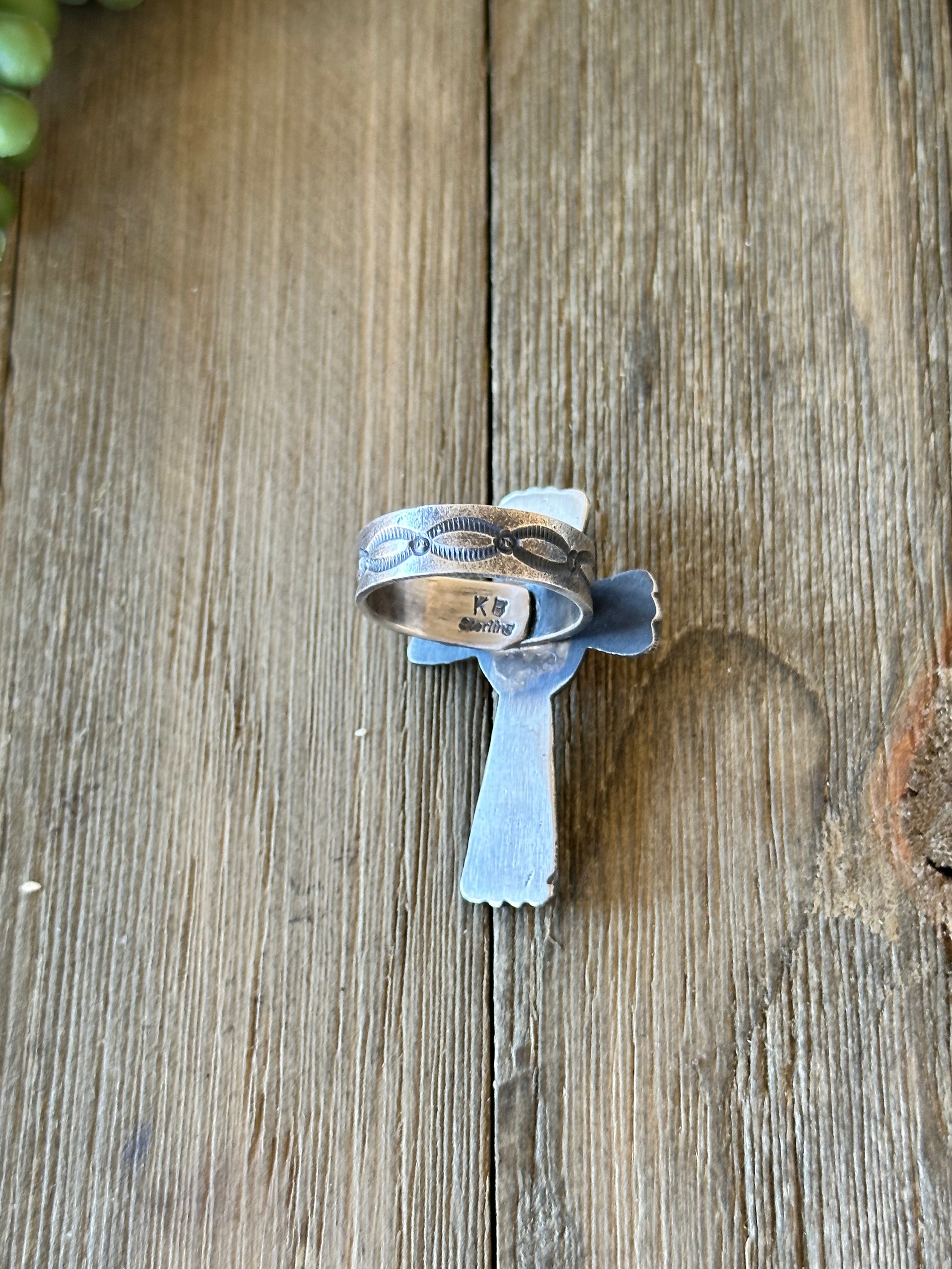 Beautiful Adjustable ring. Kindale Billah Pink Conch & Sterling Silver Adjustable Cross Ring. It measures 1 5/8 inches long and 1 inch wide. Signed by the artist and stamped sterling silver. Stones will differ due to natural stones.