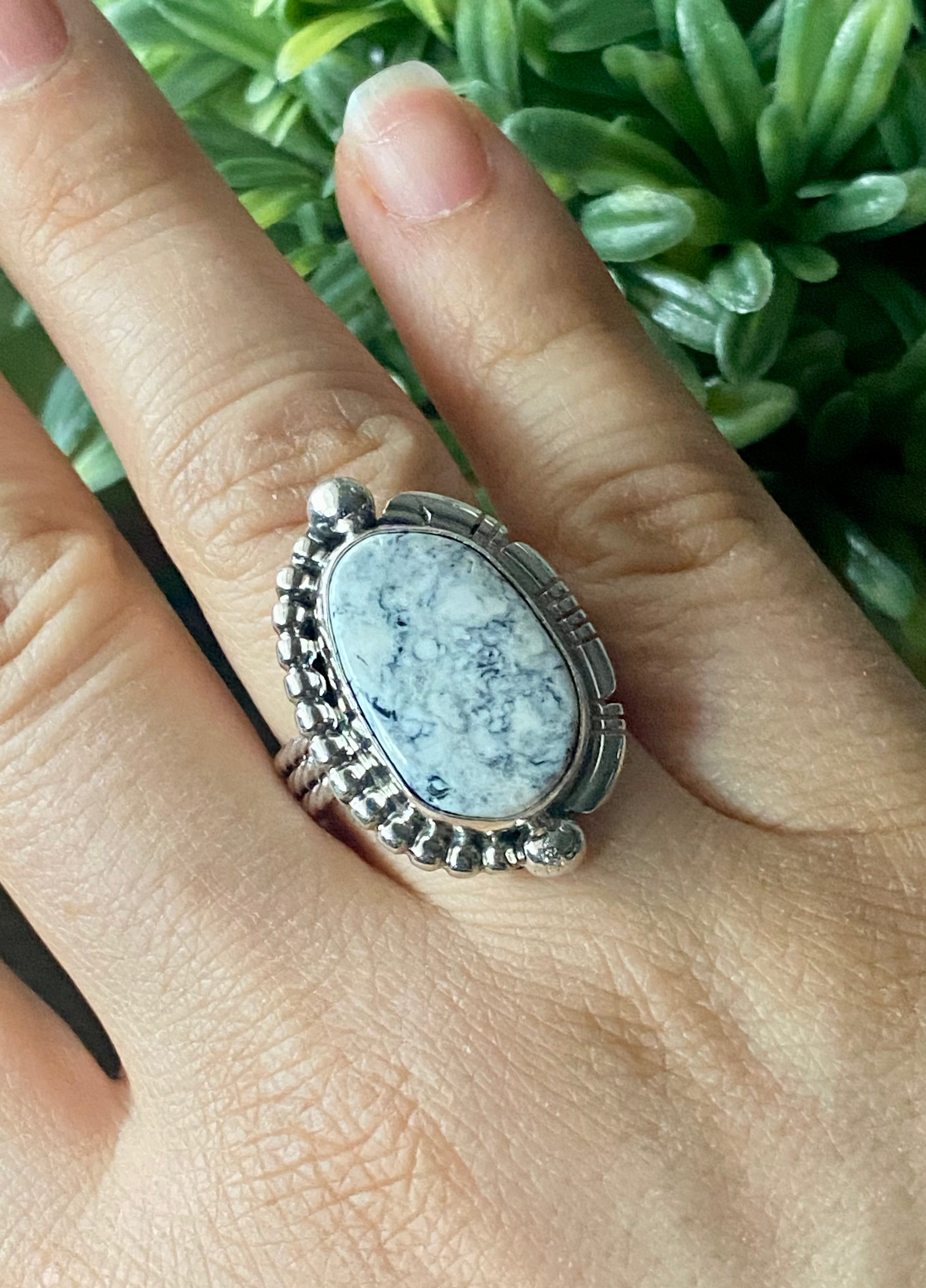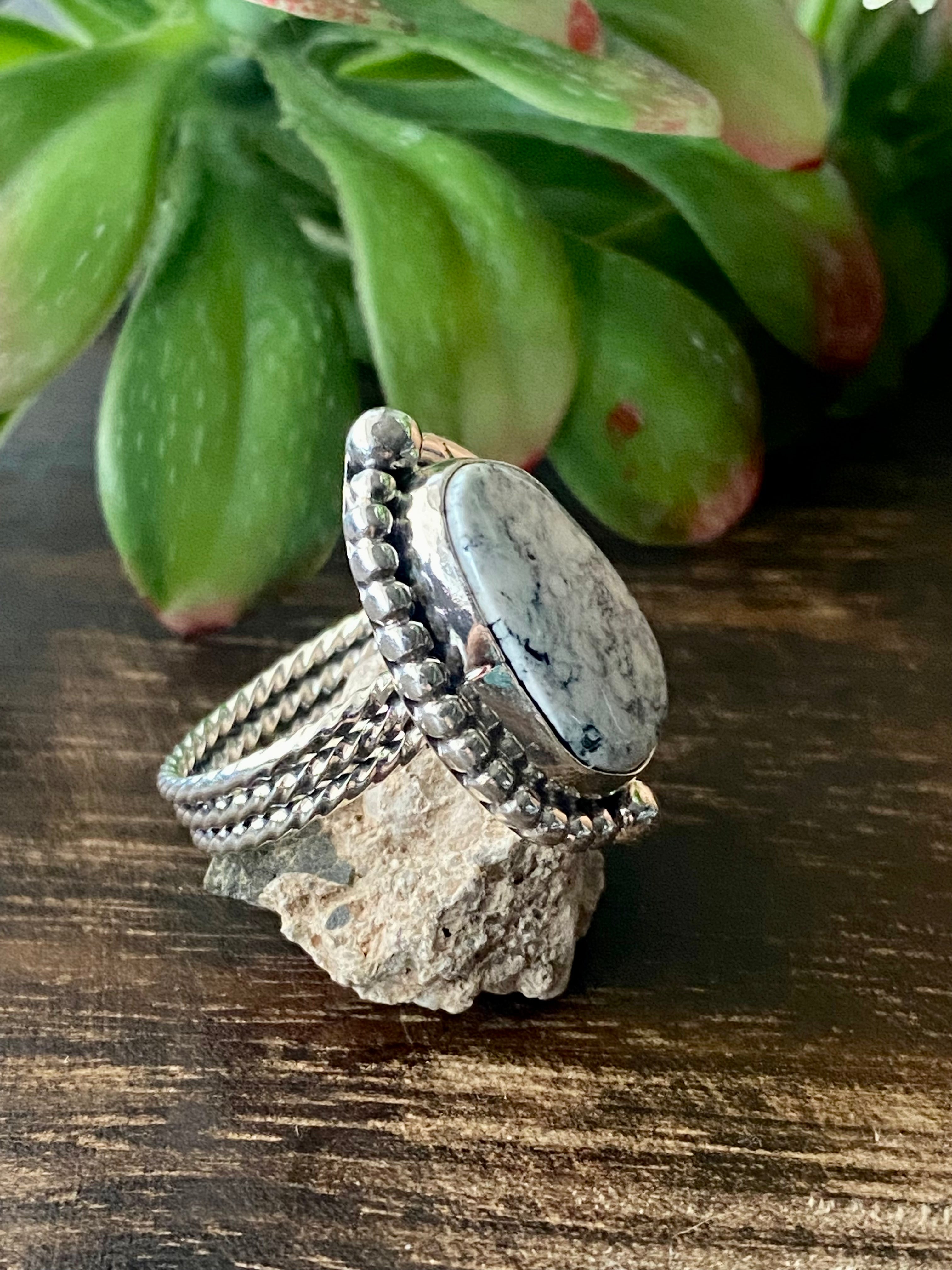Larry Kay White Buffalo & Sterling Silver Ring Size 9.25