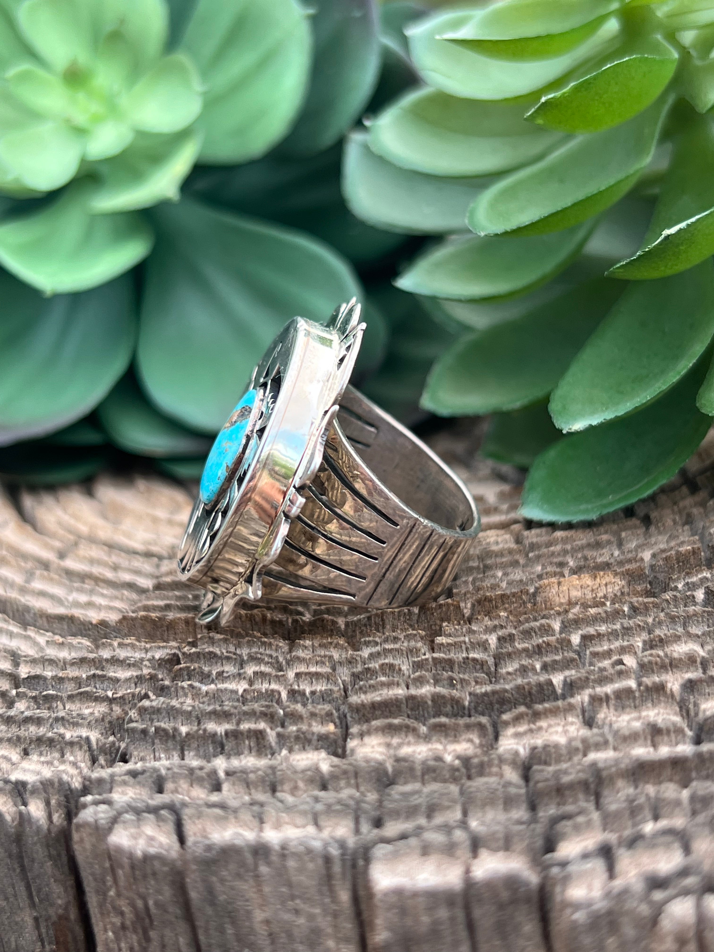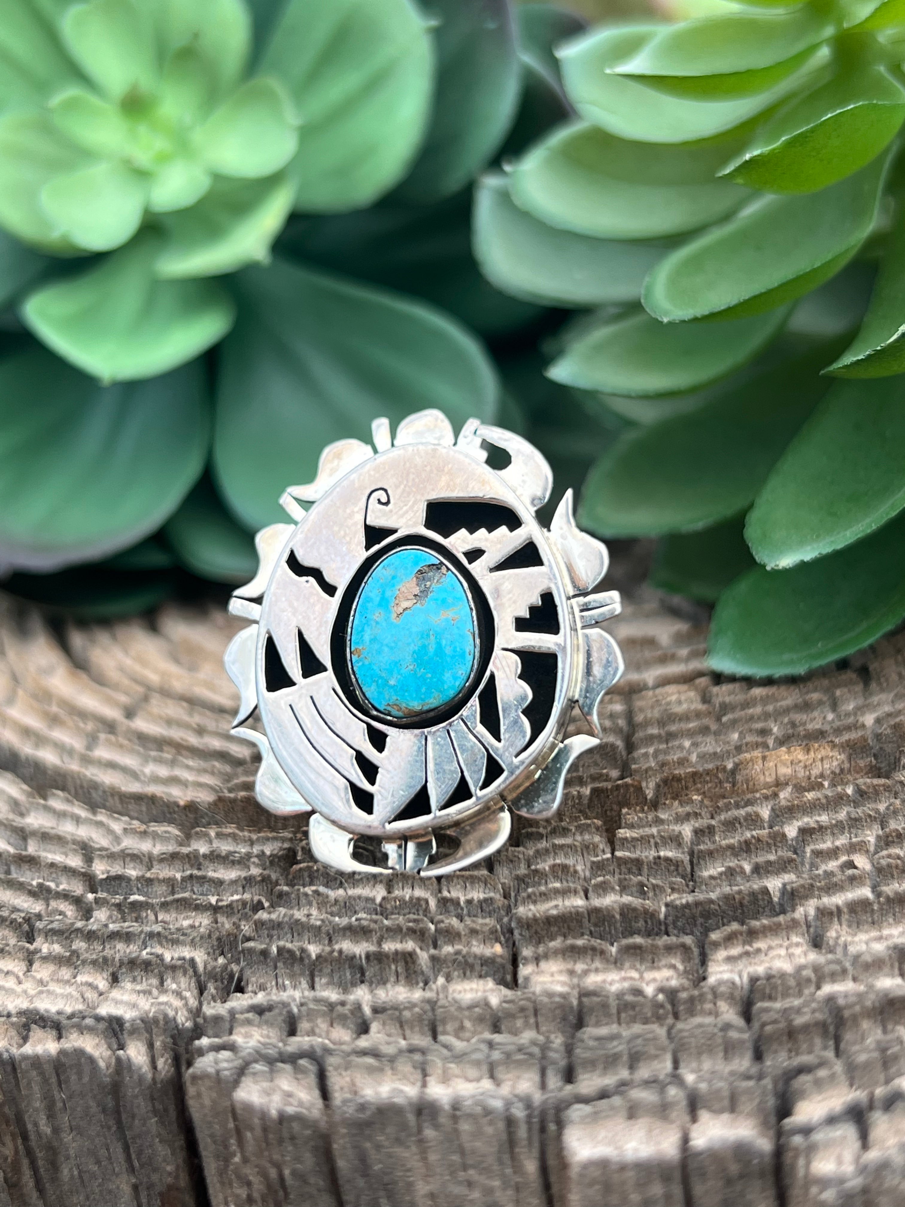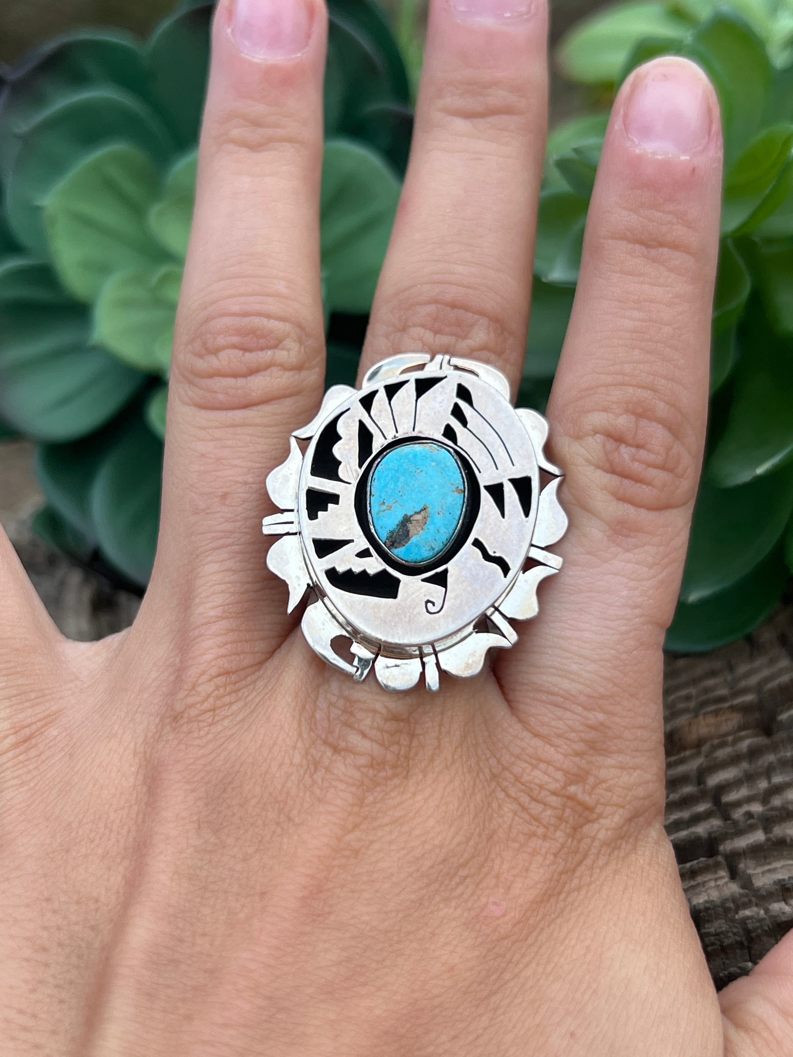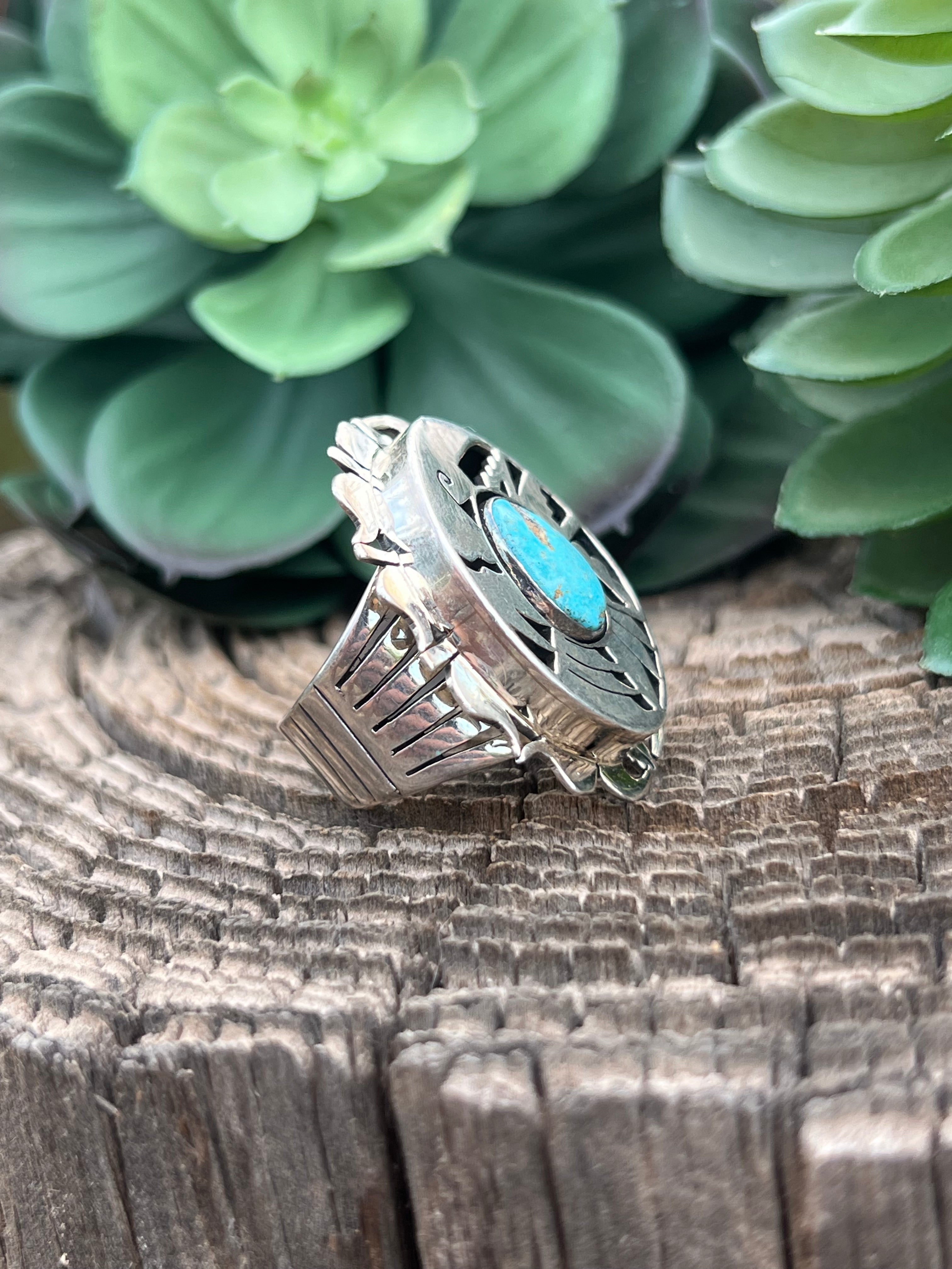 Larry Kaye Kingman Turquoise & Sterling Silver Ring Size 7.75