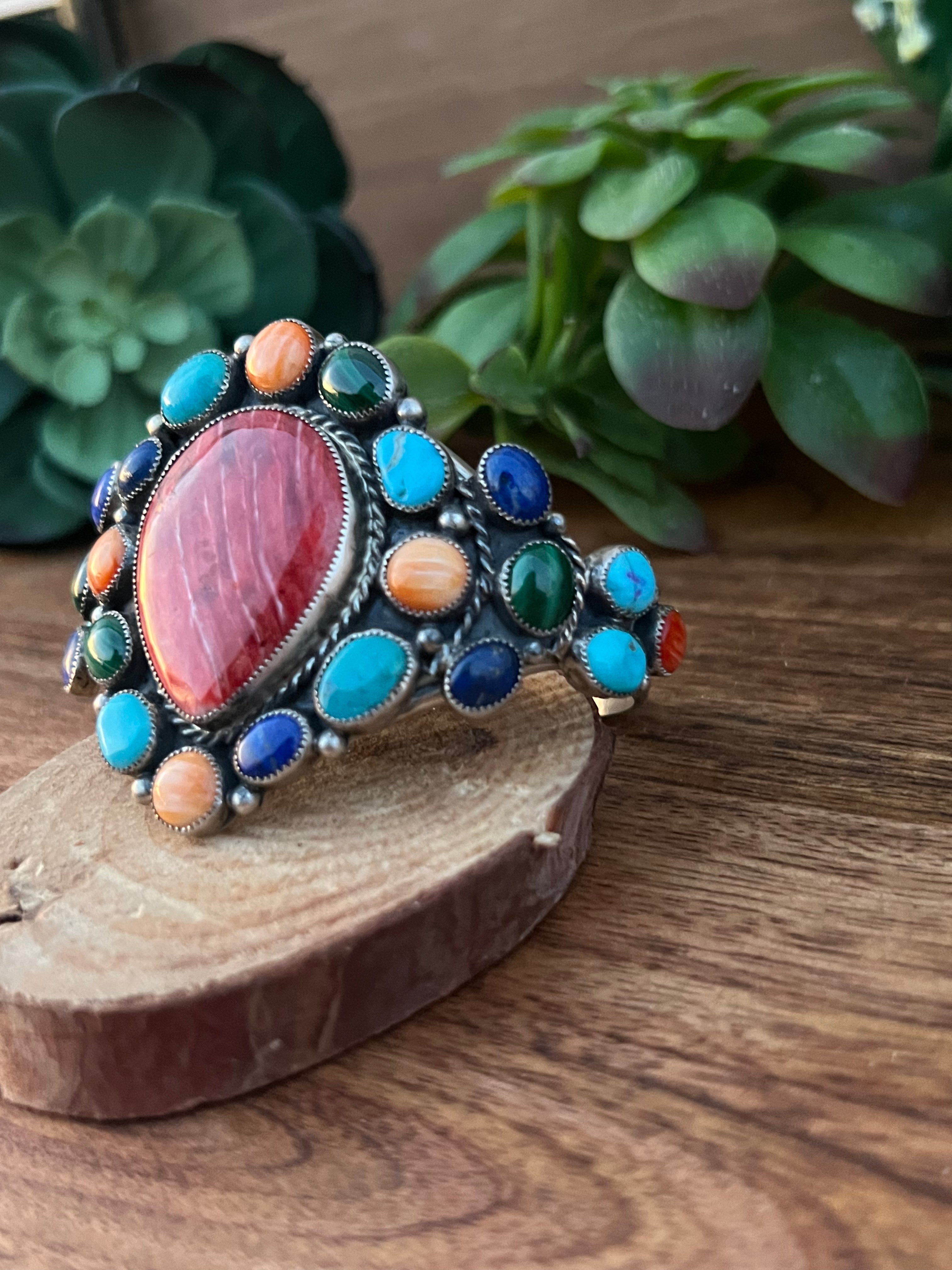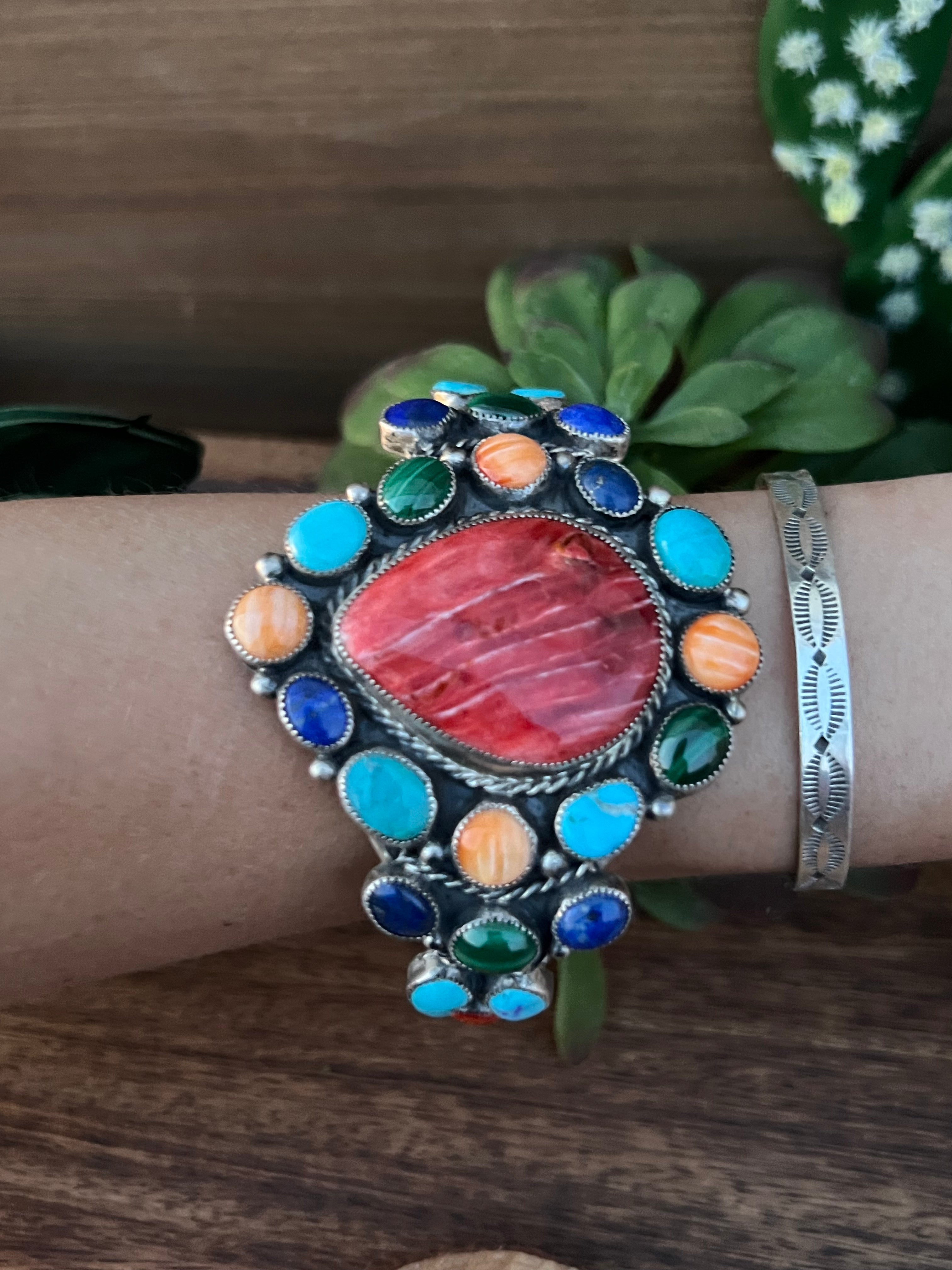 Larry Kaye Multi Stone & Sterling Silver Cuff Bracelet