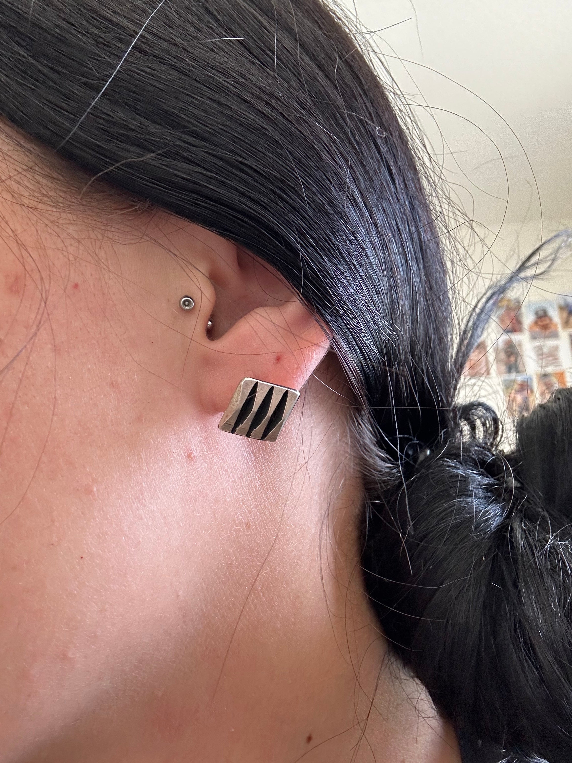 Leander Tahe Sterling Silver Post Earrings. It measures 1/2 of an inch round. Signed by artist and stamped sterling silver.