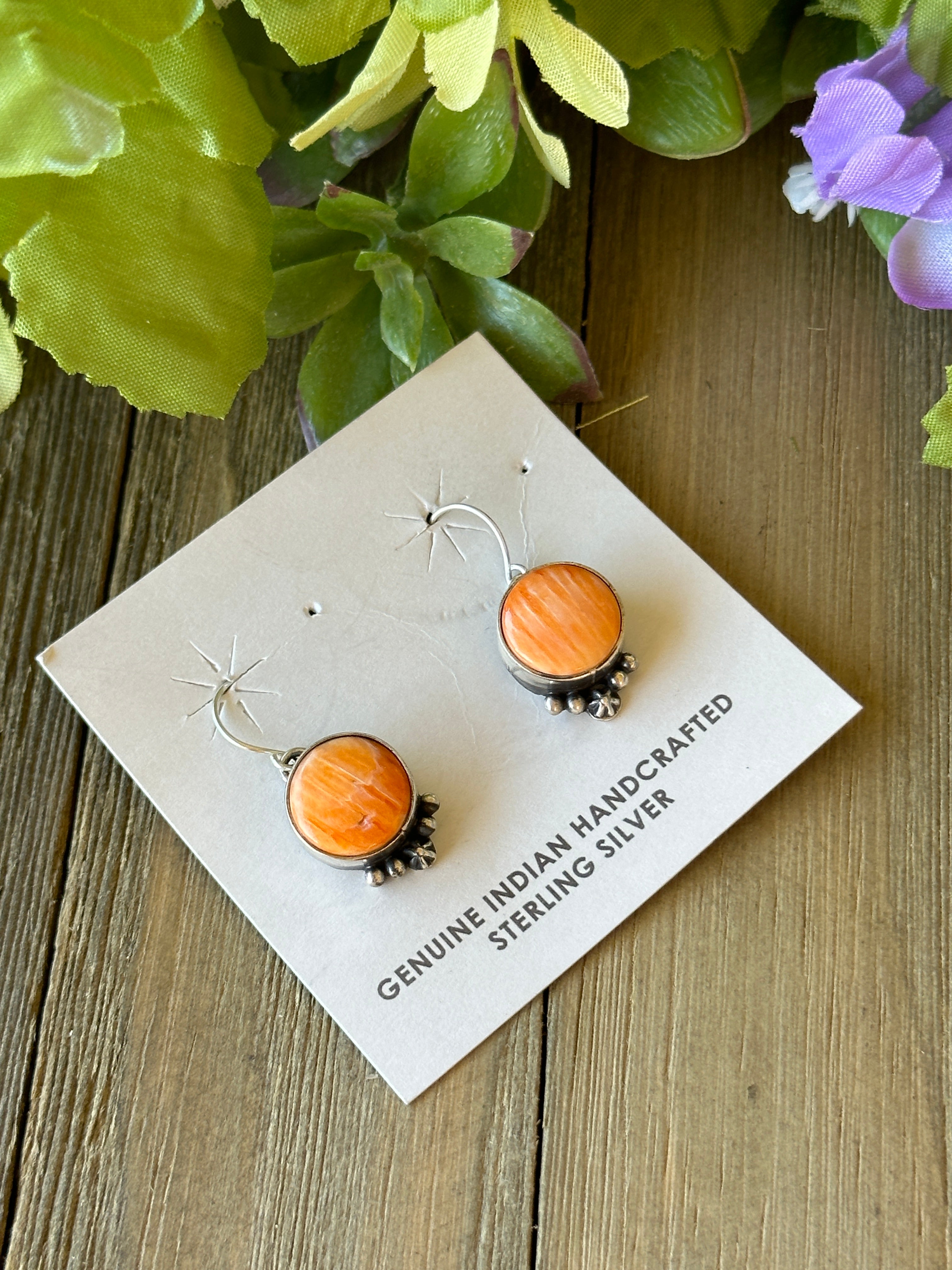 Lionel Slinkley Spiny Oyster & Sterling Silver Dangle Earrings