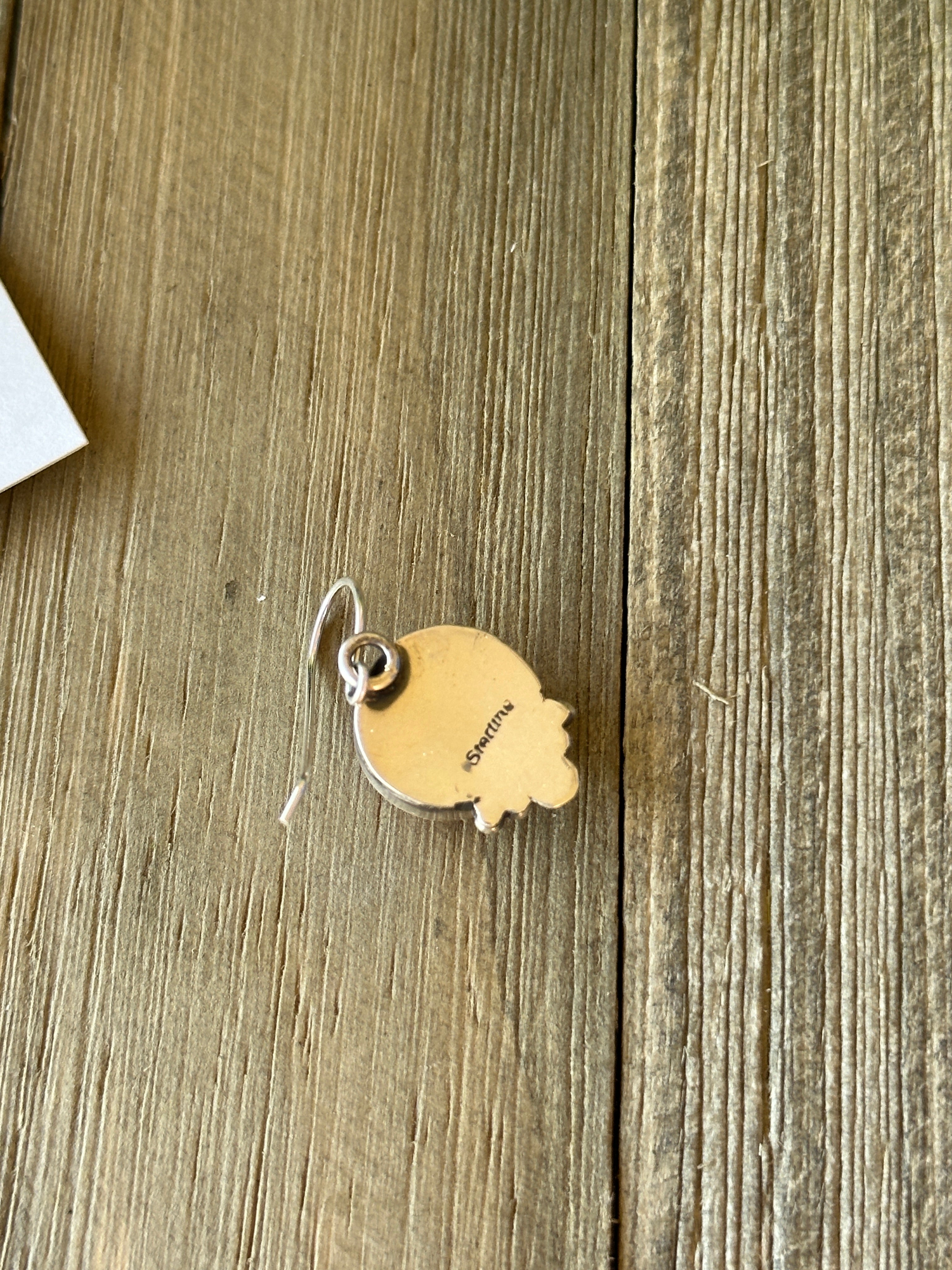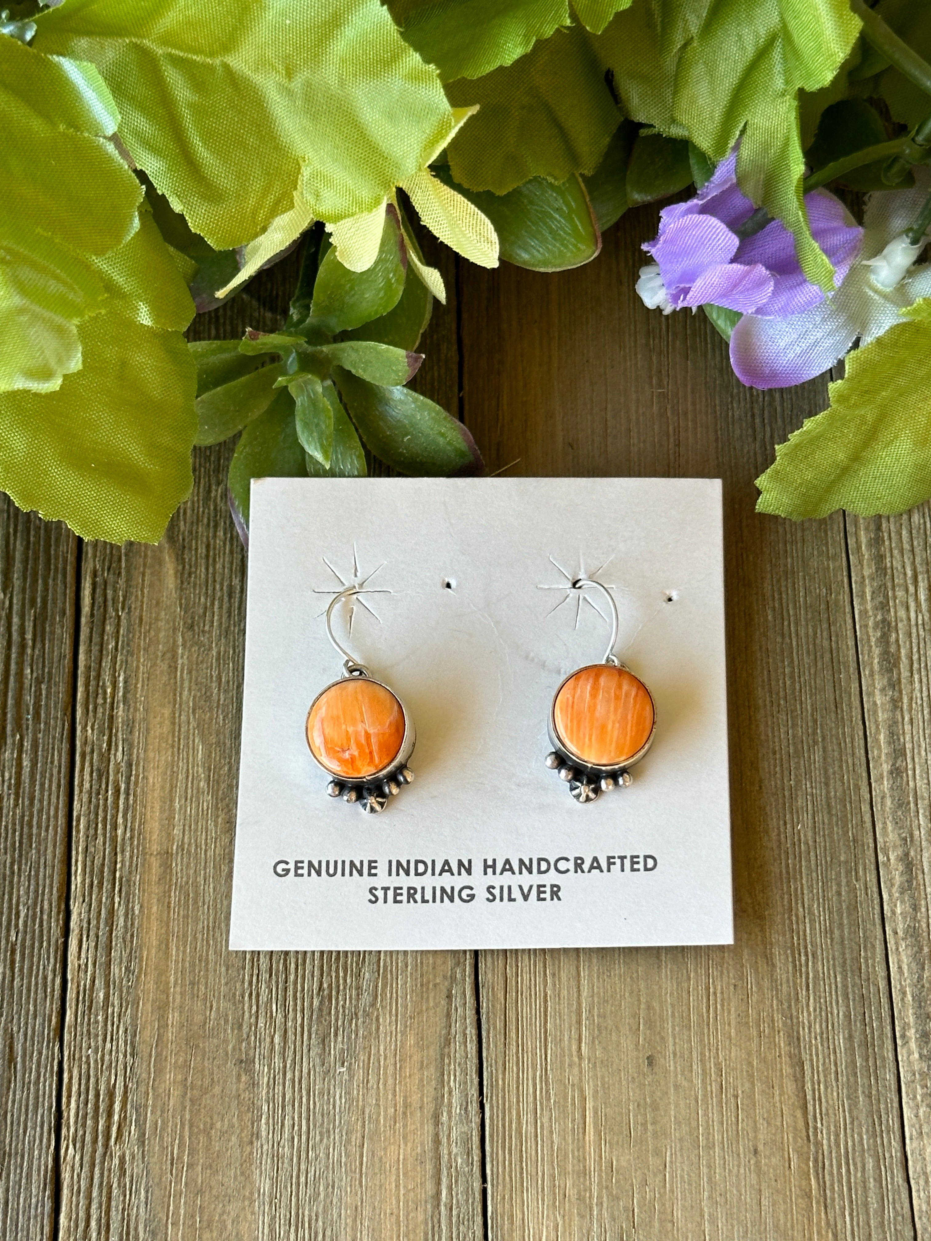 Lionel Slinkley Spiny Oyster & Sterling Silver Dangle Earrings. It measures 1 1/4 inches long and just over 1/2 of an inch wide. Signed by artist and stamped sterling silver.