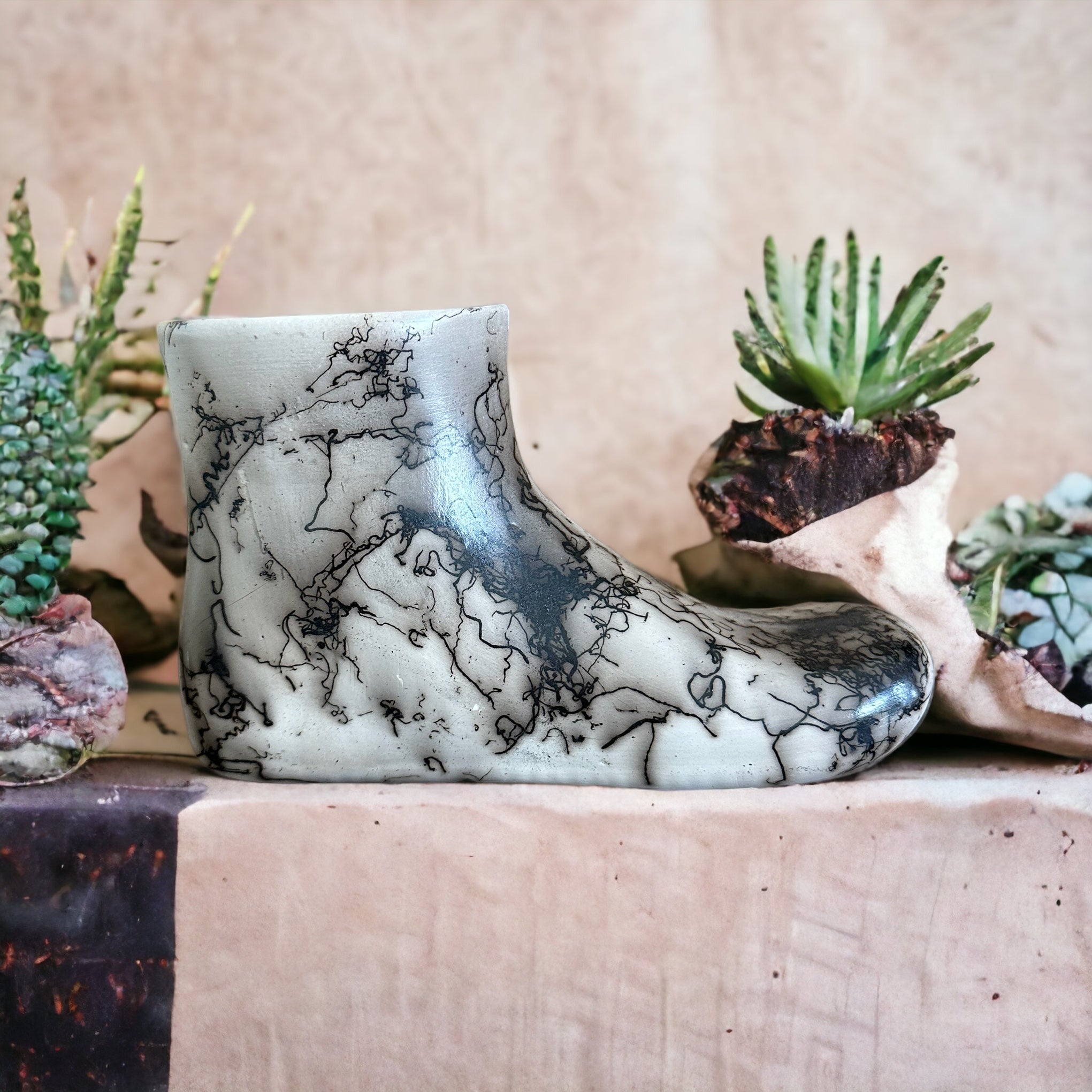 Manuel Brieno Navajo Made Shoe Pottery. It measures 4 3/4 inches long and 7 3/4 inches wide. Signed by the artist.