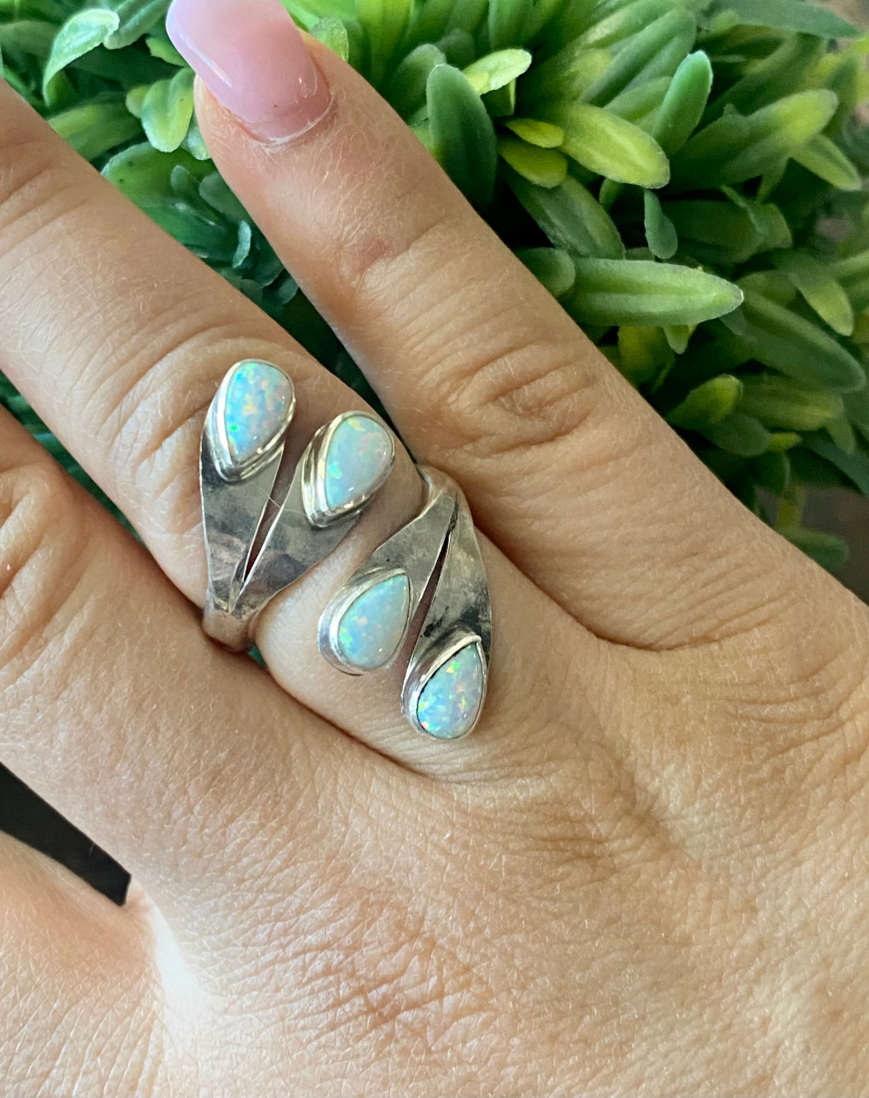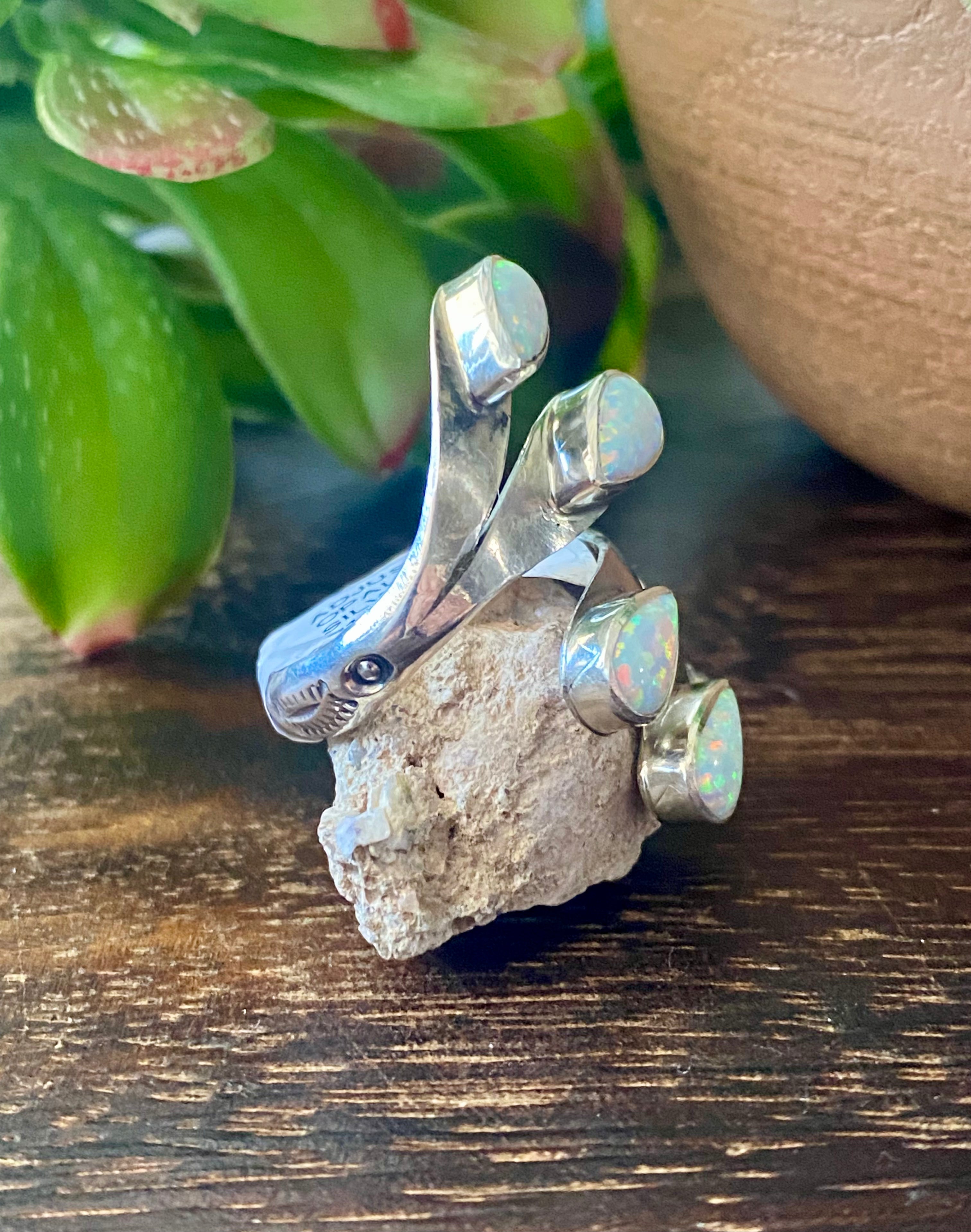 Mark Barney White Opal & Sterling Silver Adjustable Rings