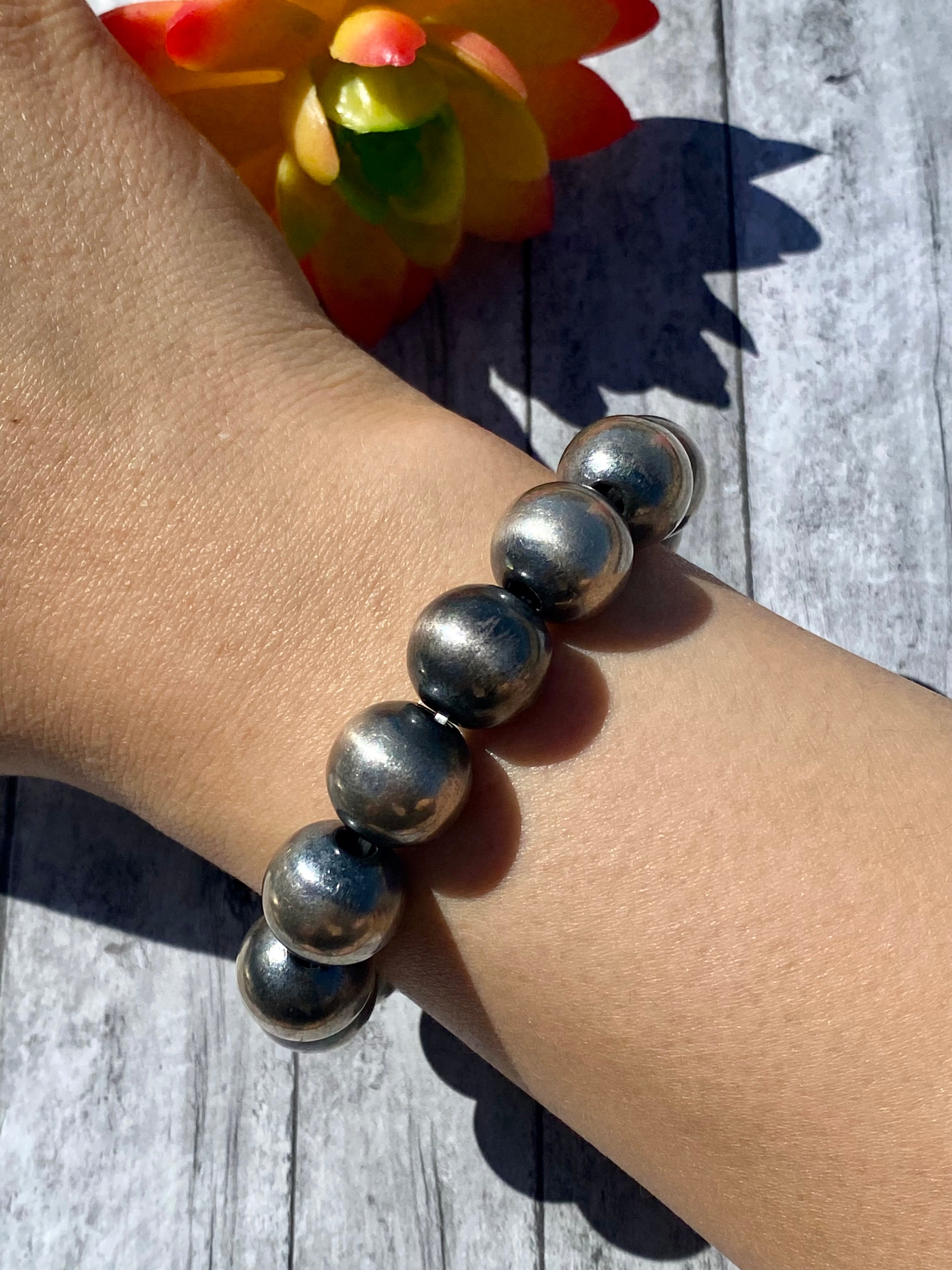 Mason Lee Sterling Silver 14 MM Pearl Adjustable Bracelet. Adjustable will fit all sizes.